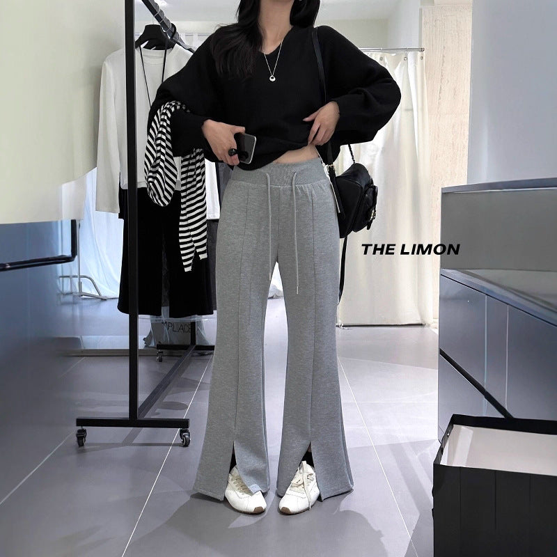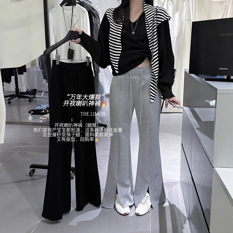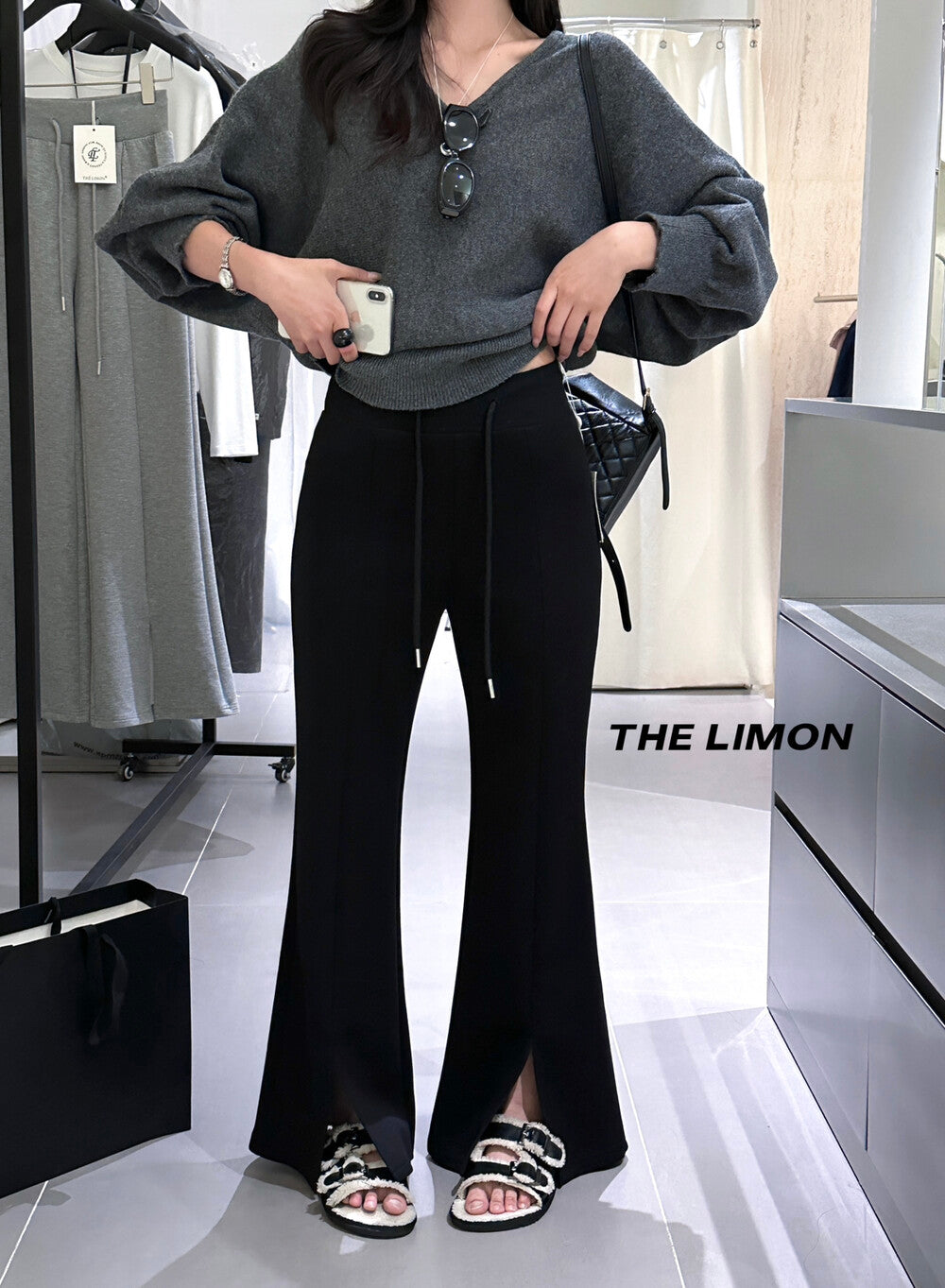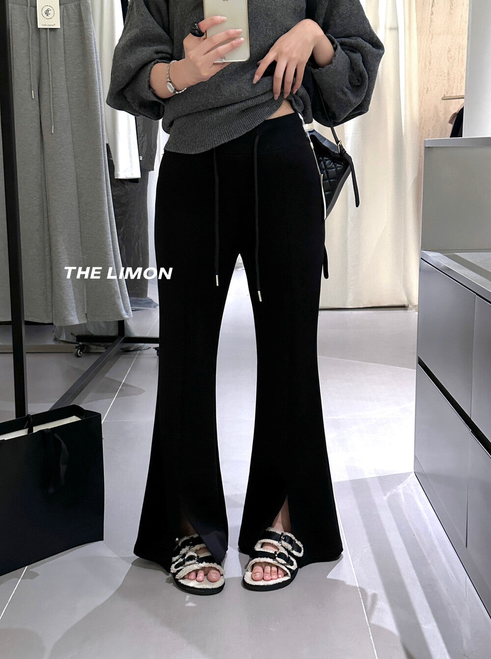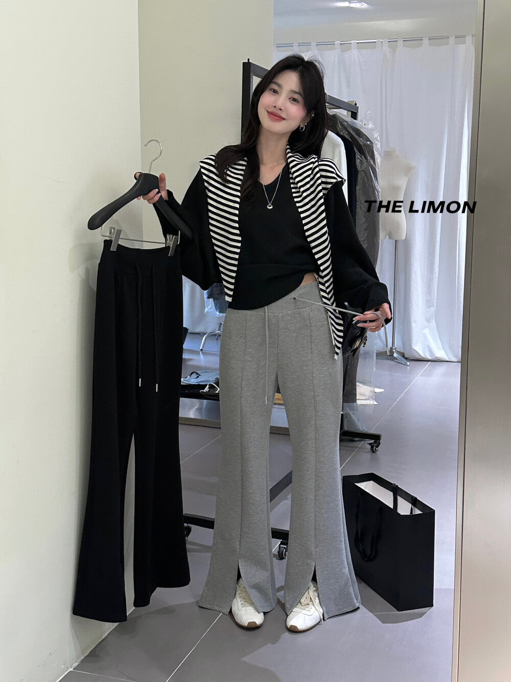 【L9237】實拍檸檬秋季休閒顯瘦高腰開叉垂感休閒褲250930