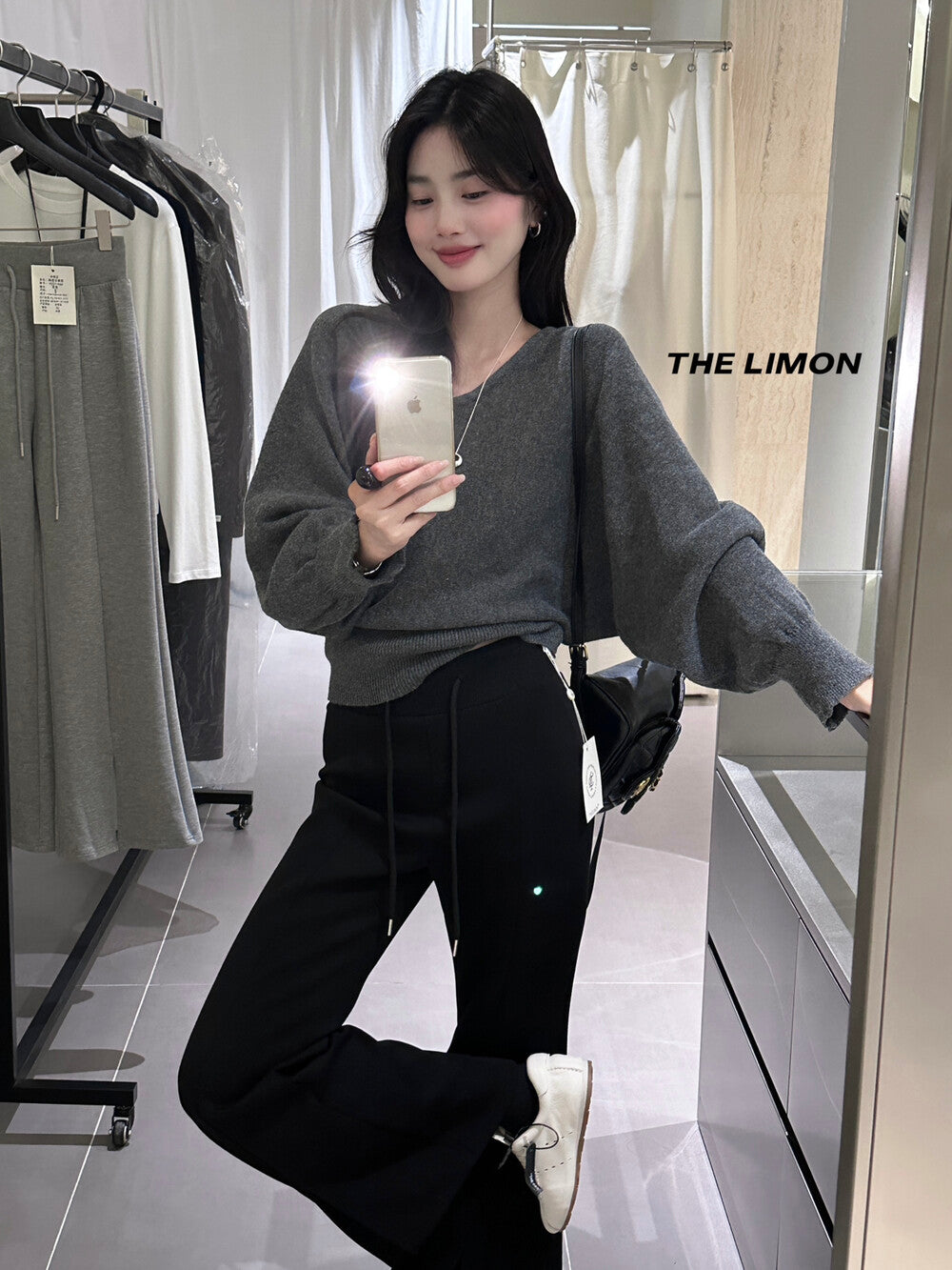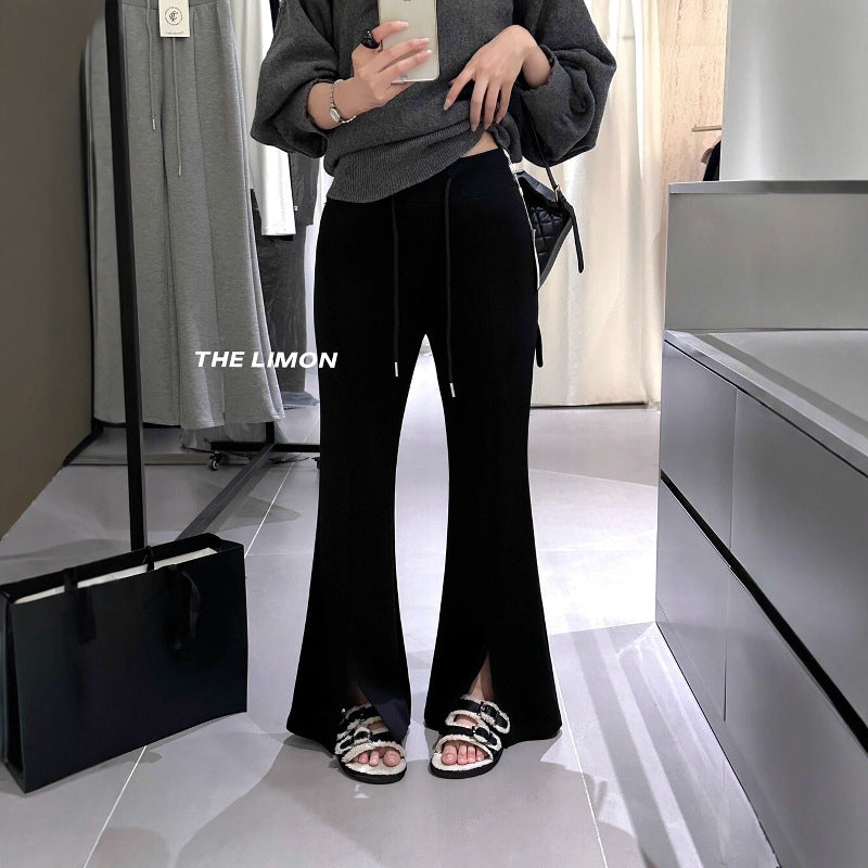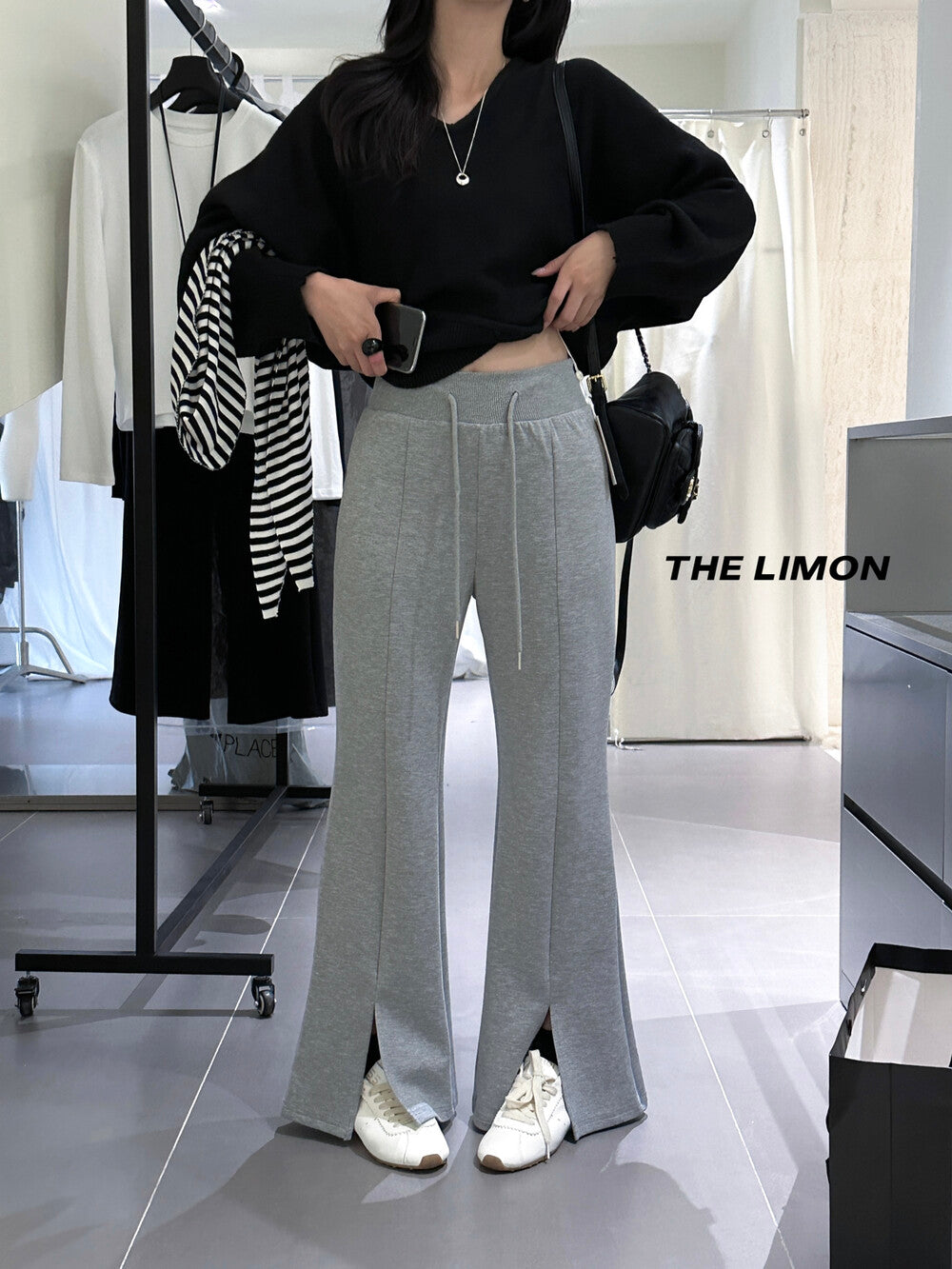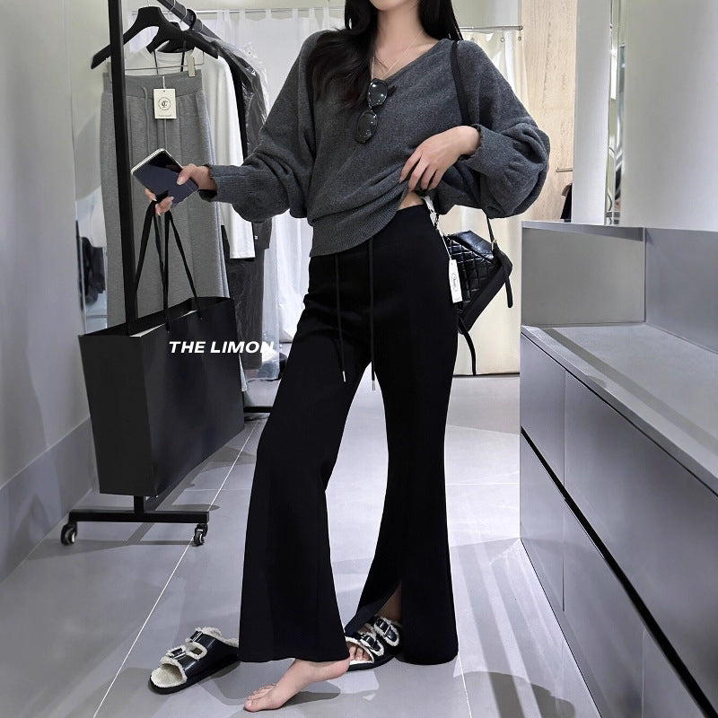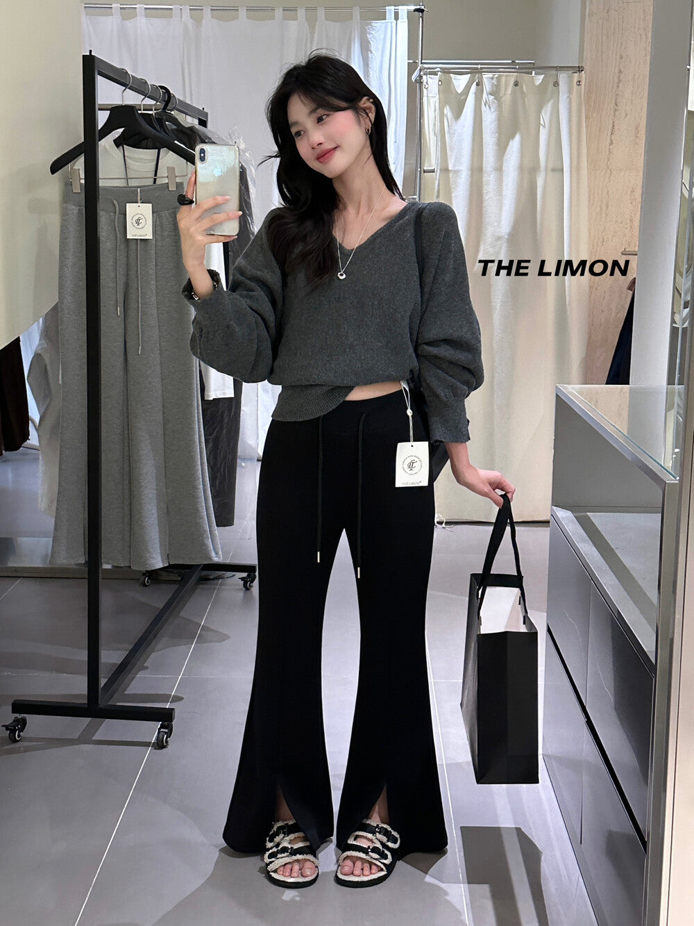 【L9237】實拍檸檬秋季休閒顯瘦高腰開叉垂感休閒褲250930