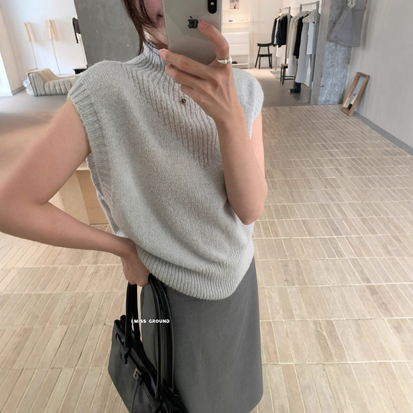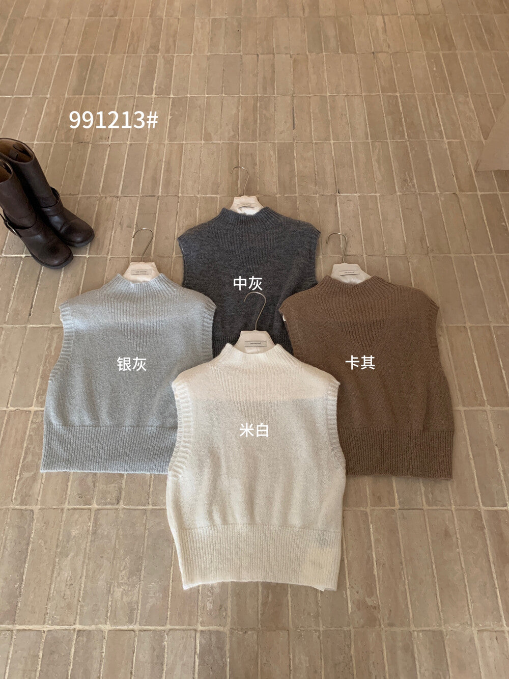 【L991213】實拍秋季法式慵懶簡約半高領短袖針織衫250923