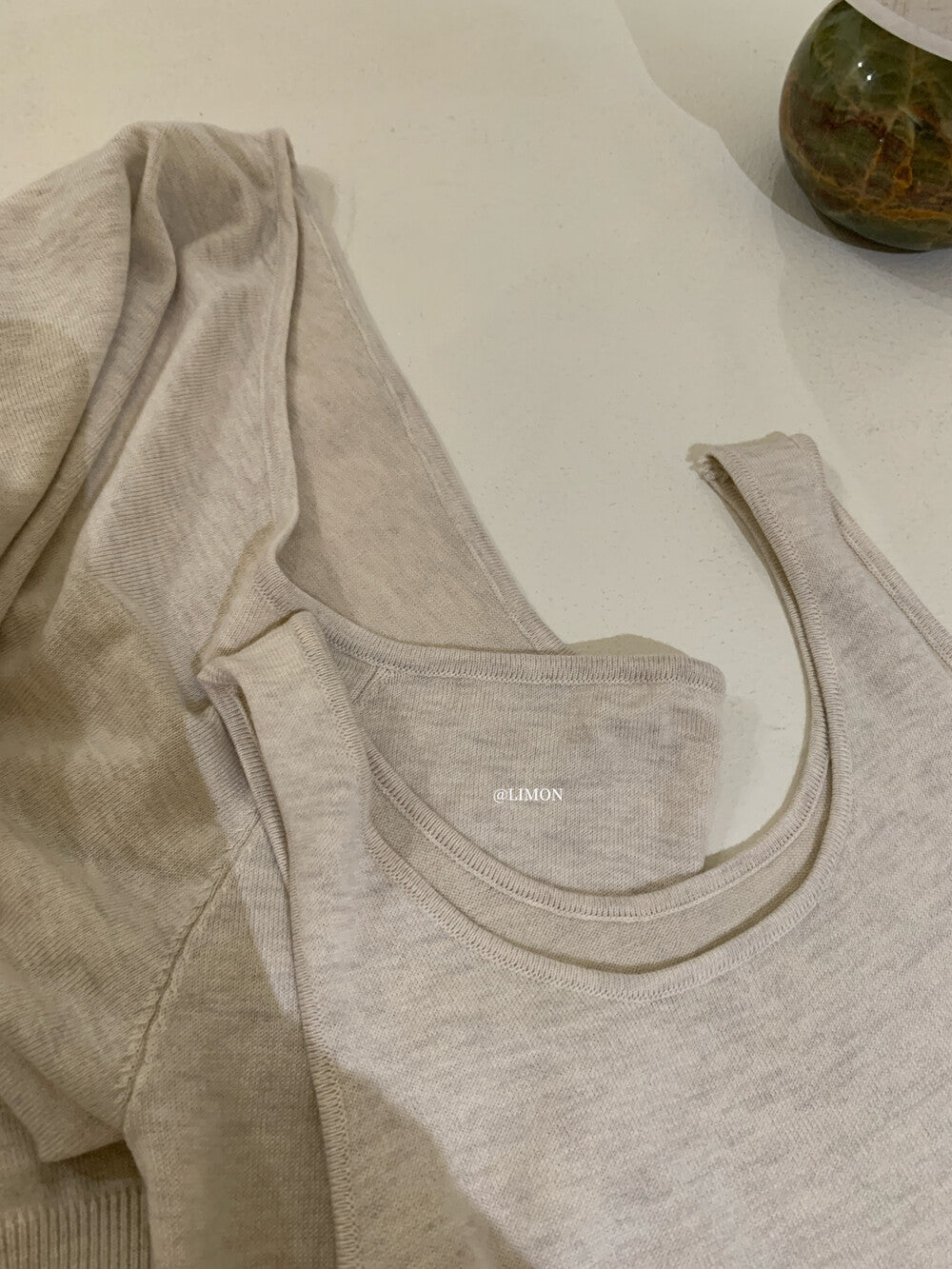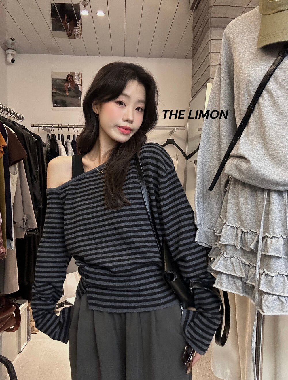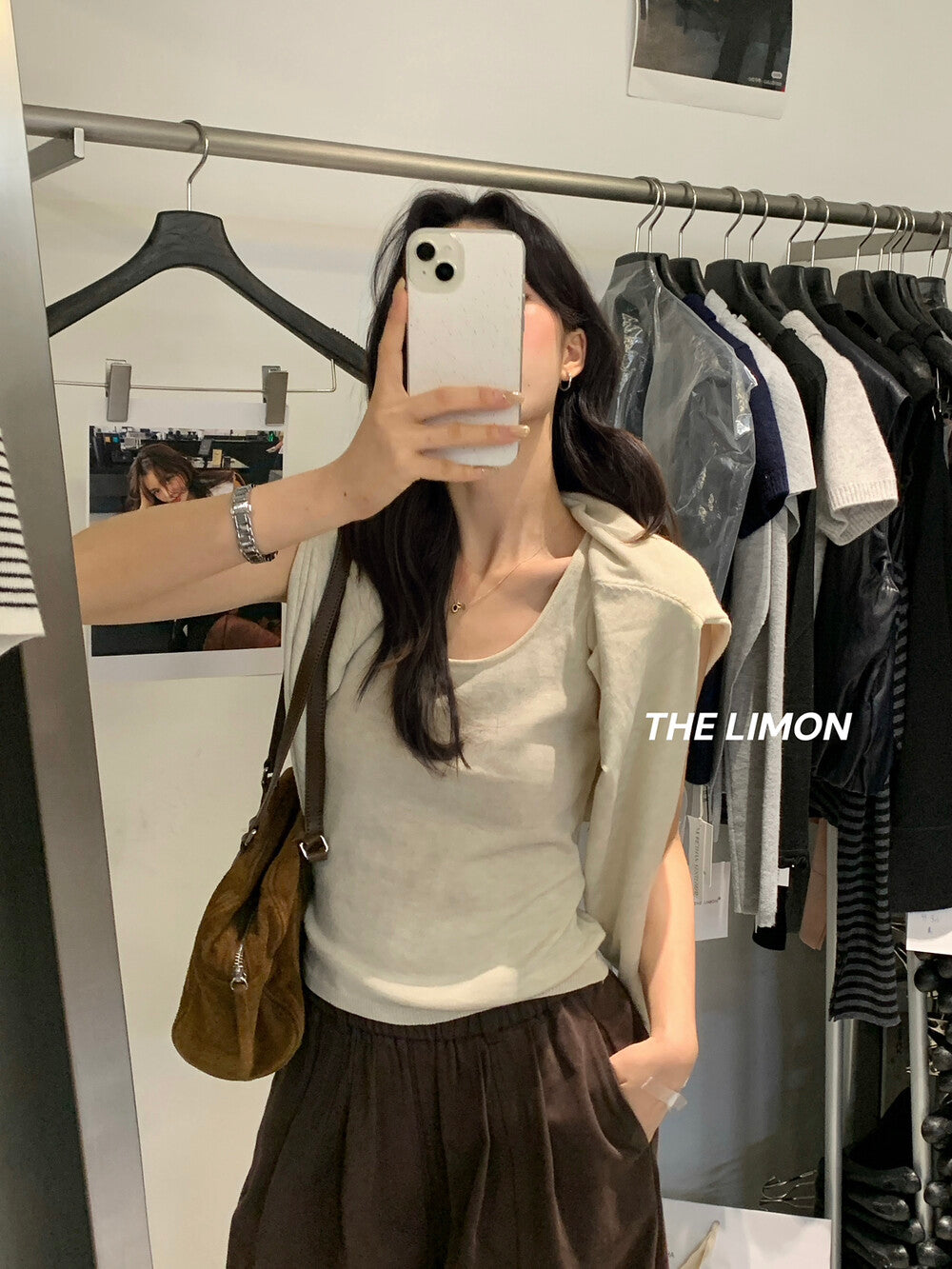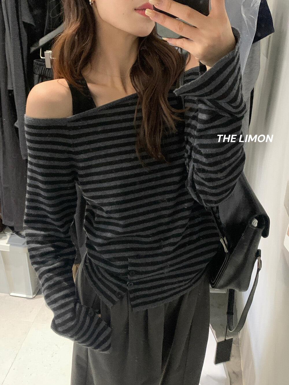 【L99903】實拍檸檬家下擺紐扣斜肩長袖針織衫+內搭背心 2件套250901