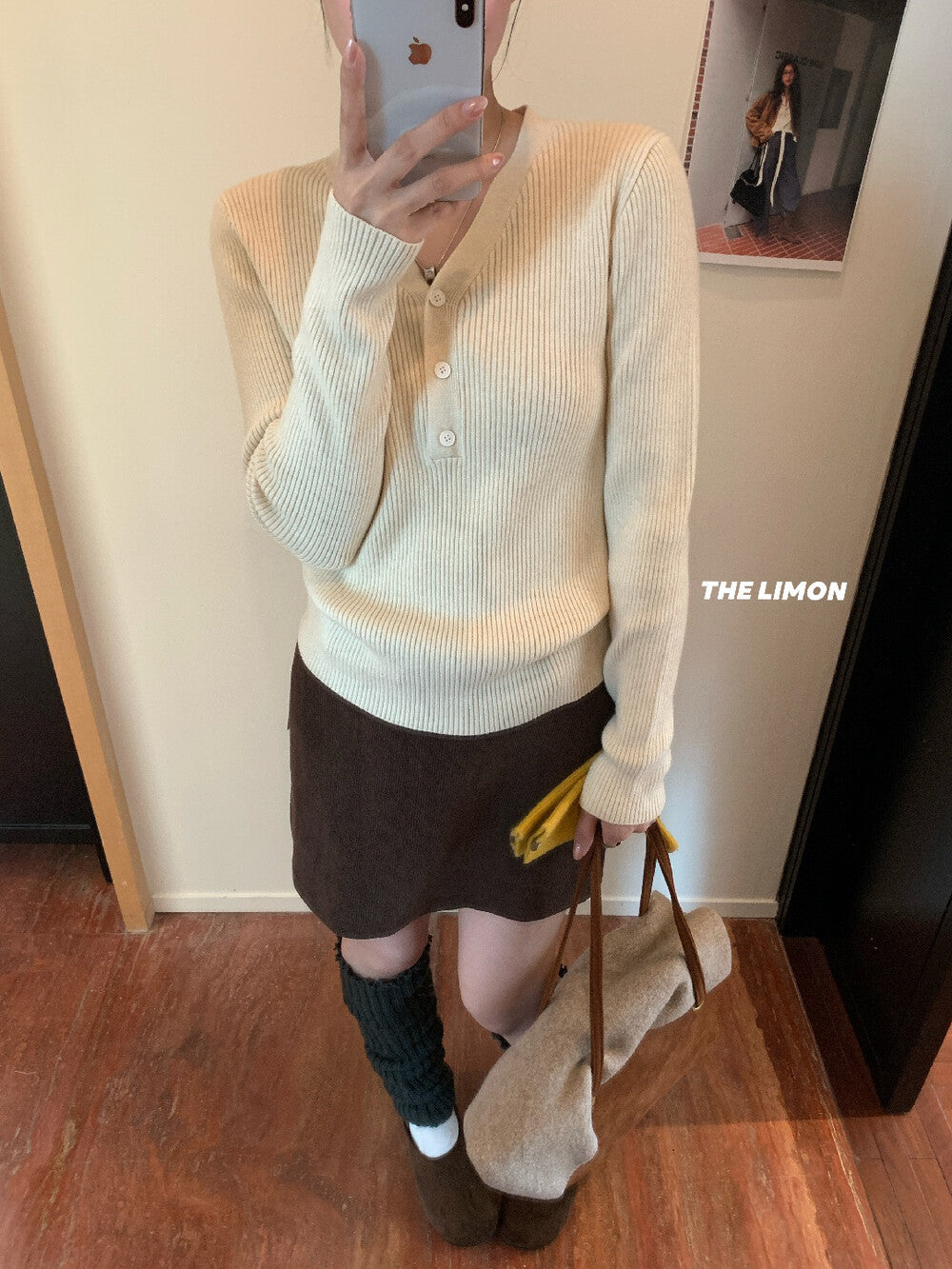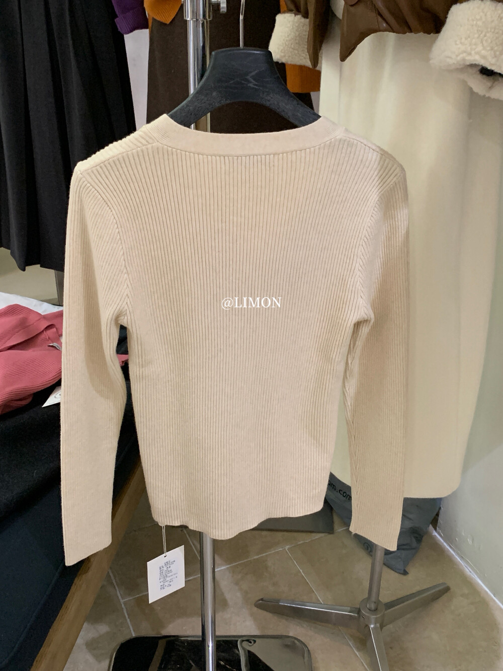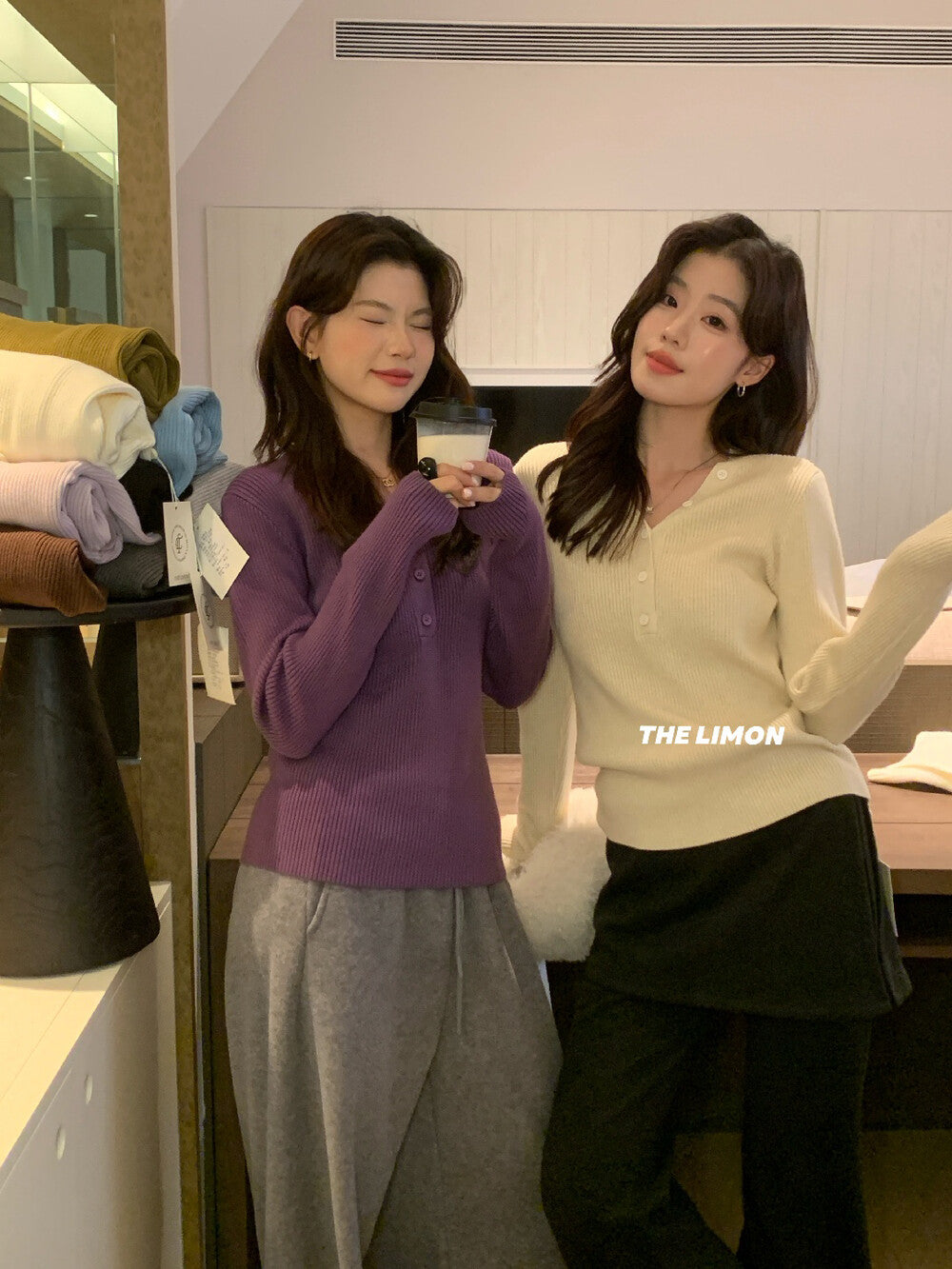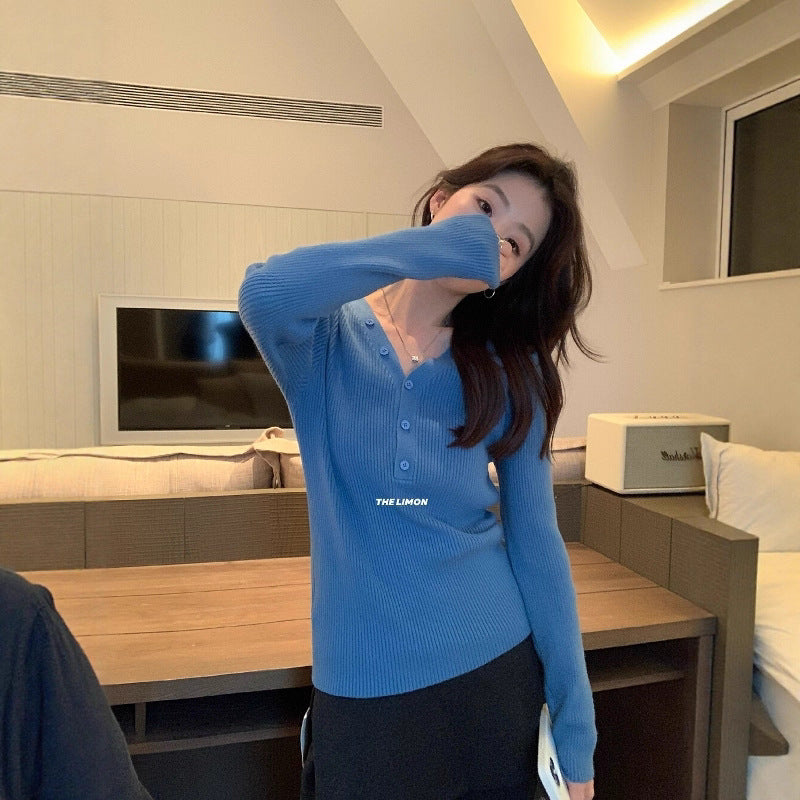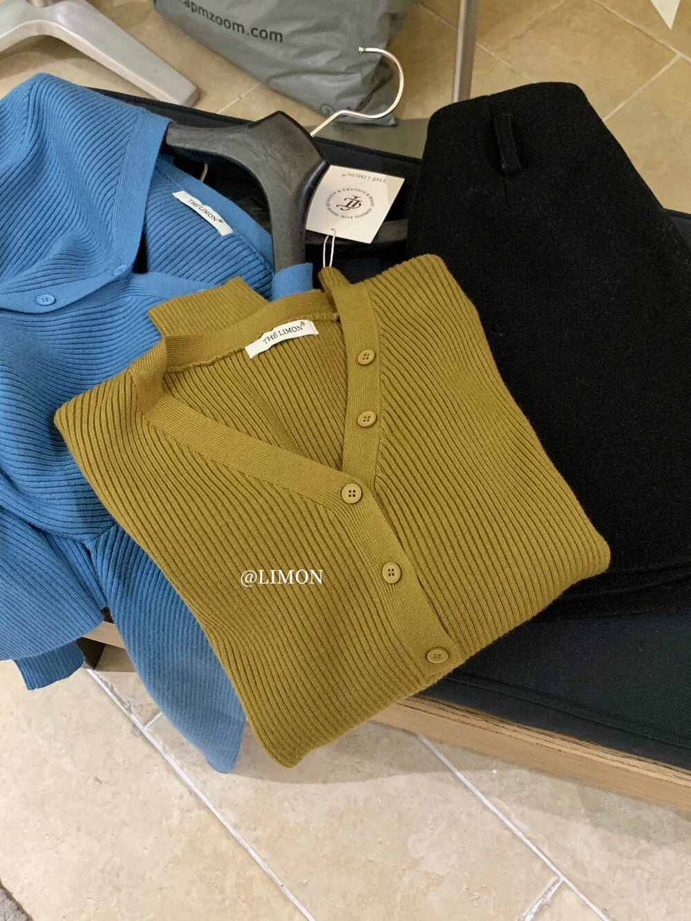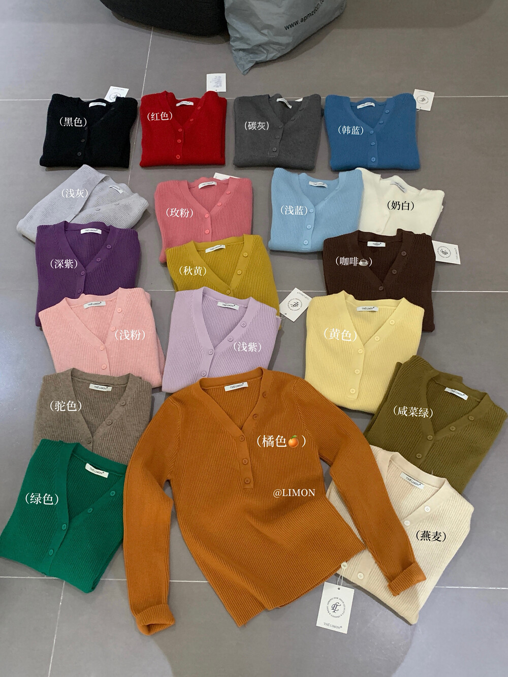 【L99909】檸檬秋冬超修身V領纽扣長袖針織衫251117