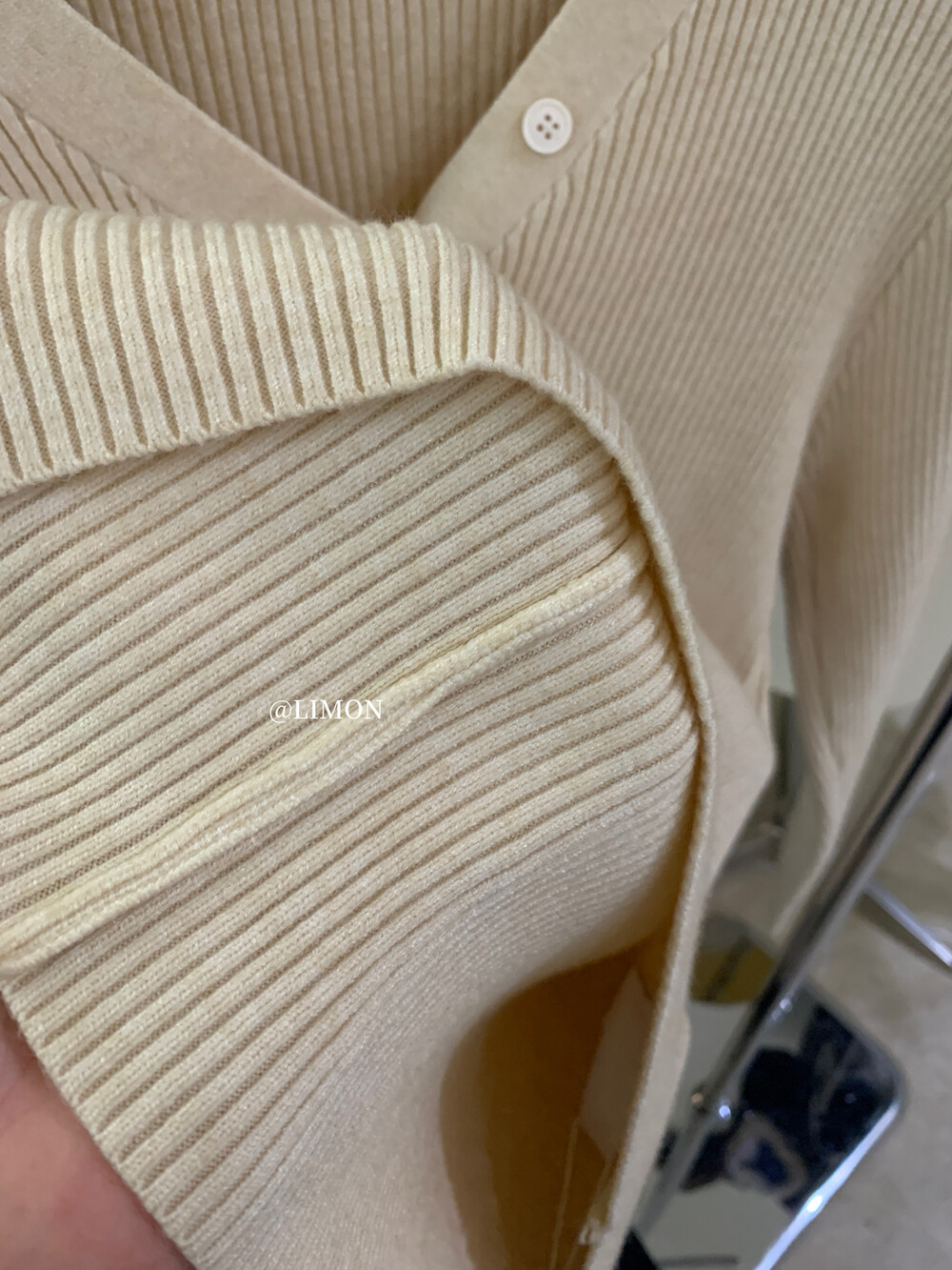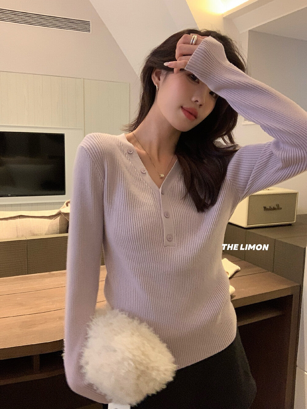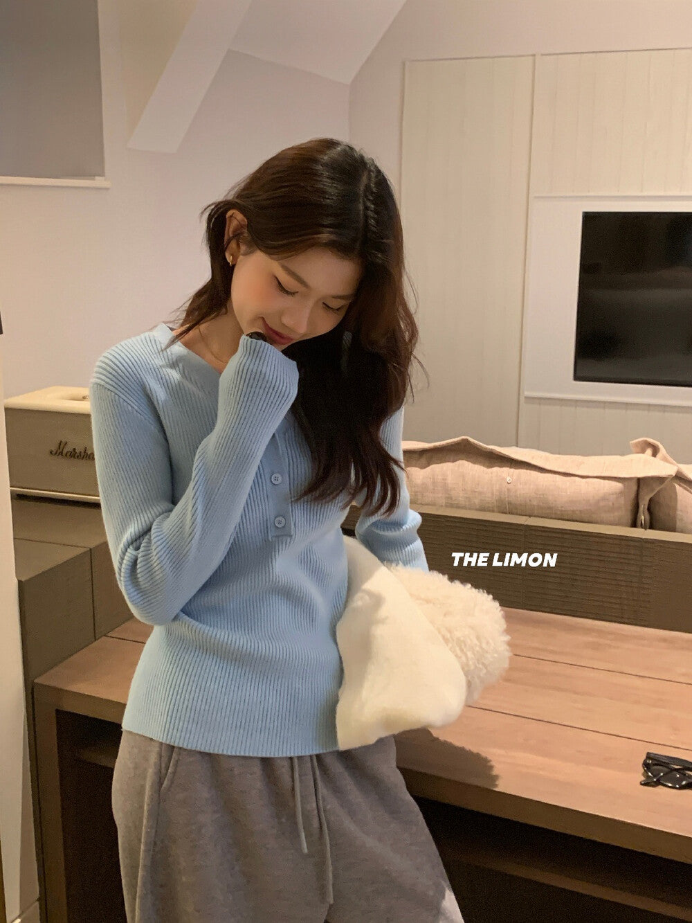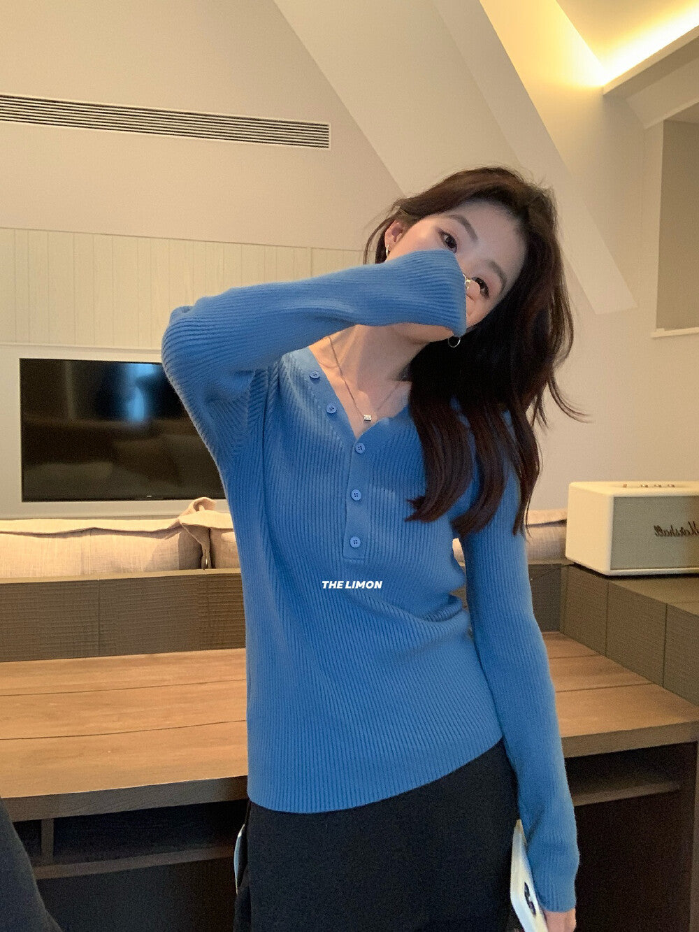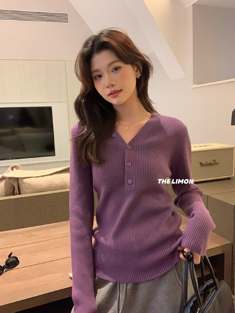 【L99909】檸檬秋冬超修身V領纽扣長袖針織衫251117