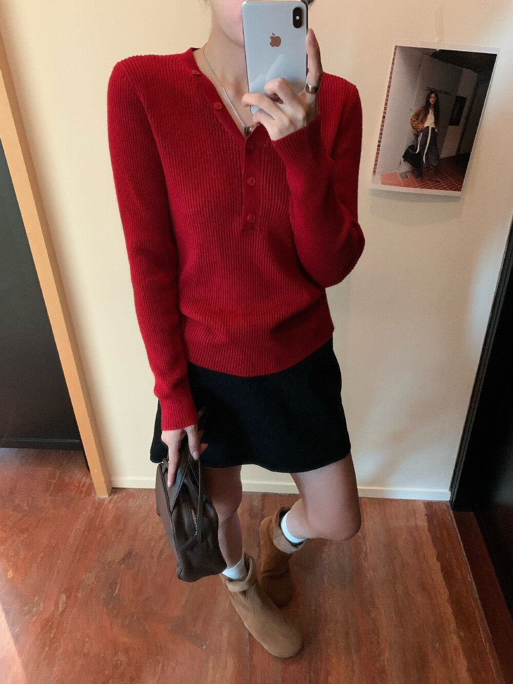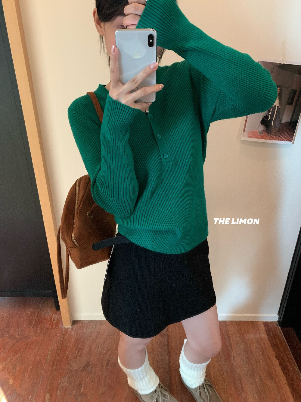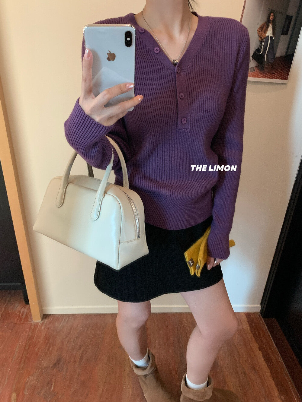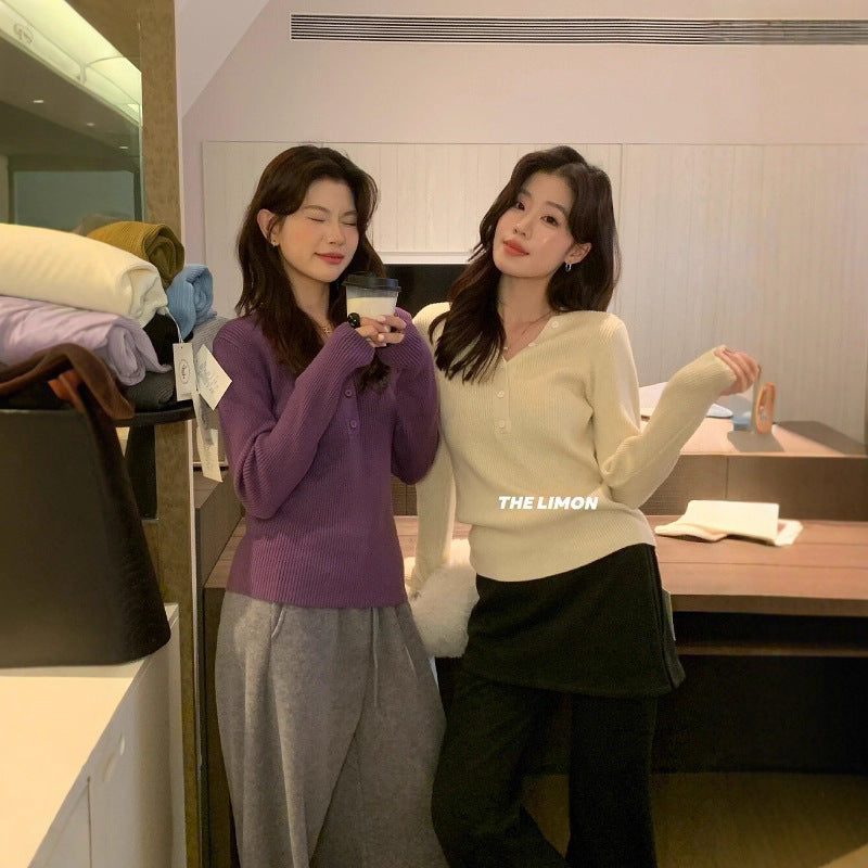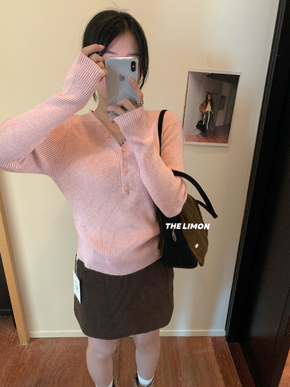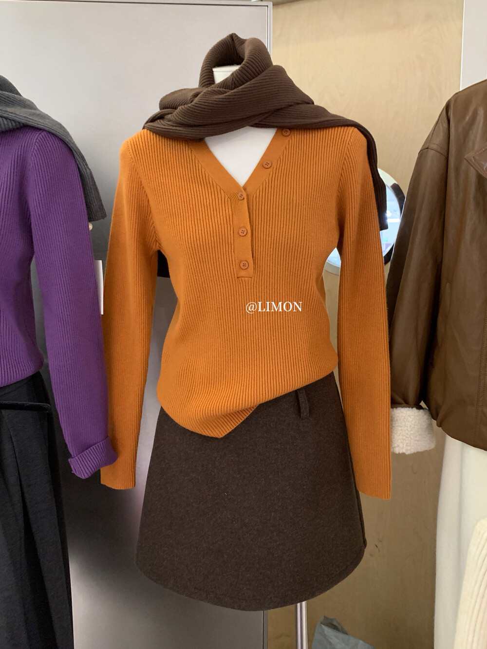 【L99909】檸檬秋冬超修身V領纽扣長袖針織衫251117