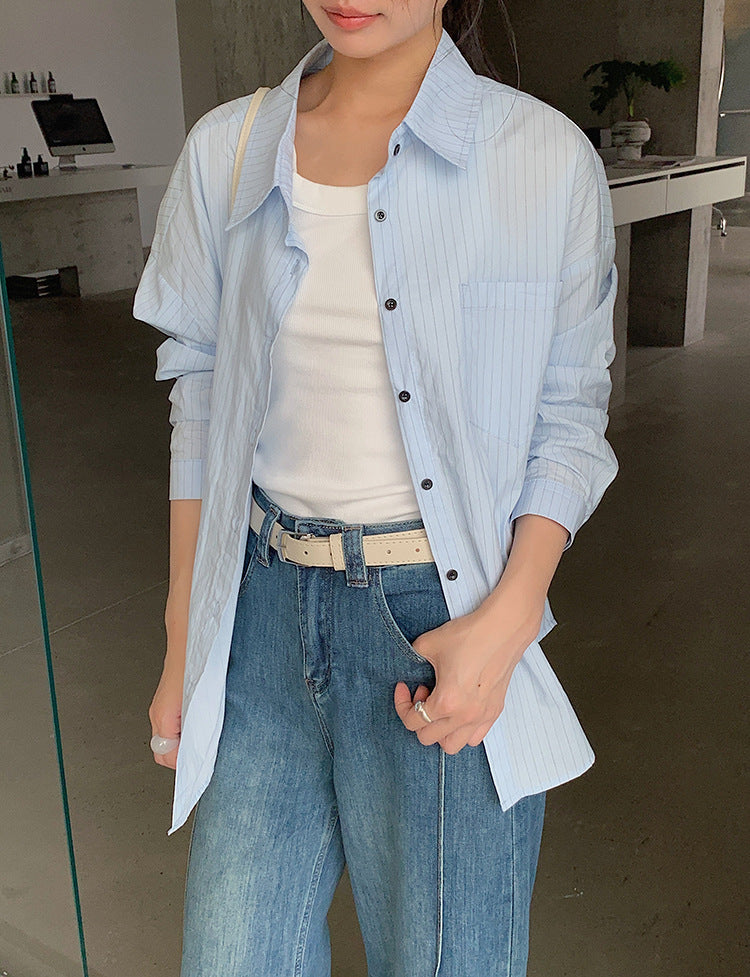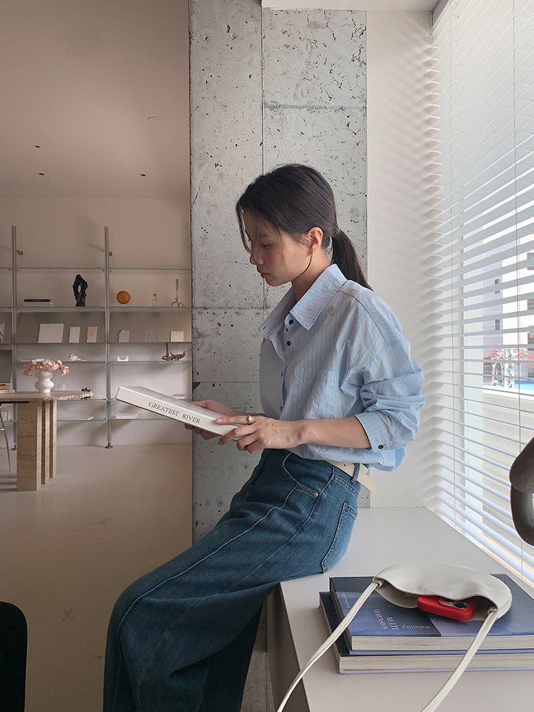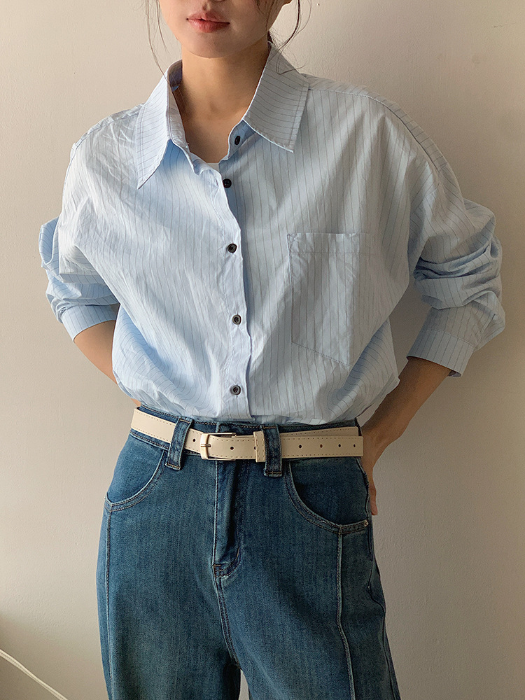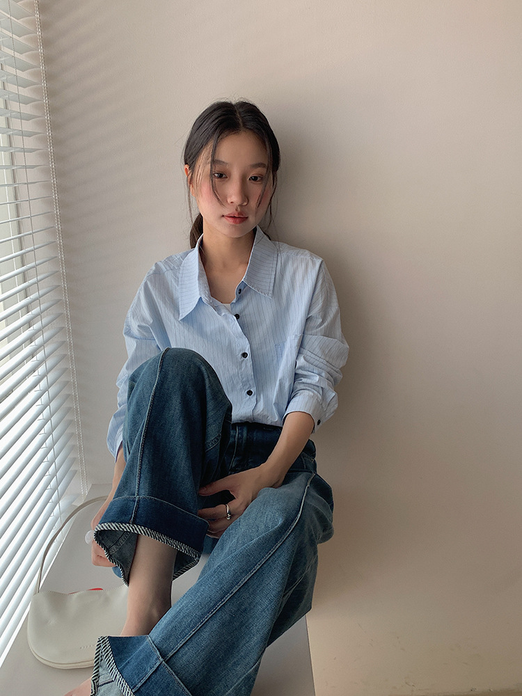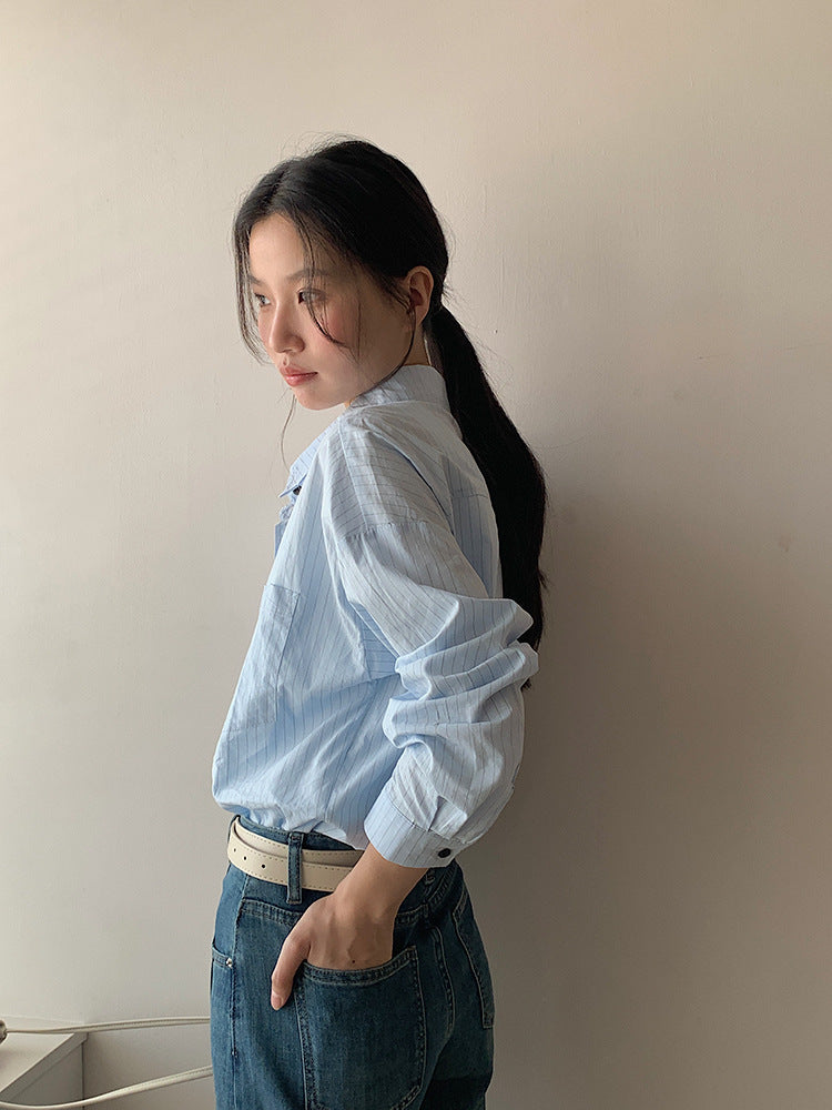 【LD003】實拍中性棉100氣質寬鬆條紋襯衫251103