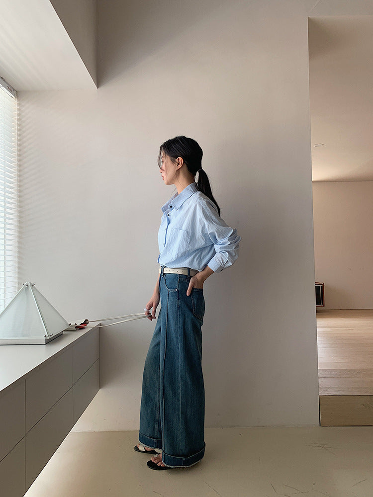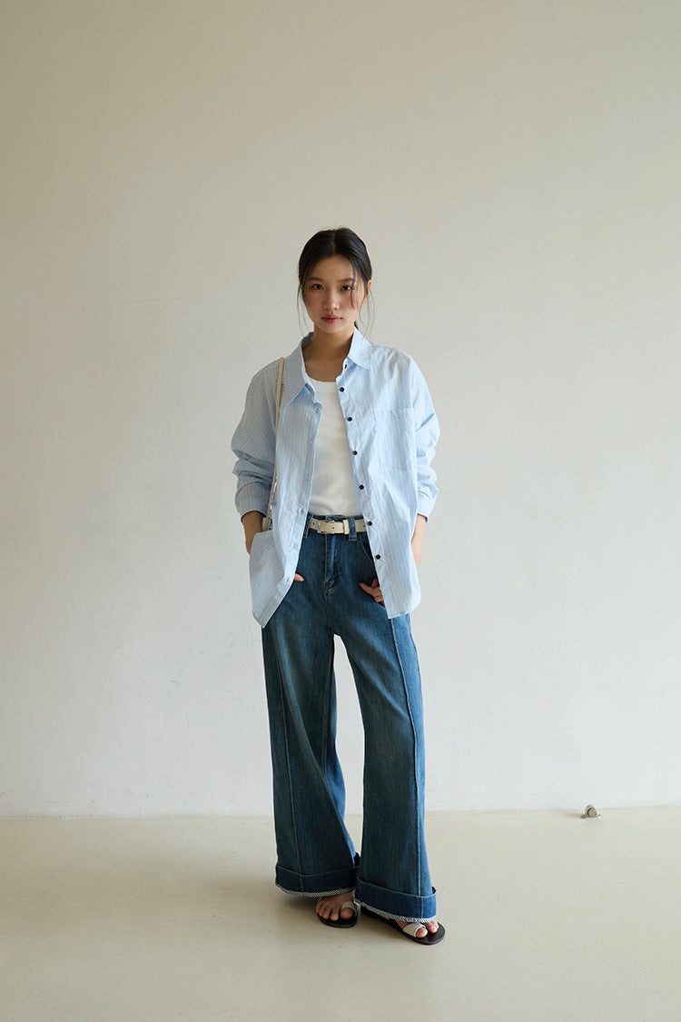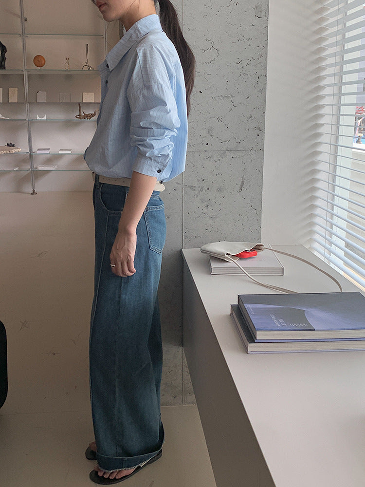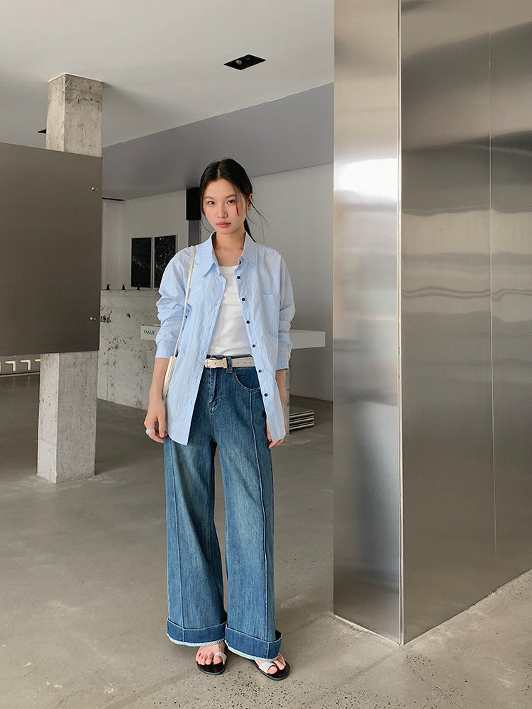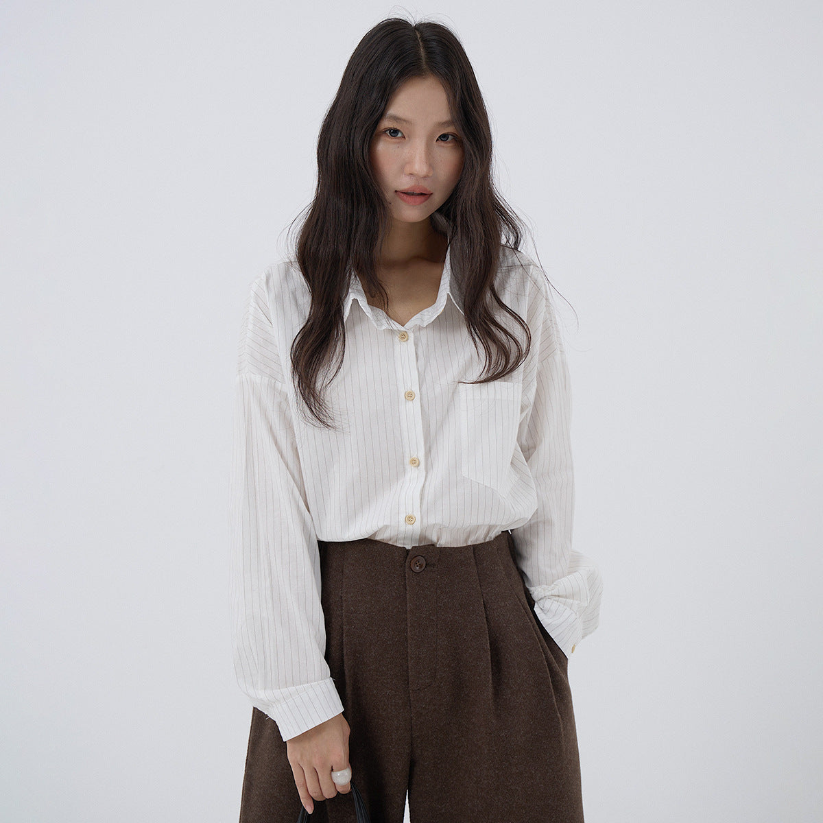 【LD003】實拍中性棉100氣質寬鬆條紋襯衫251103