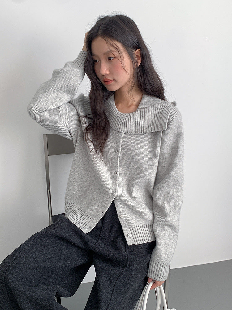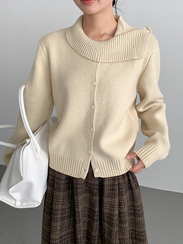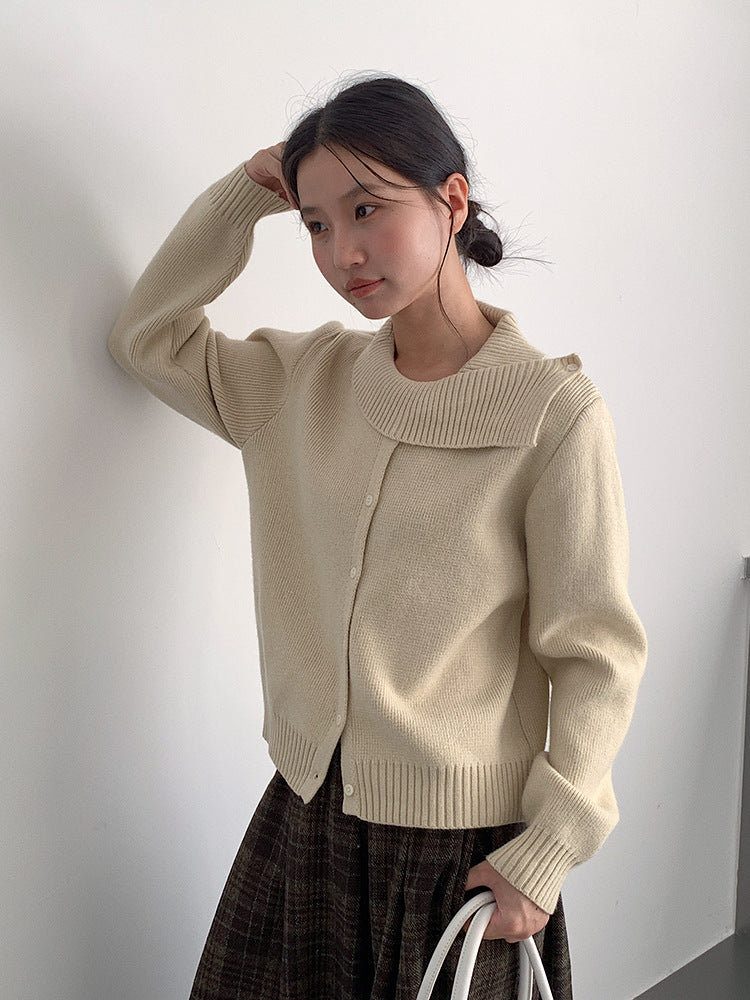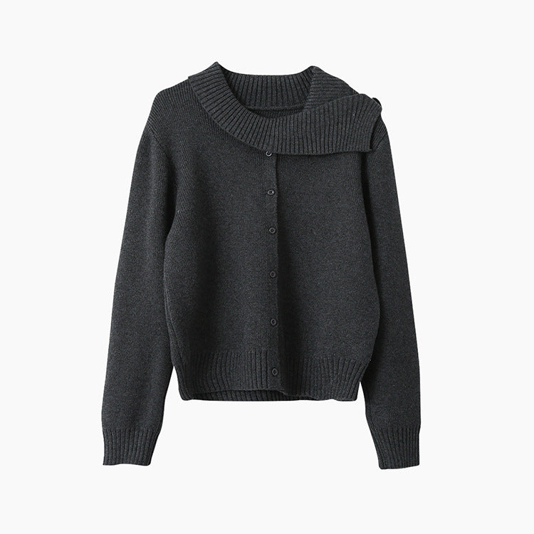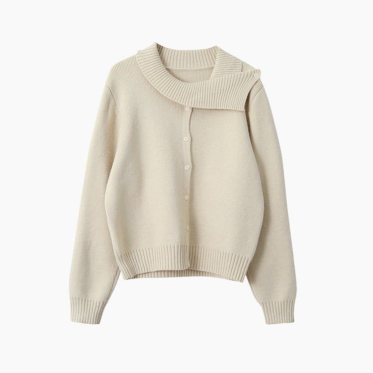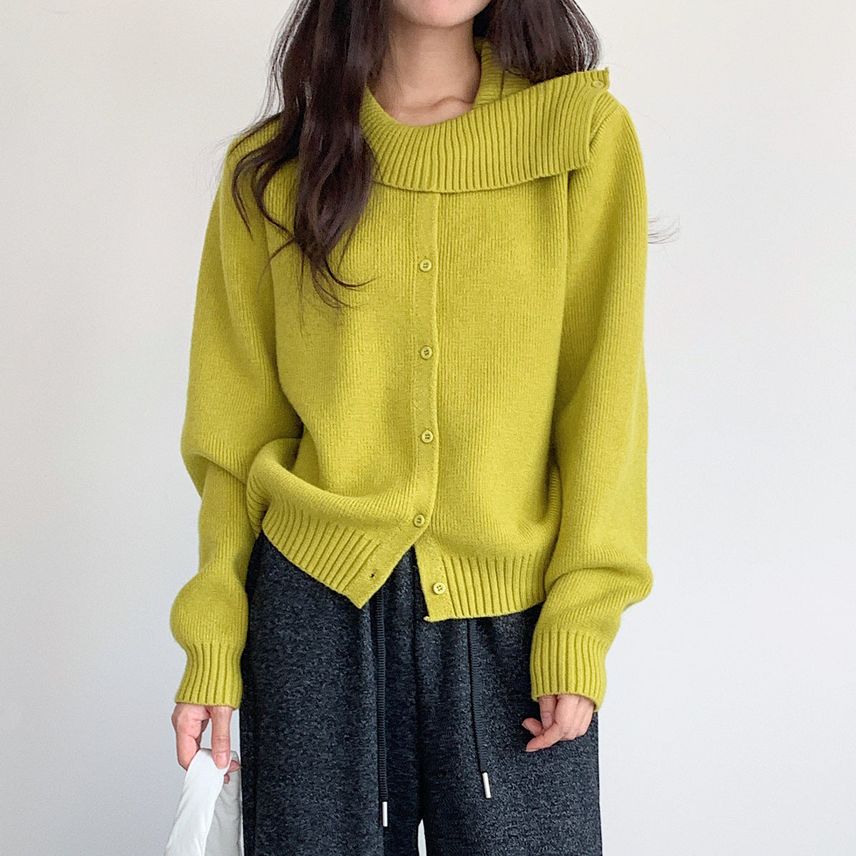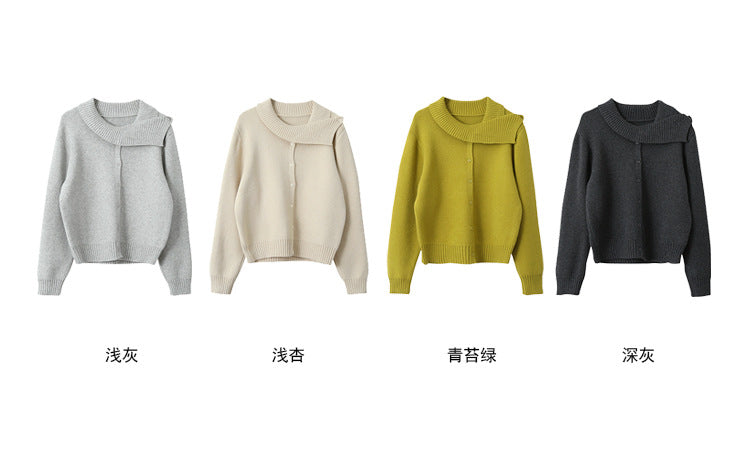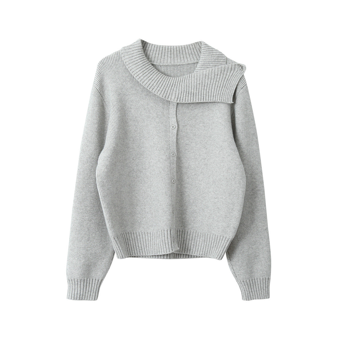 【LD11002】實拍秋冬法式設計感斜領針織毛衣外套251110