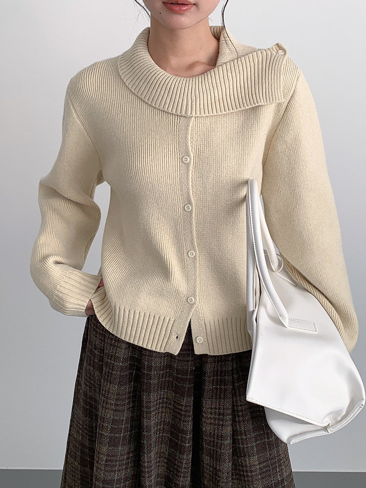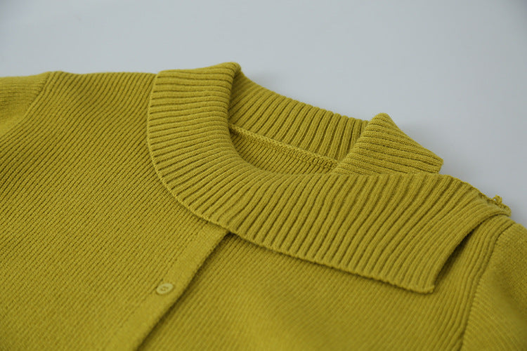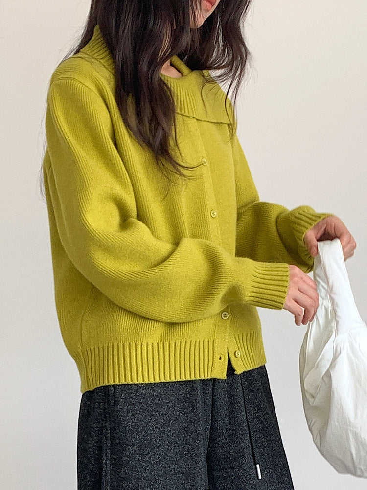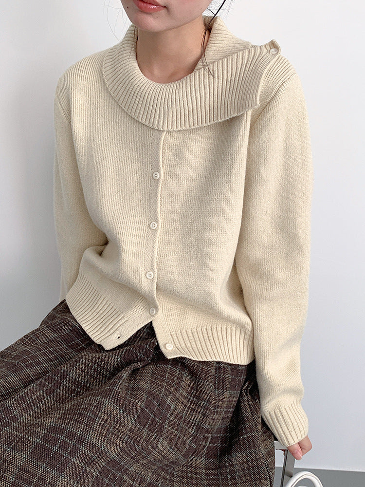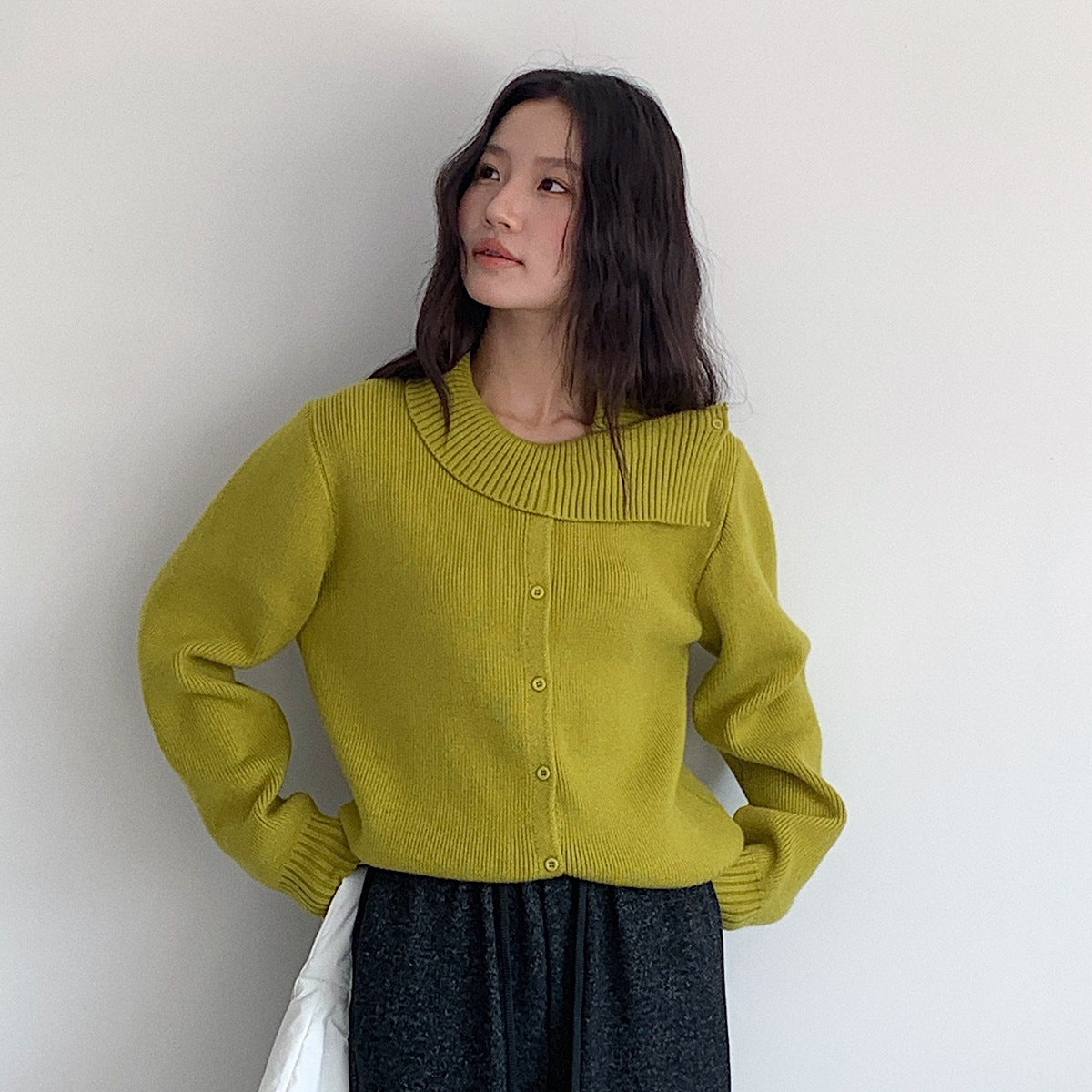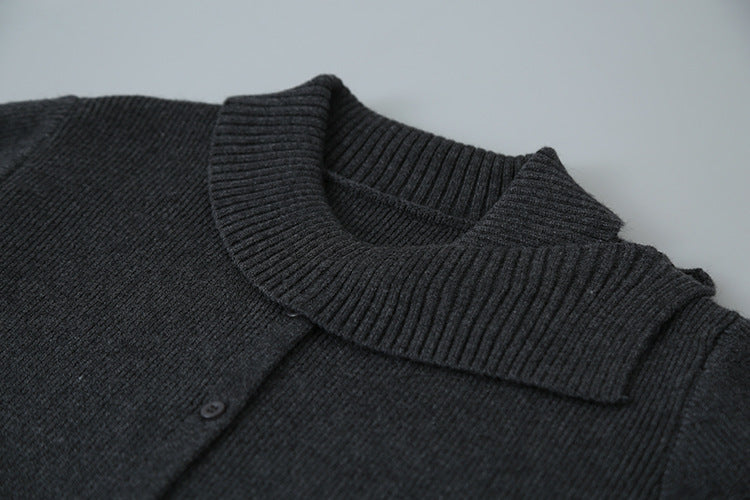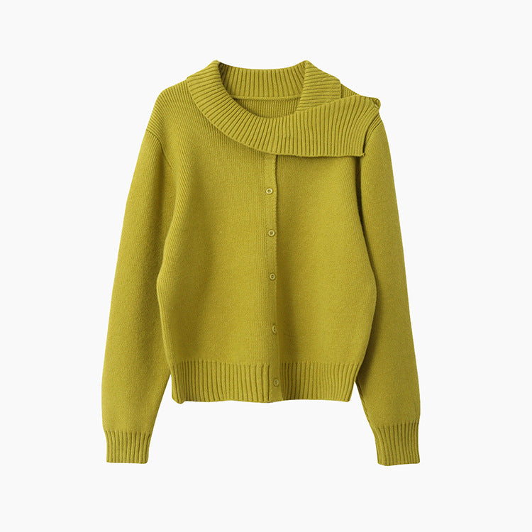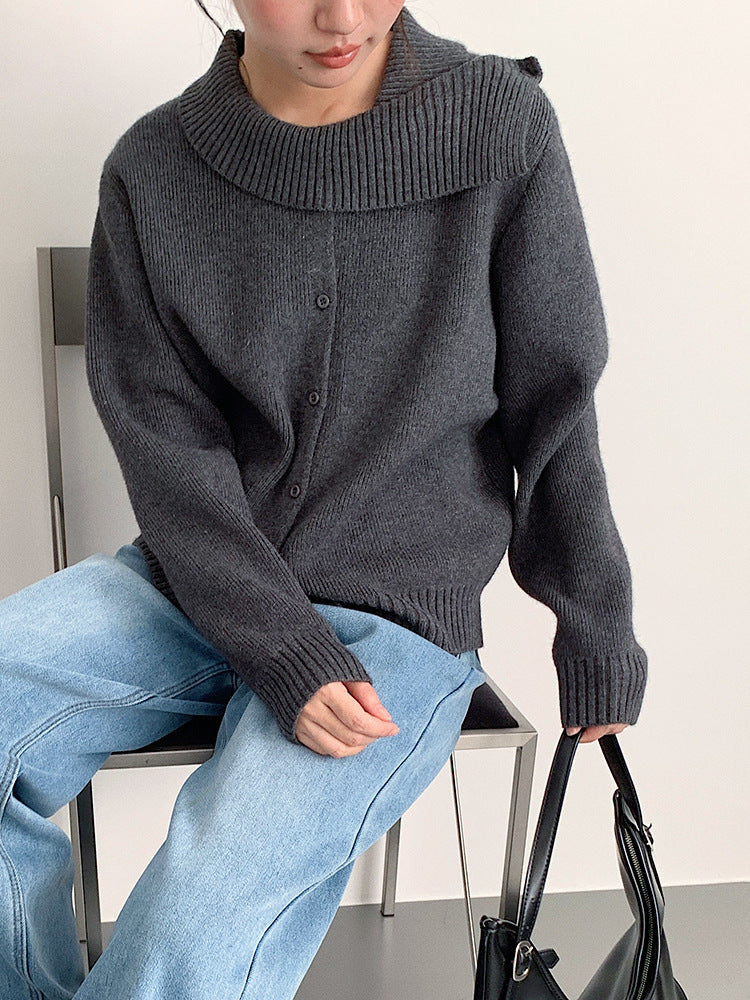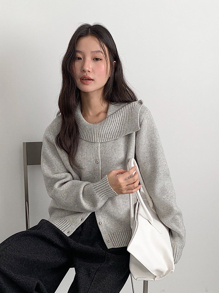 【LD11002】實拍秋冬法式設計感斜領針織毛衣外套251110