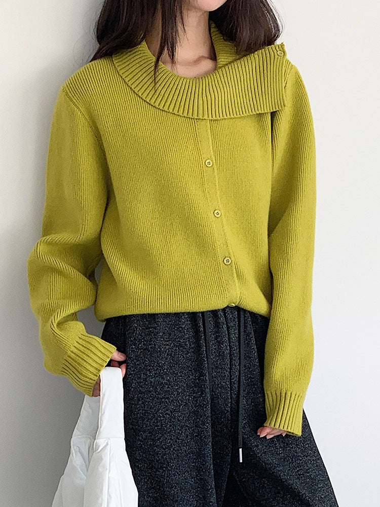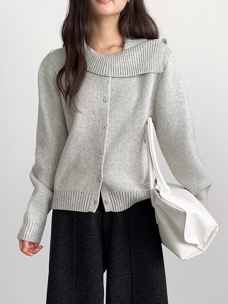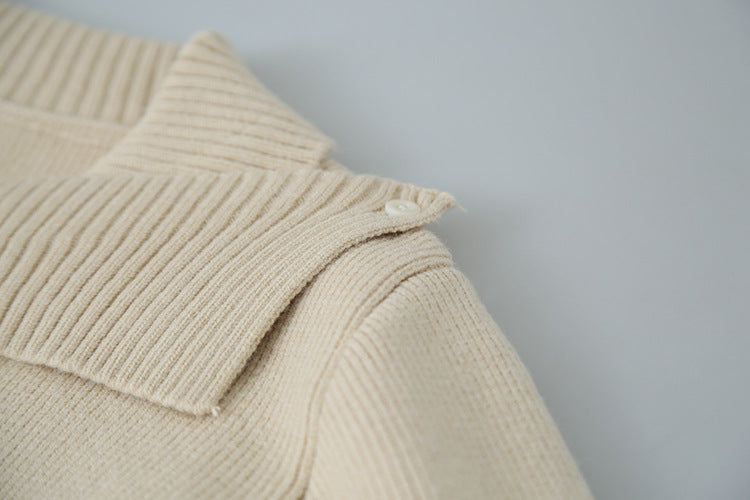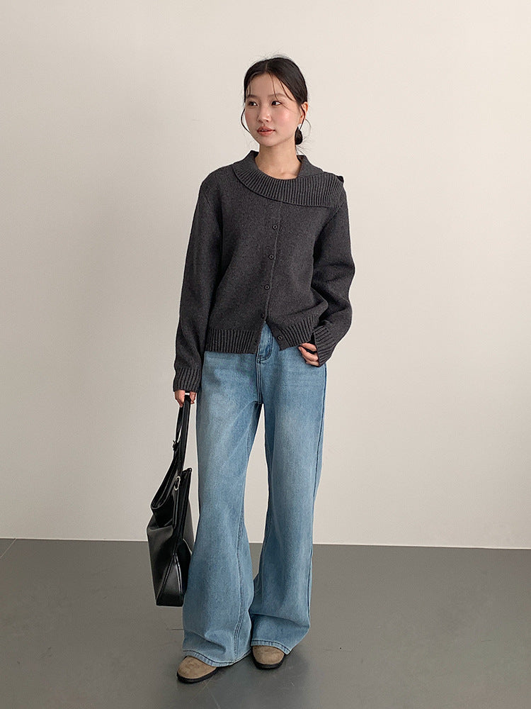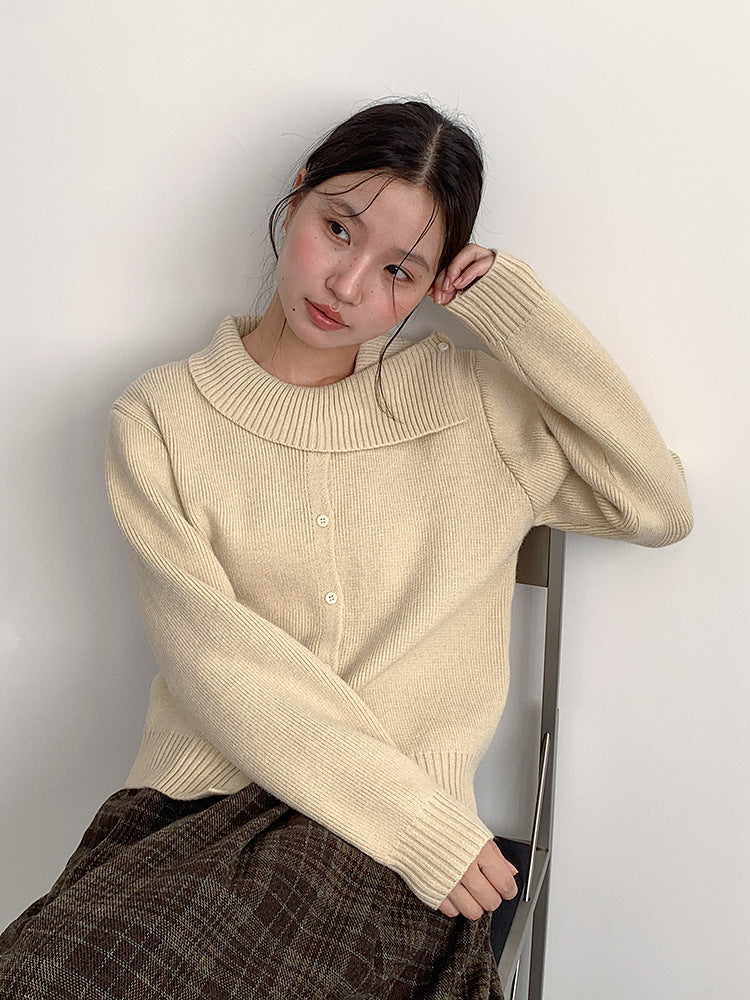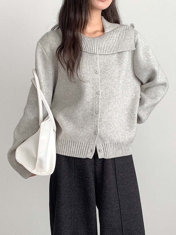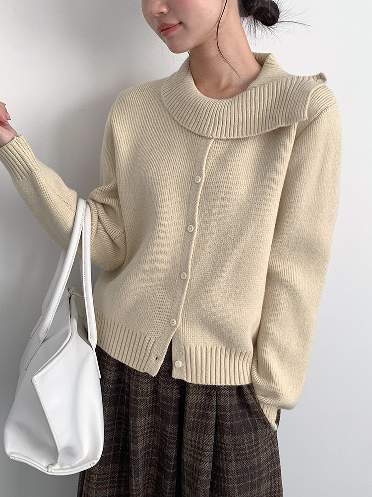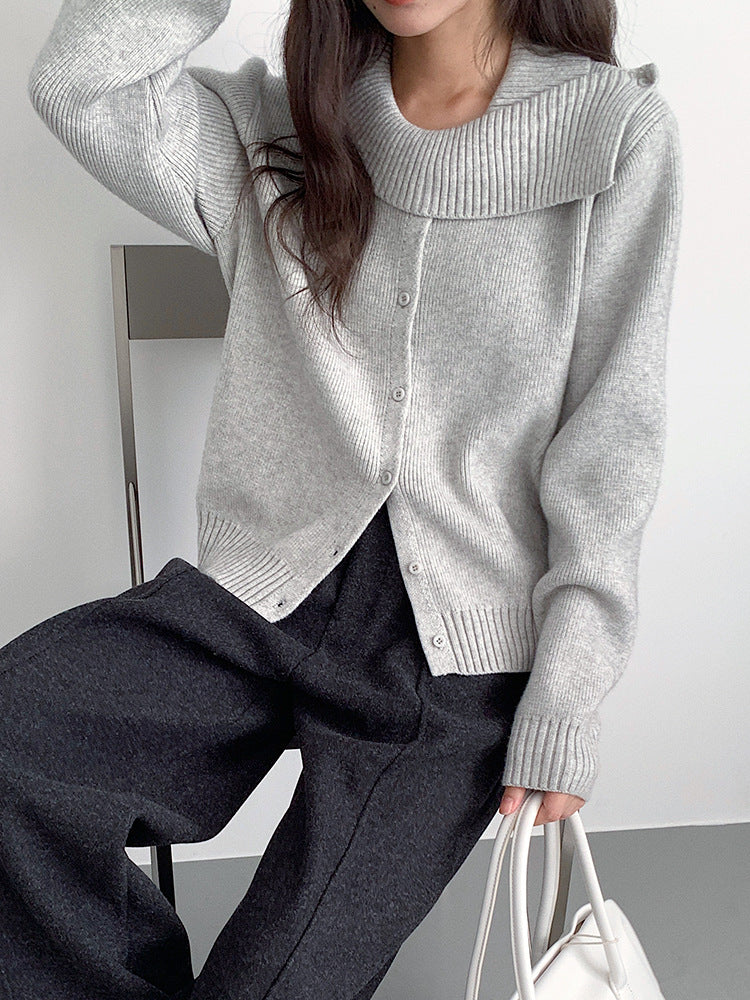 【LD11002】實拍秋冬法式設計感斜領針織毛衣外套251110