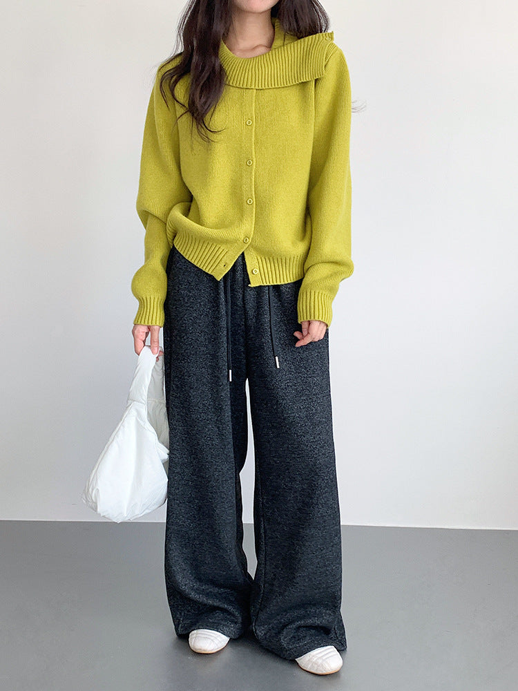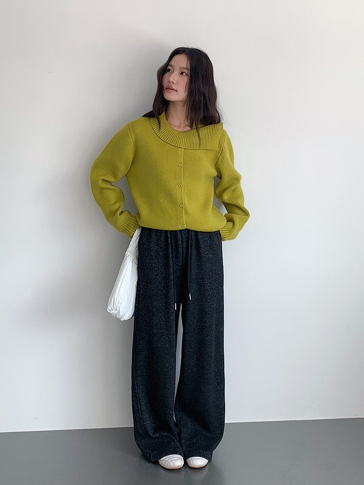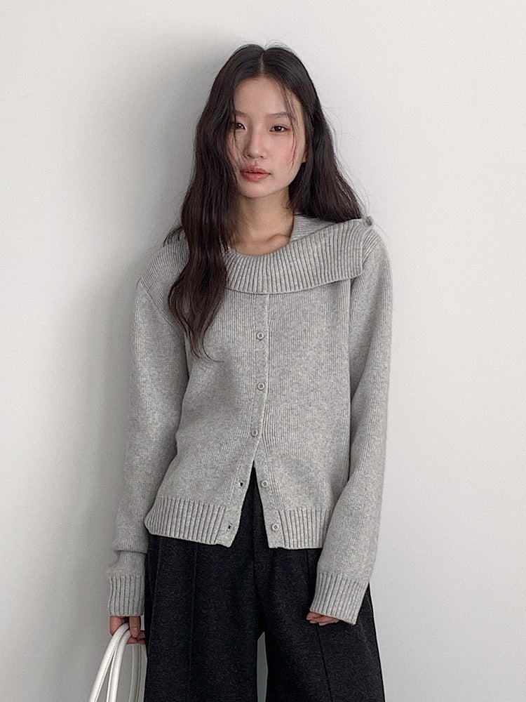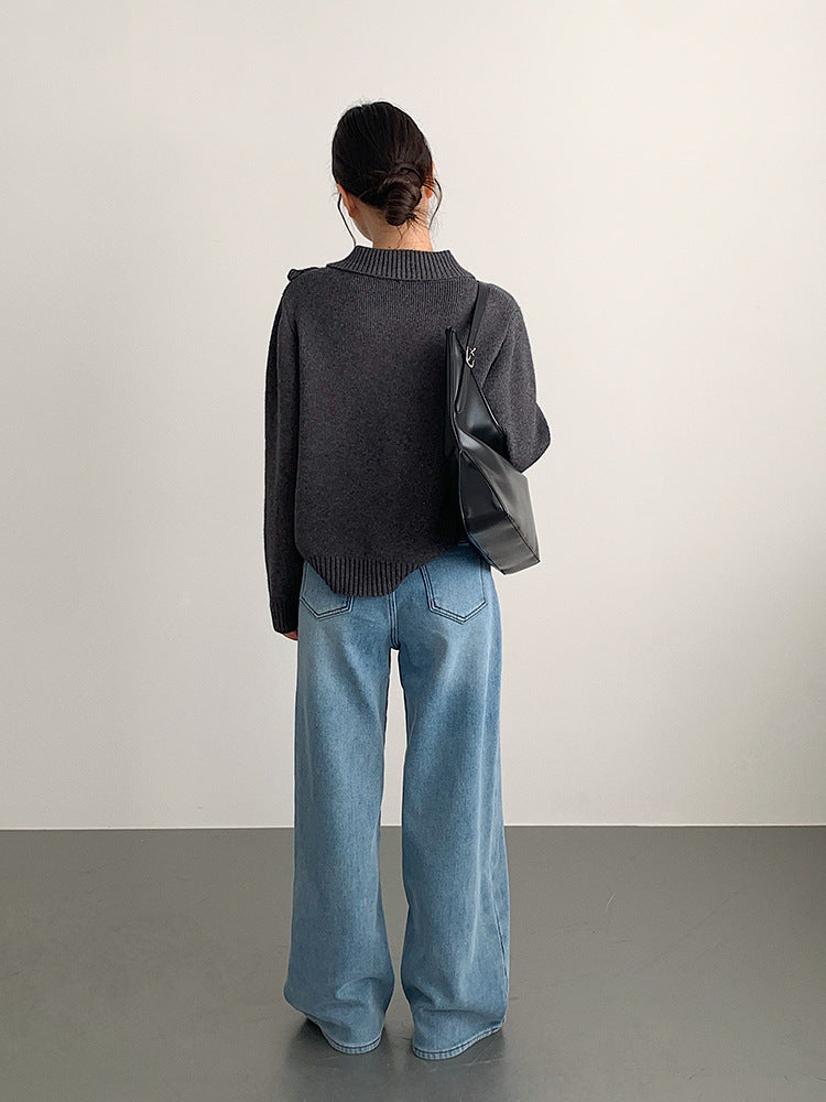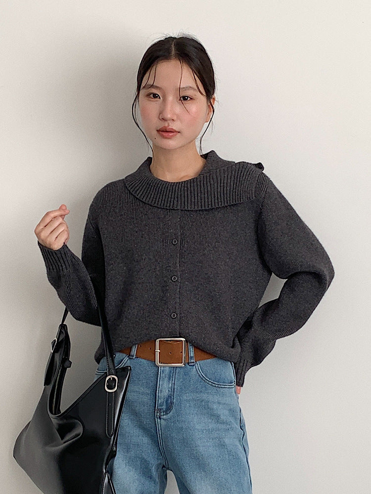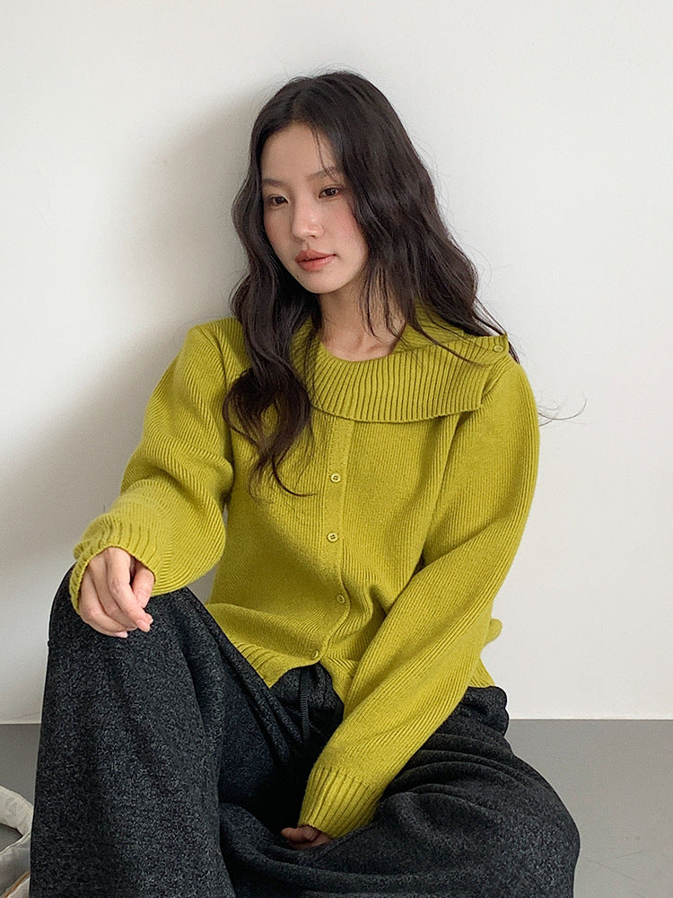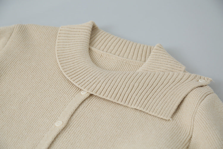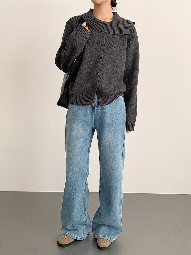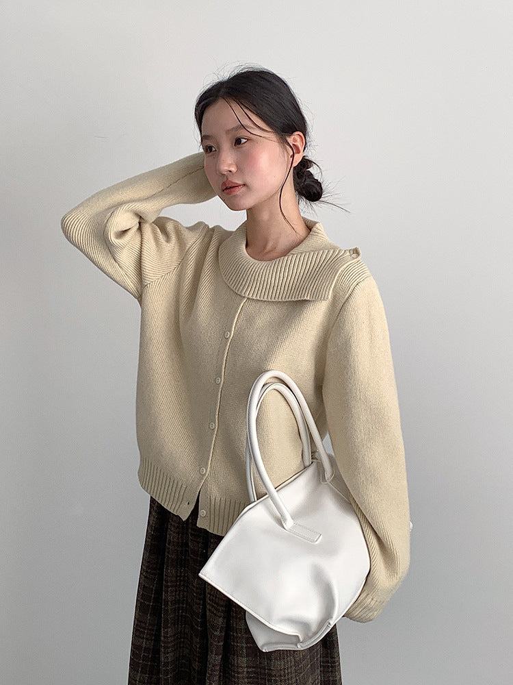 【LD11002】實拍秋冬法式設計感斜領針織毛衣外套251110