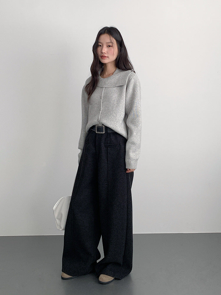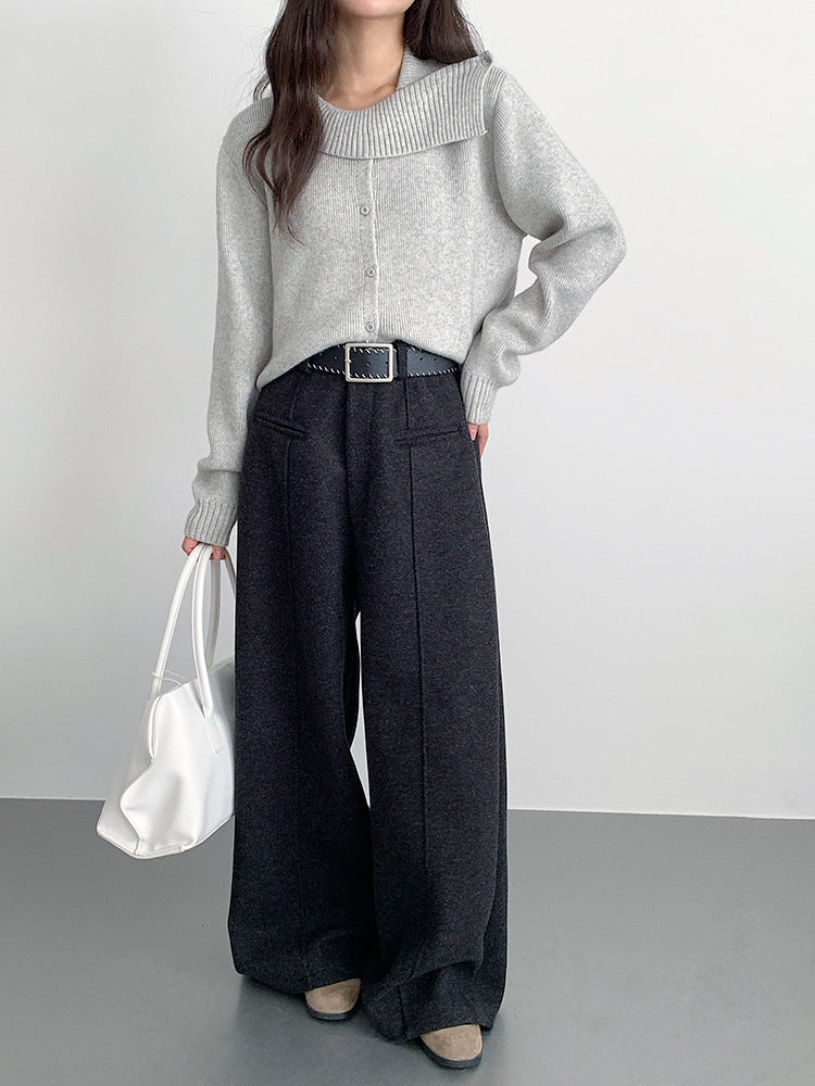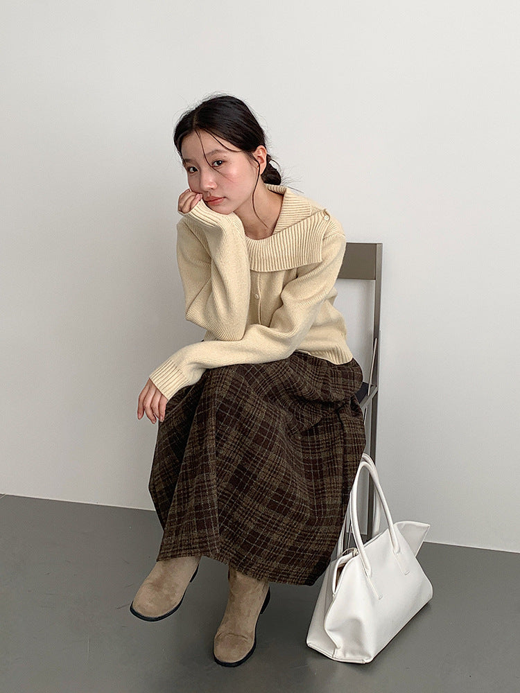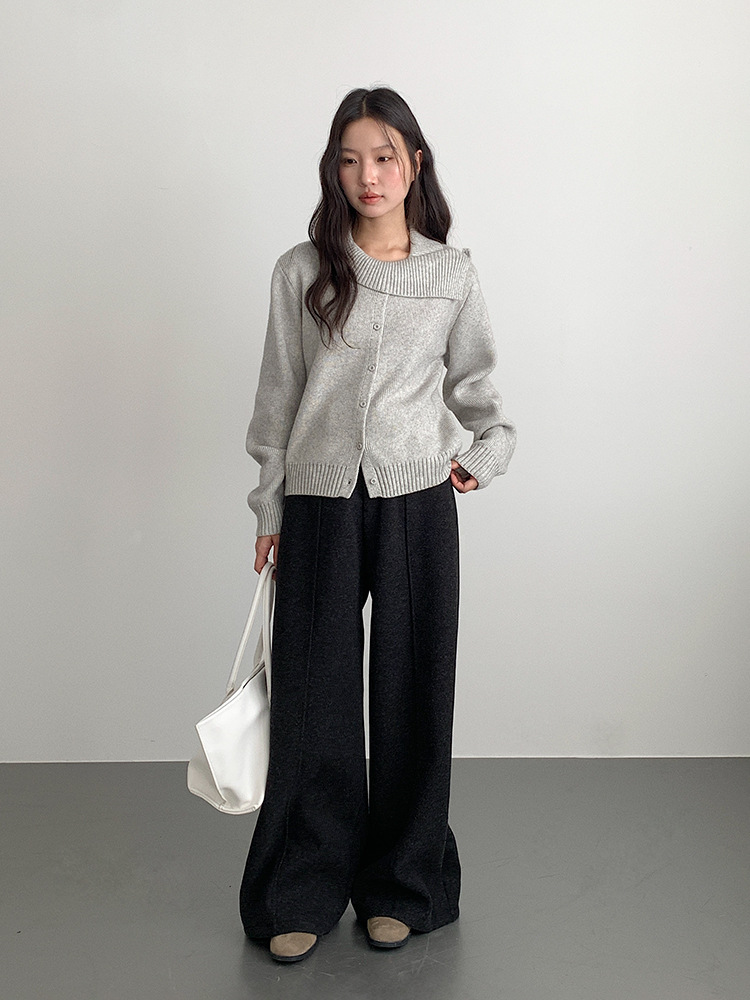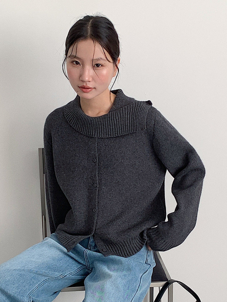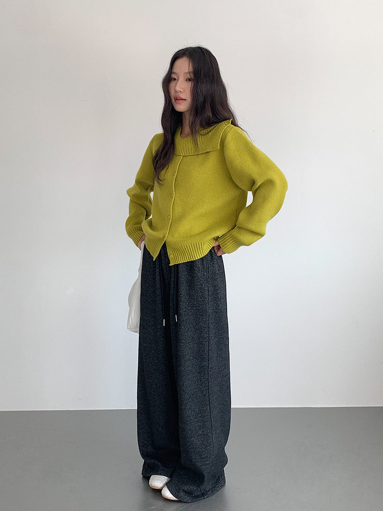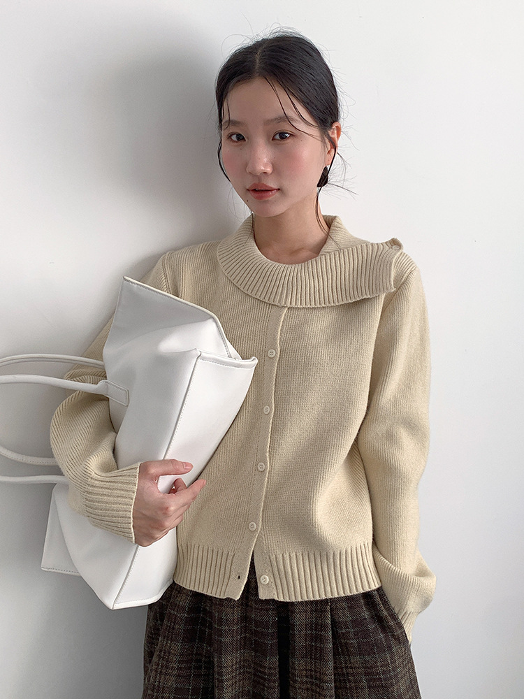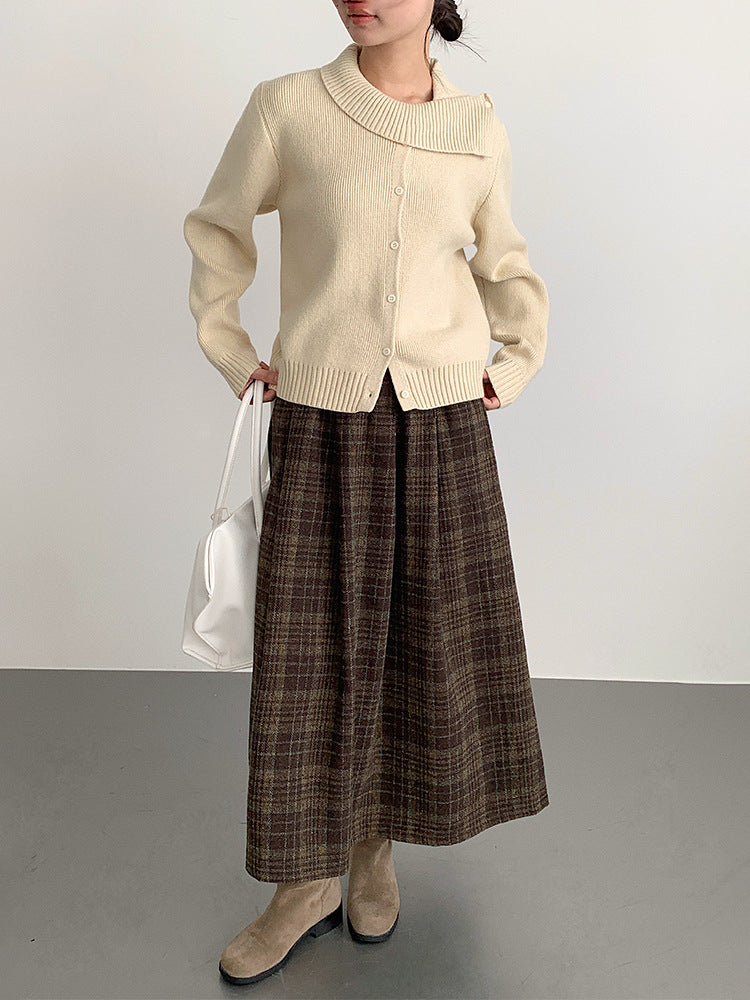 【LD11002】實拍秋冬法式設計感斜領針織毛衣外套251110