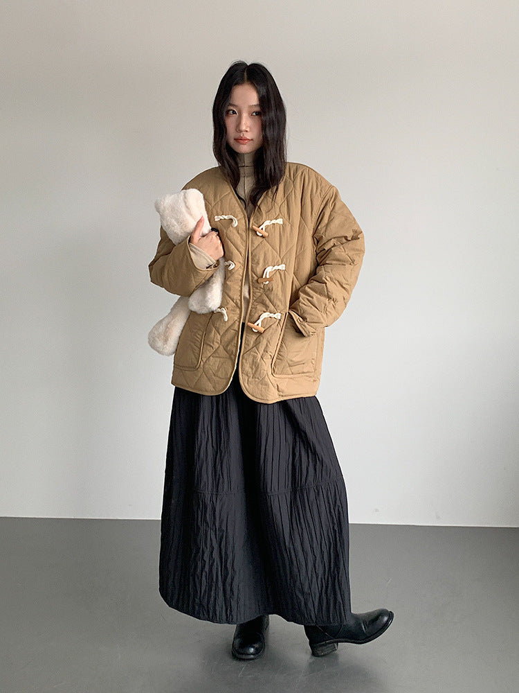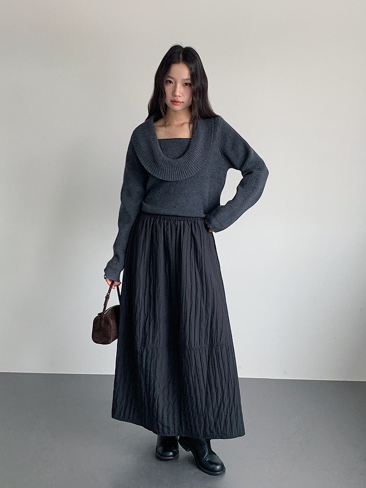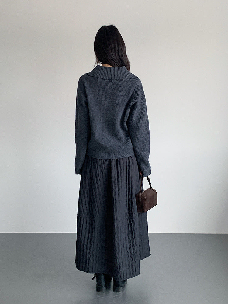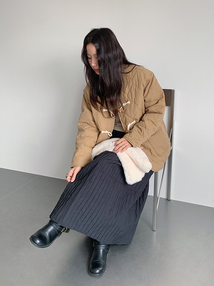 【LD11017】實拍日系加厚棉感保暖高腰花苞裙(左右有口袋)251110