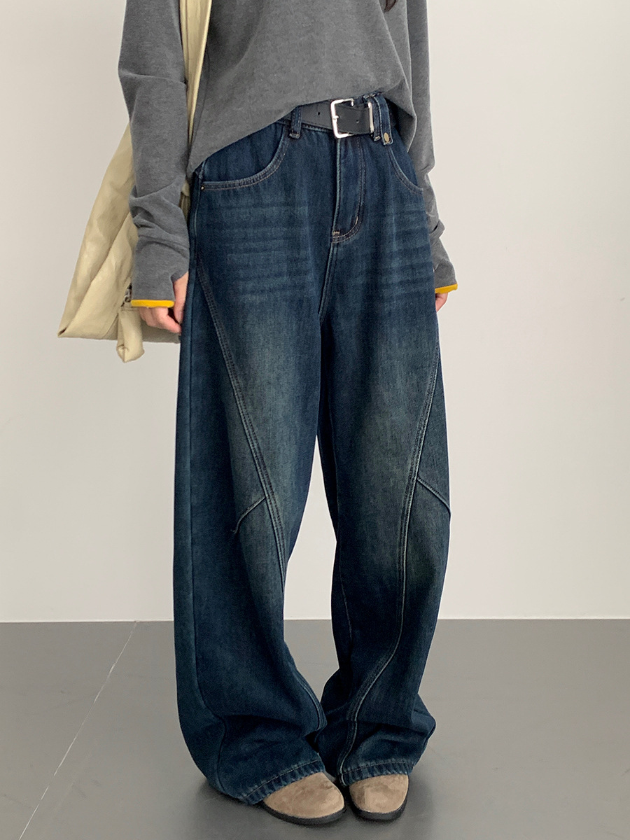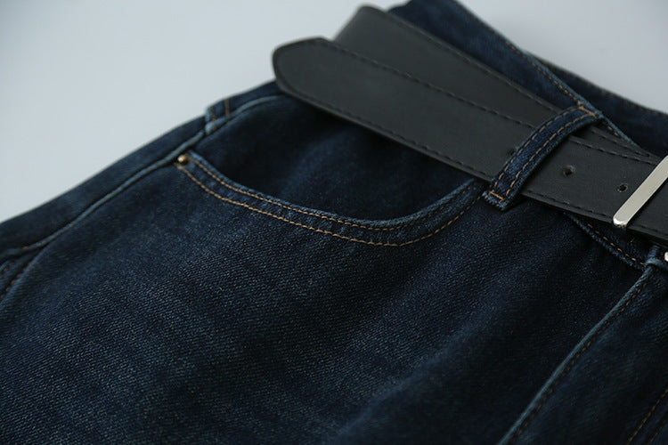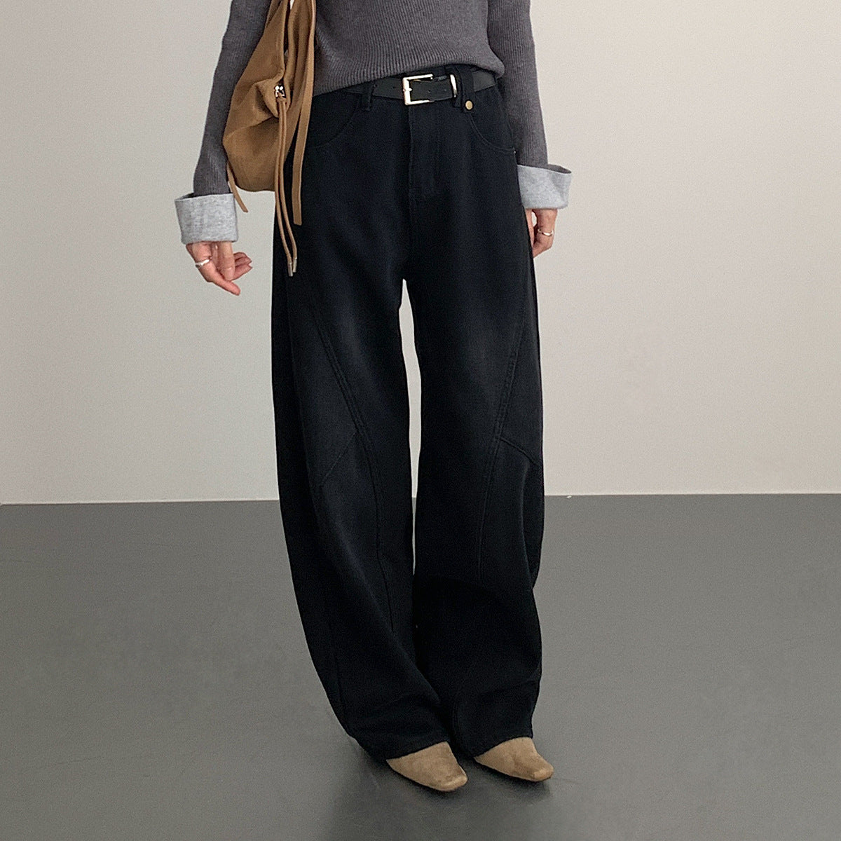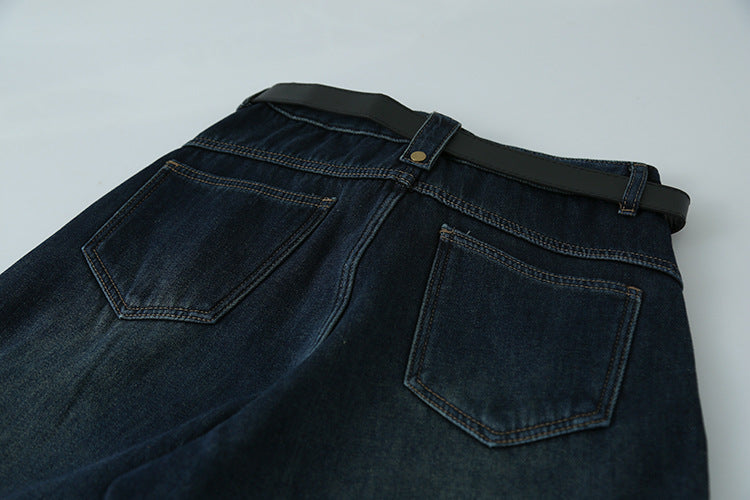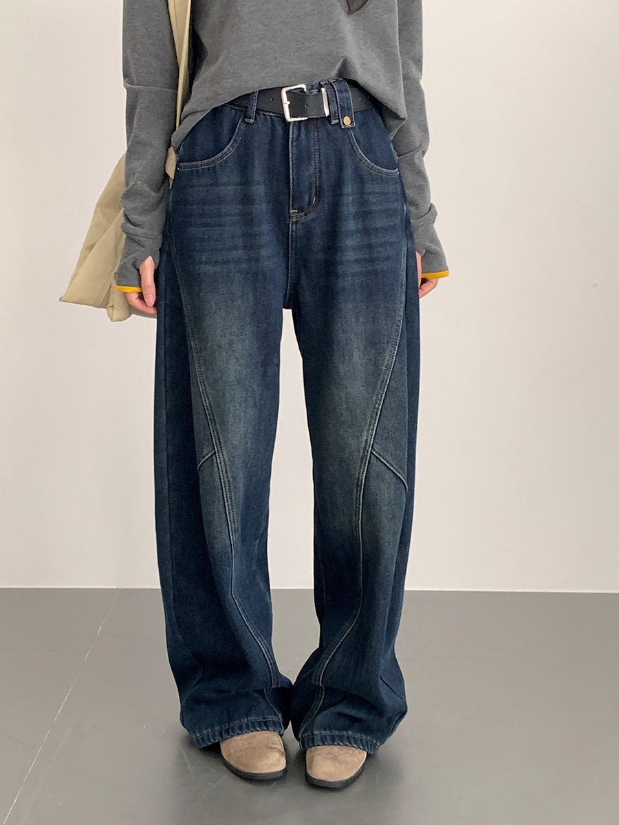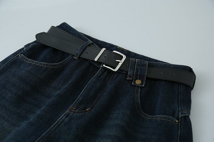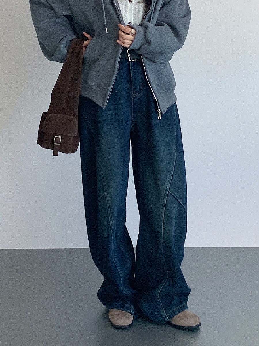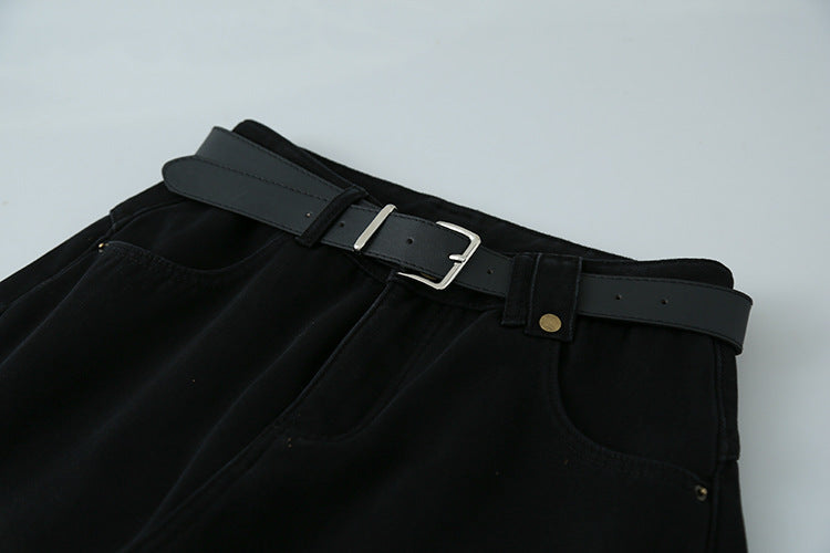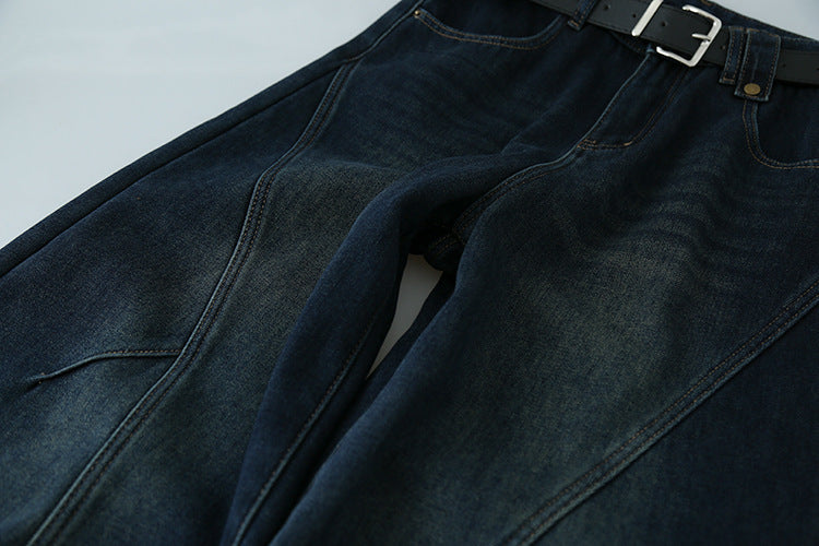 【LD11023】實拍S~XL顯瘦加絨加厚高腰寬鬆彎刀牛仔褲+腰帶251124