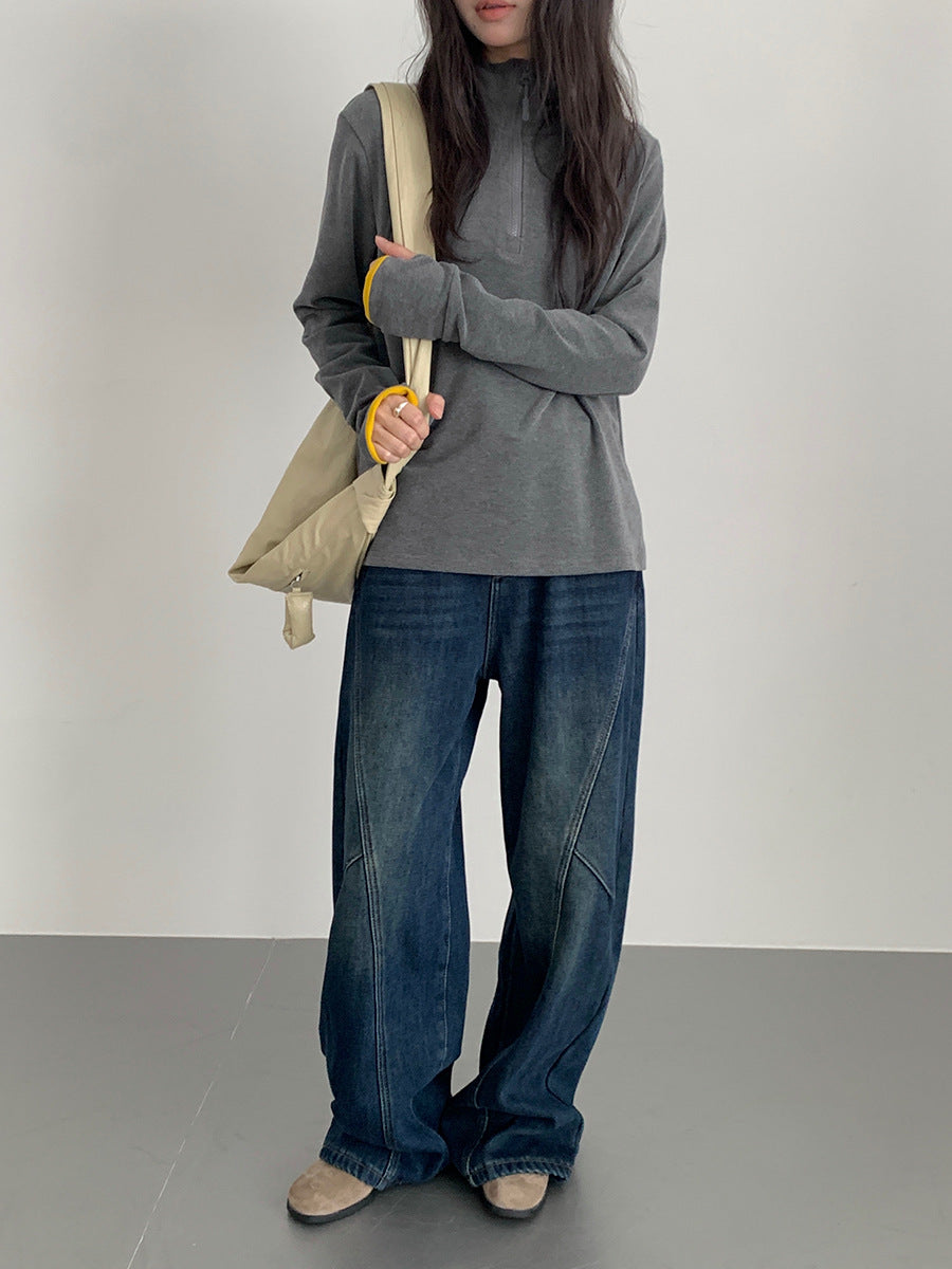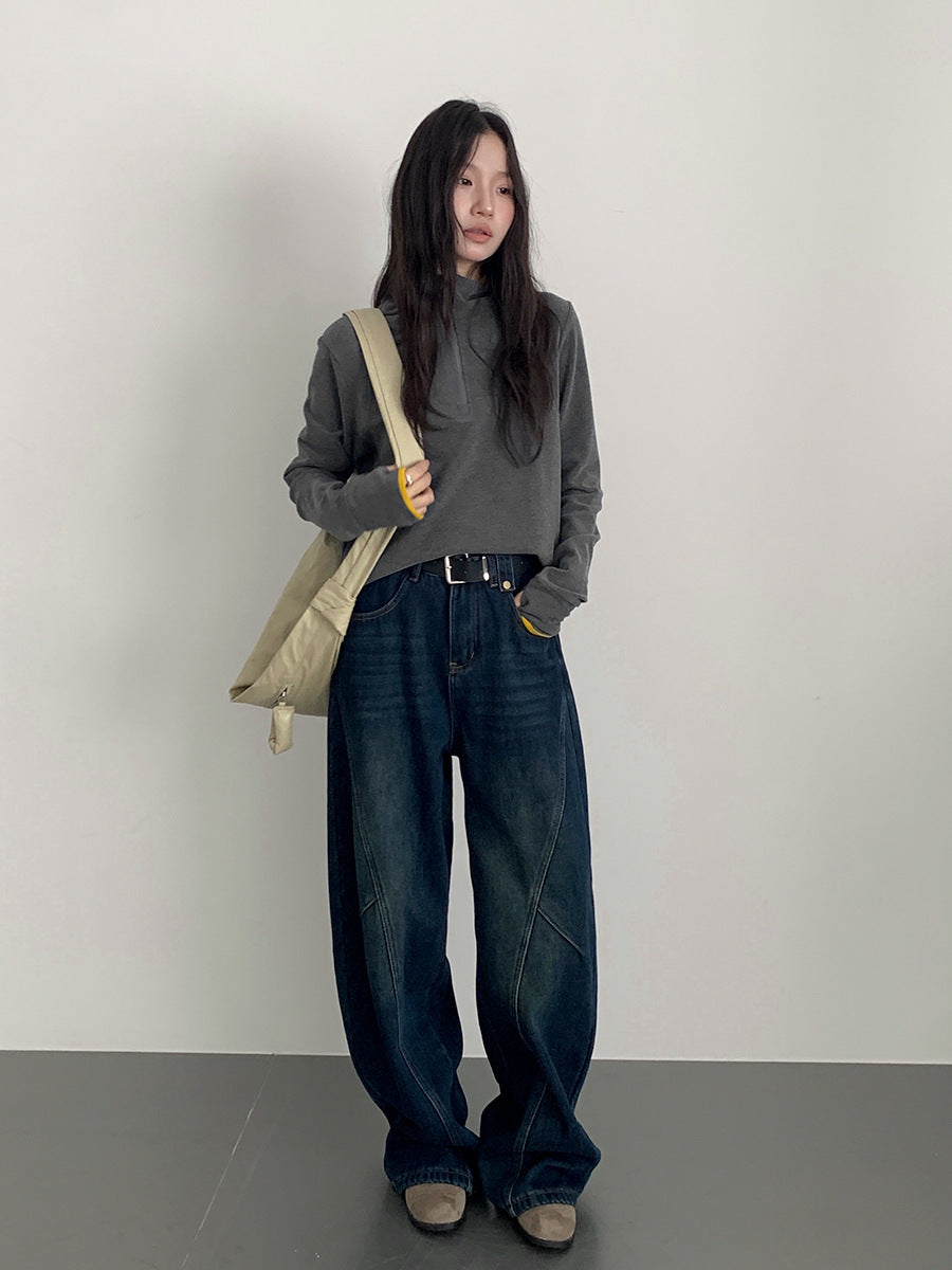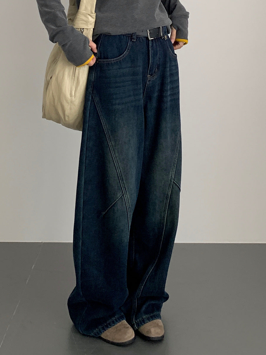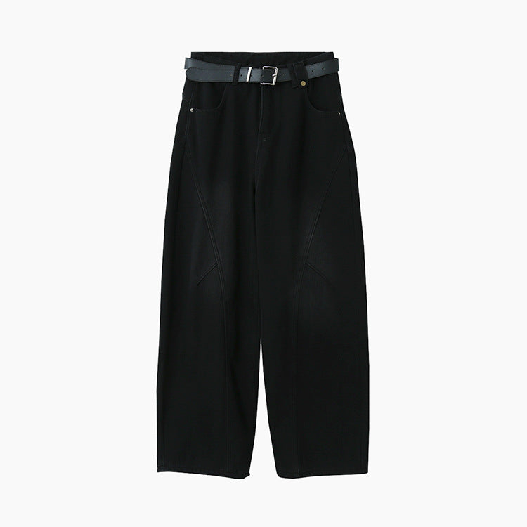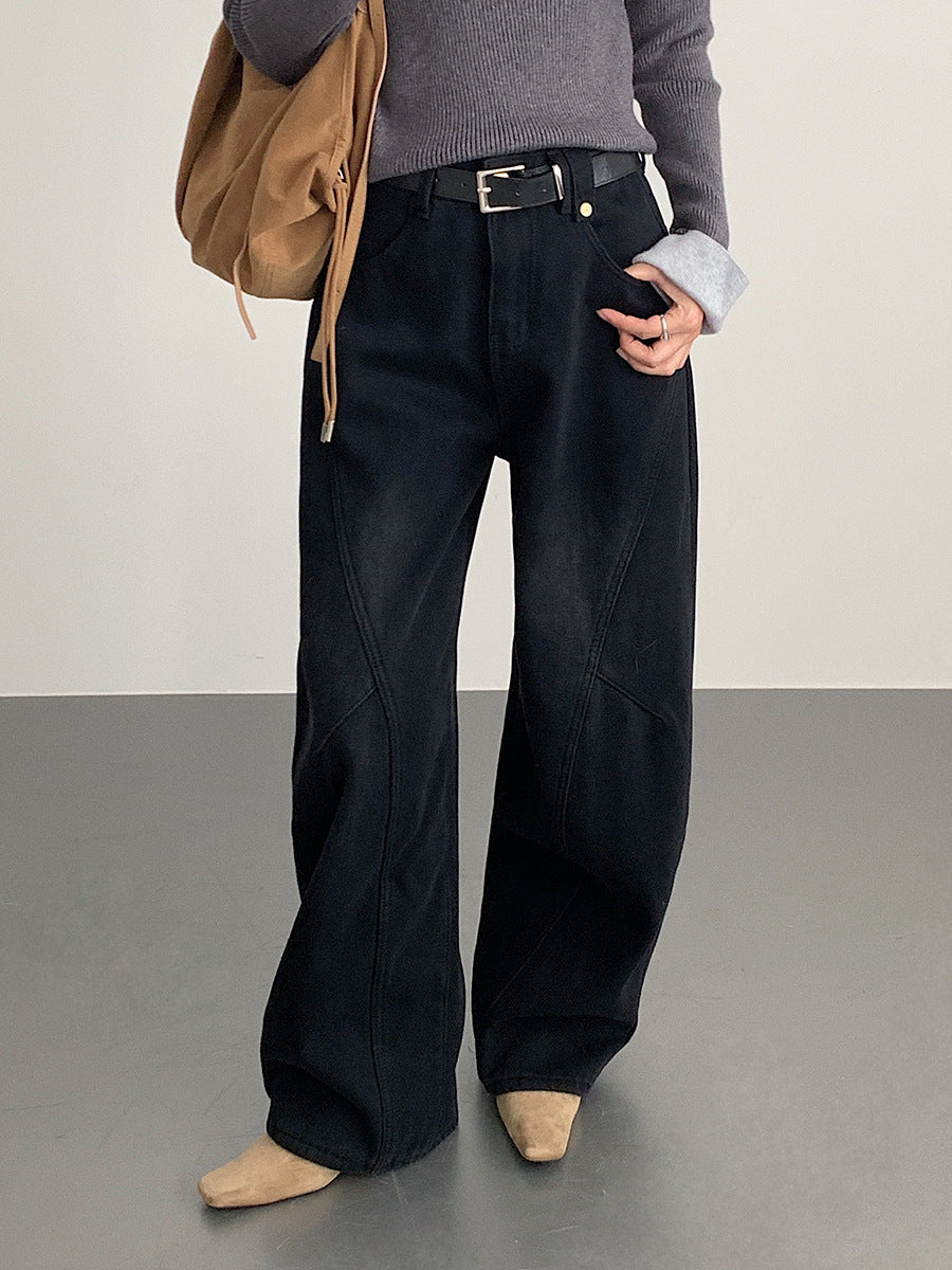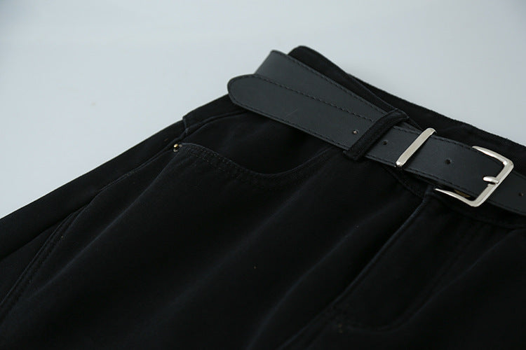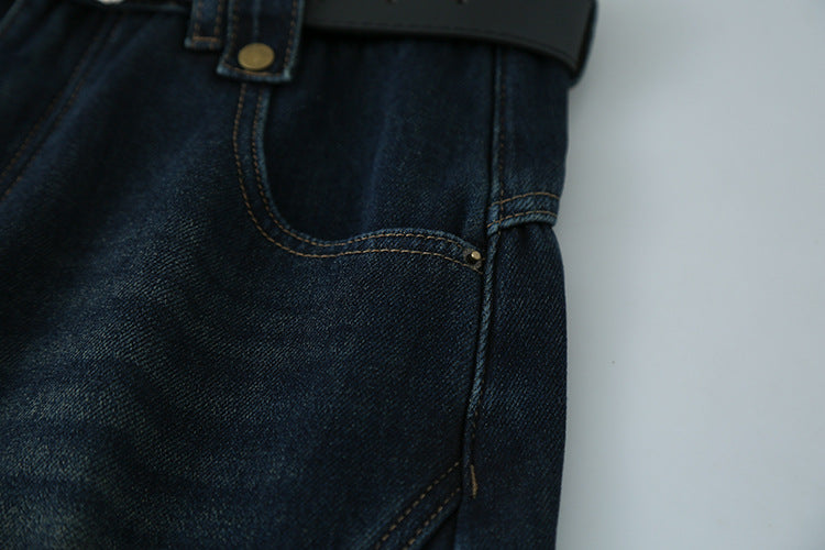 【LD11023】實拍S~XL顯瘦加絨加厚高腰寬鬆彎刀牛仔褲+腰帶251124