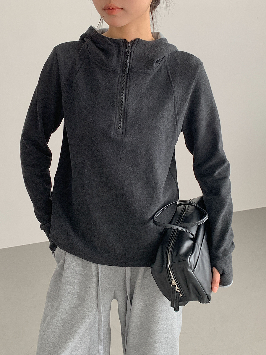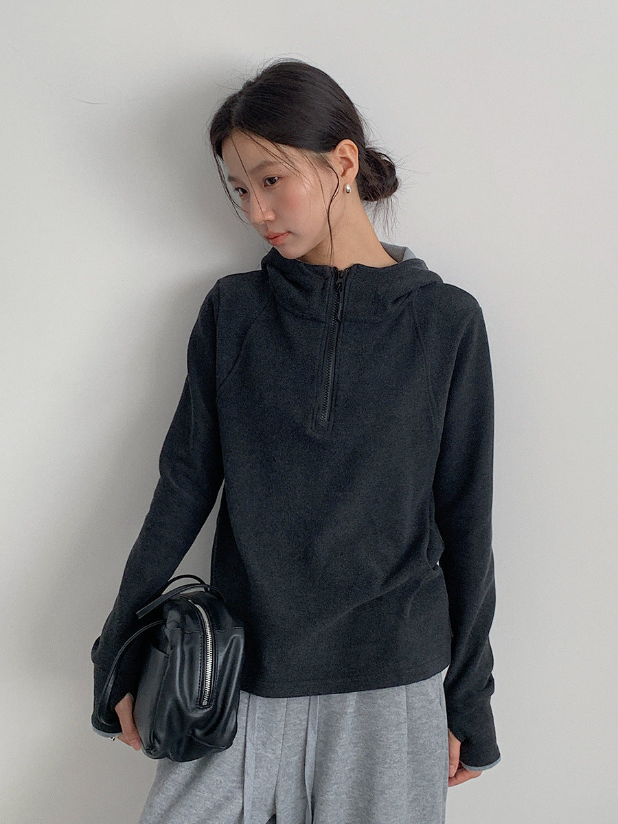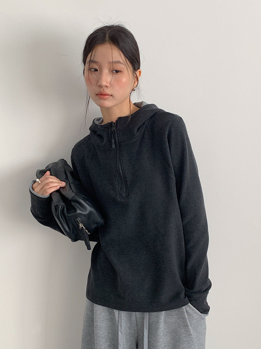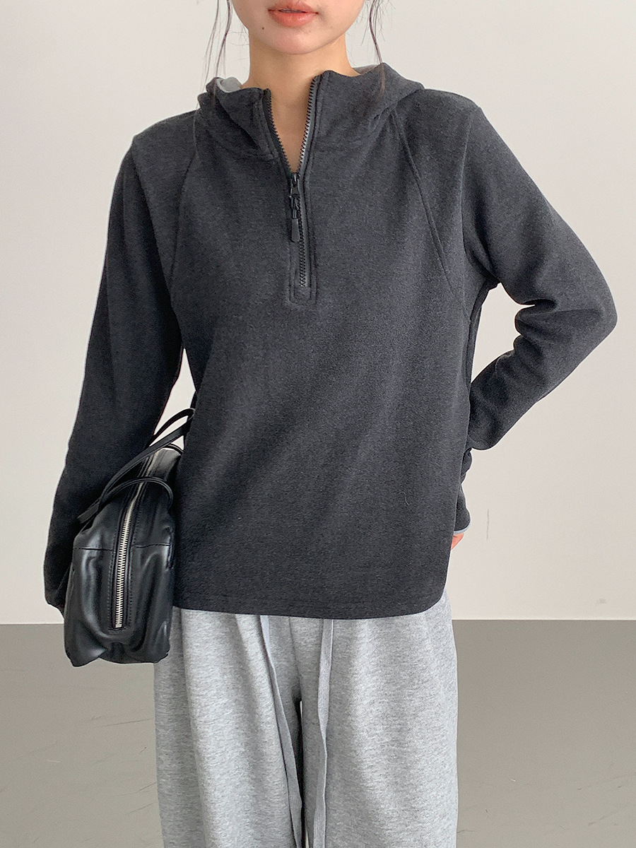 【LD11028】實拍德絨舒適極簡半拉鍊連帽衞衣251124