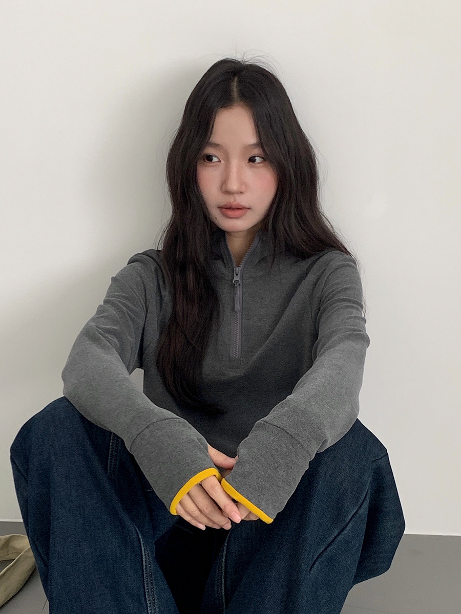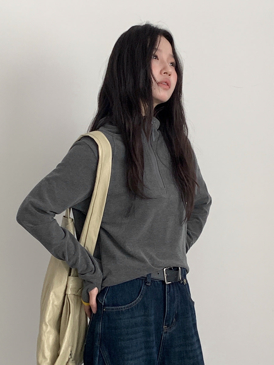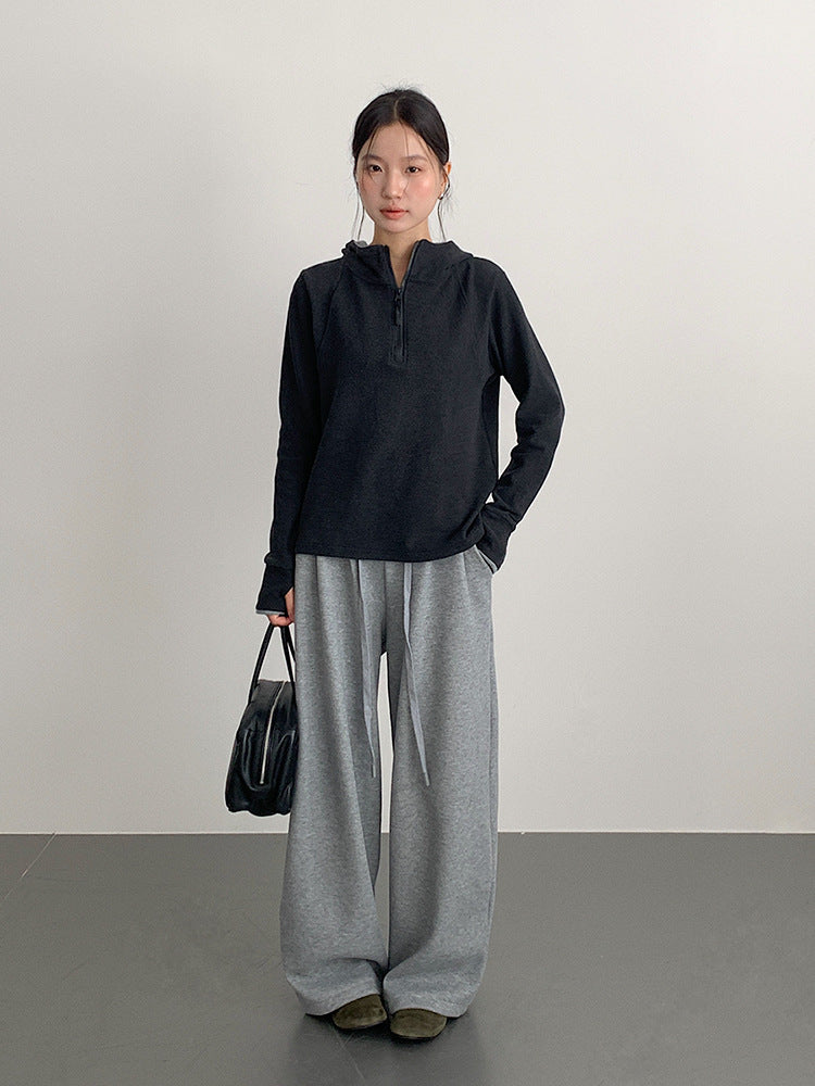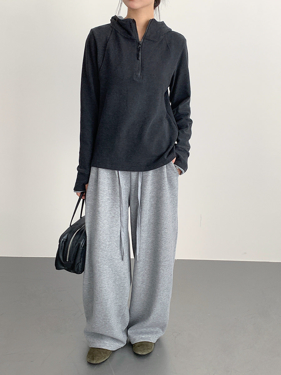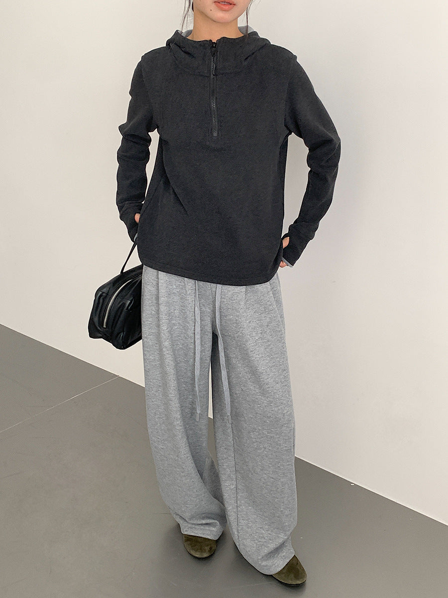 【LD11028】實拍德絨舒適極簡半拉鍊連帽衞衣251124