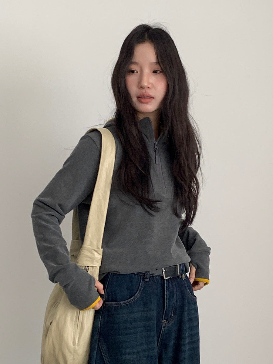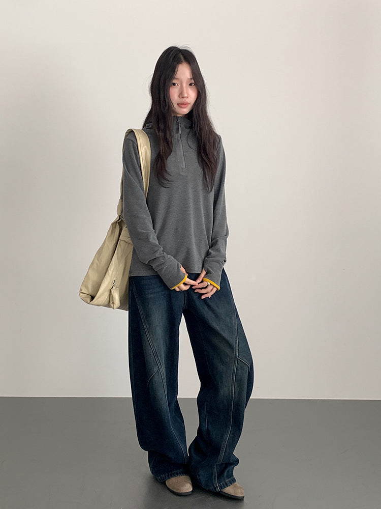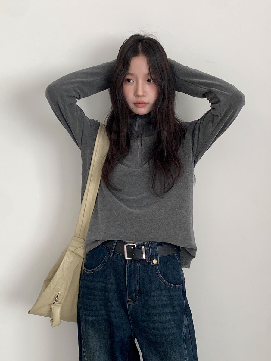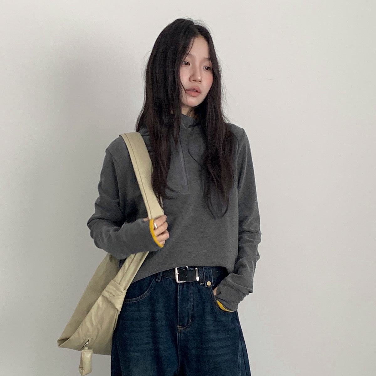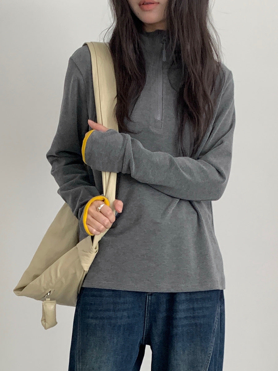【LD11028】實拍德絨舒適極簡半拉鍊連帽衞衣251124