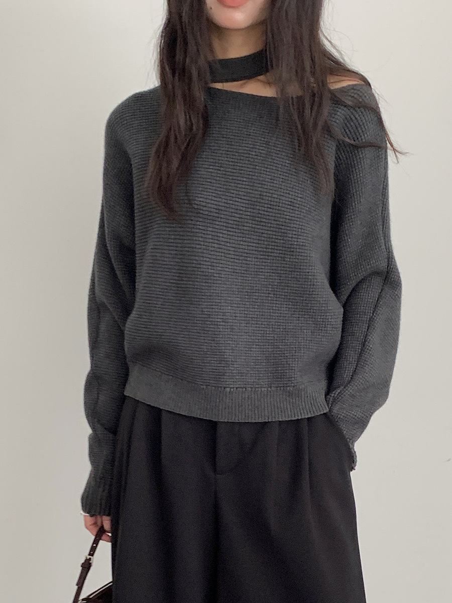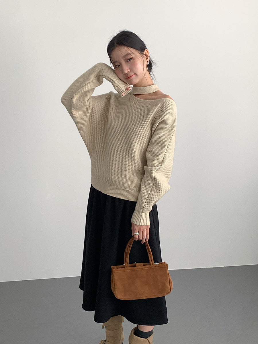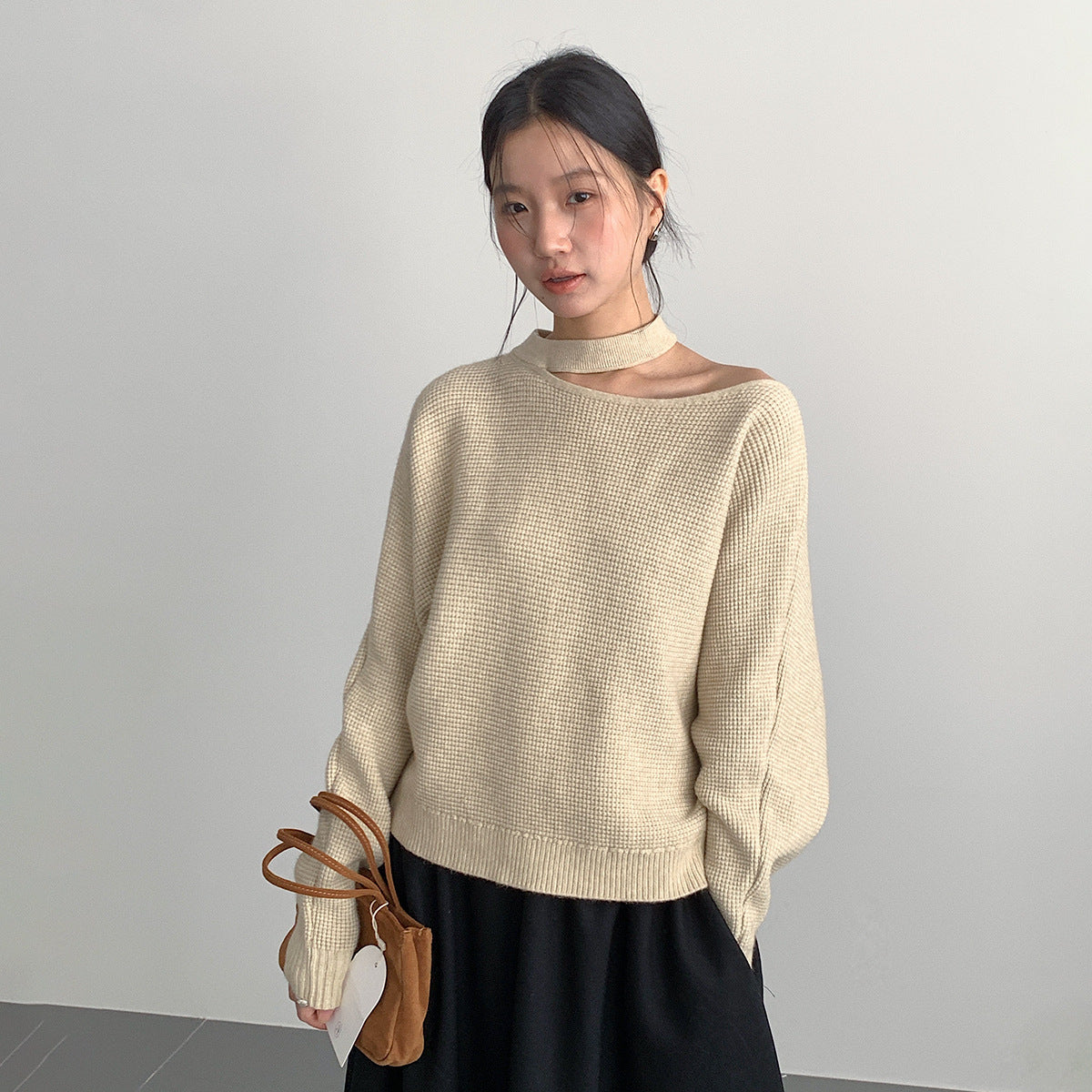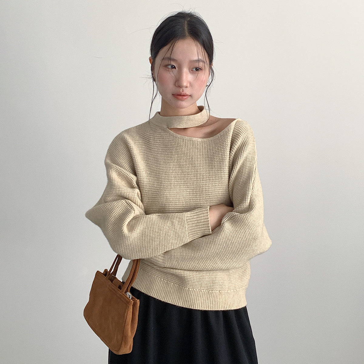 【LD11029】實拍韓系掛脖鏤空露肩針織毛衣251124