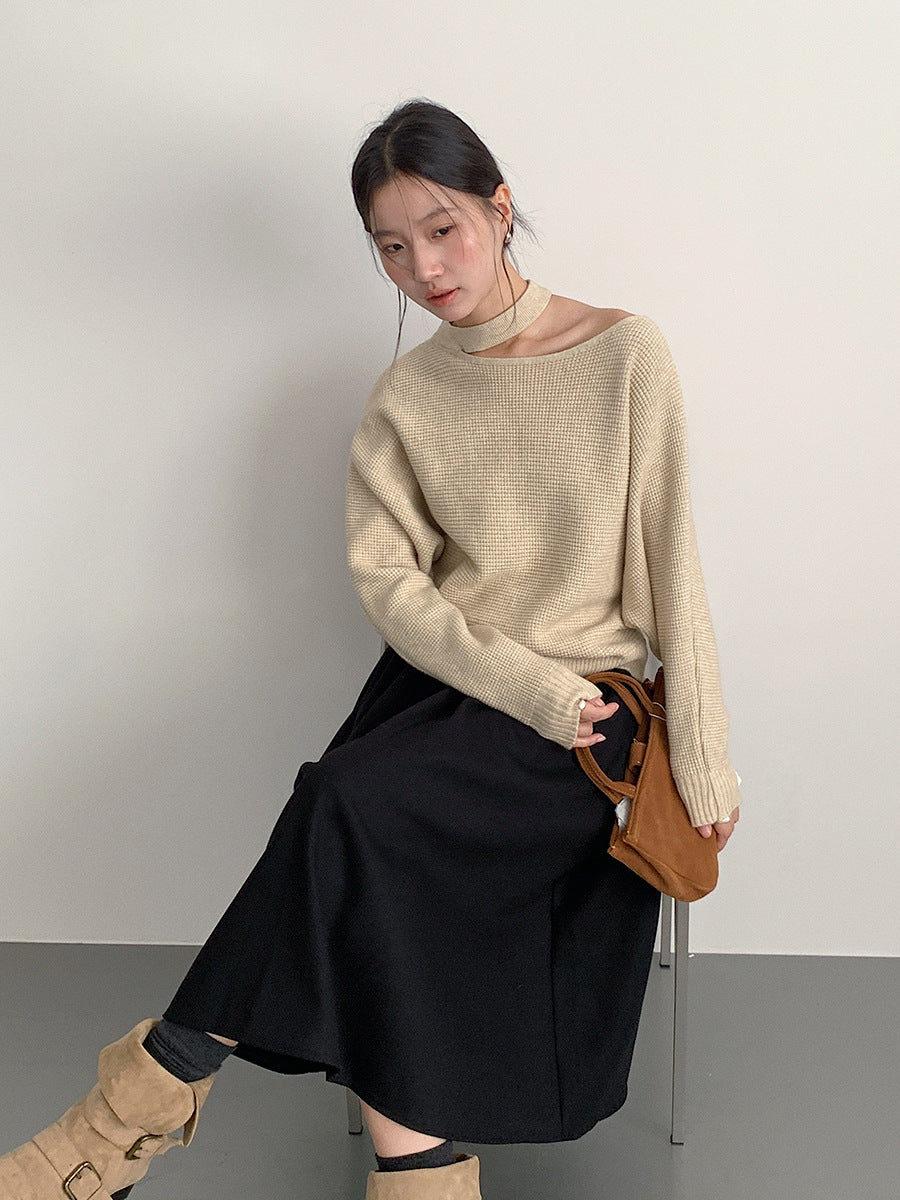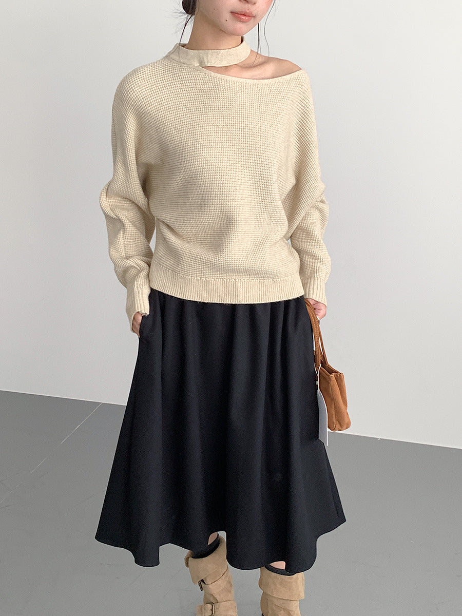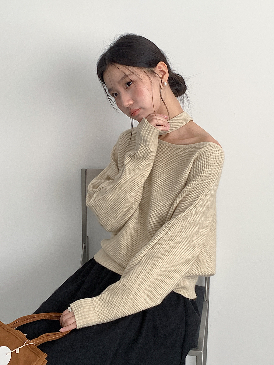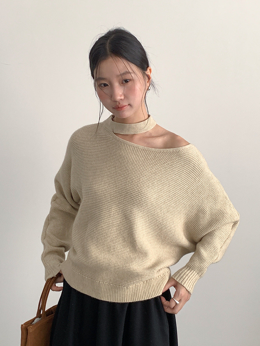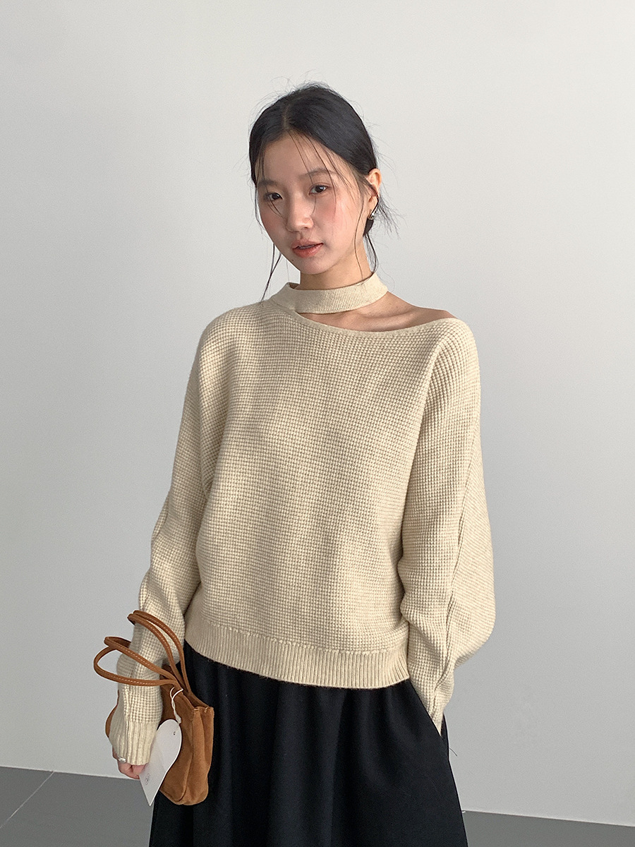 【LD11029】實拍韓系掛脖鏤空露肩針織毛衣251124