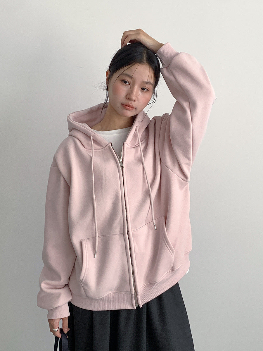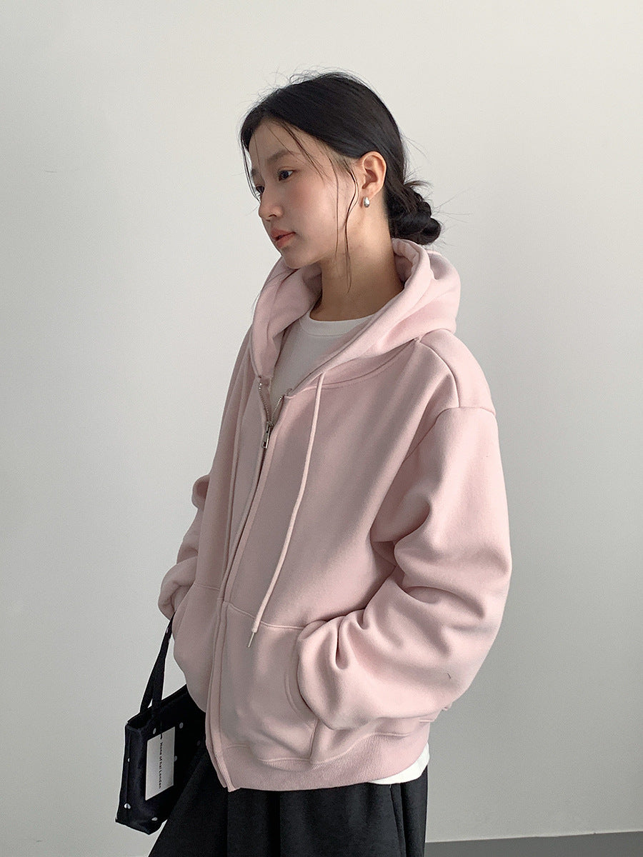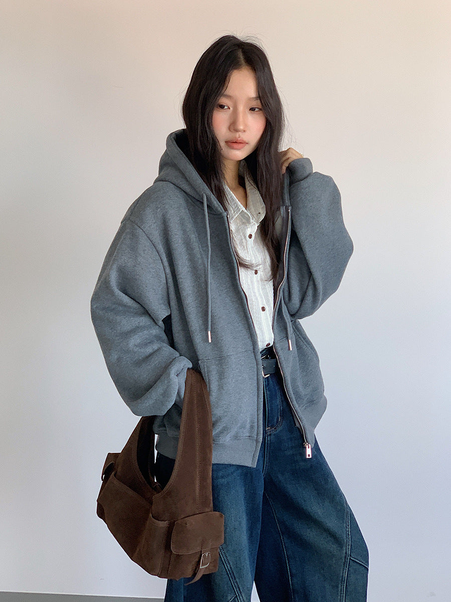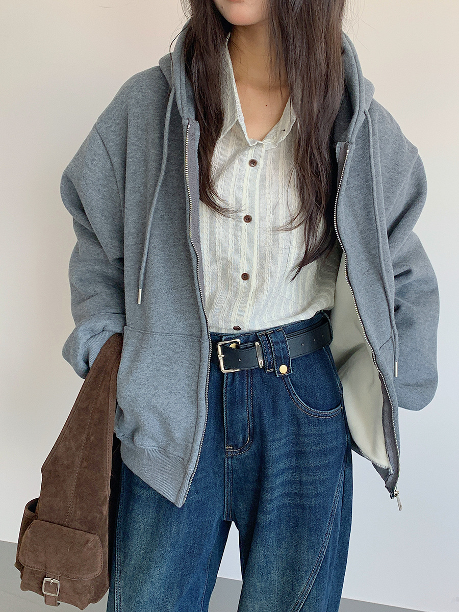 【LD11030】實拍冬季慵懶加絨加厚連帽衞衣外套251124
