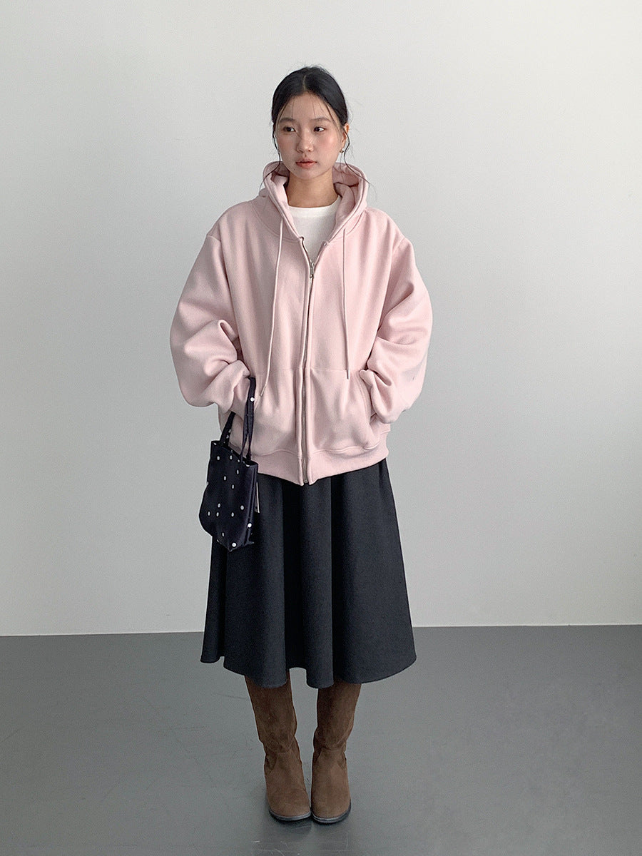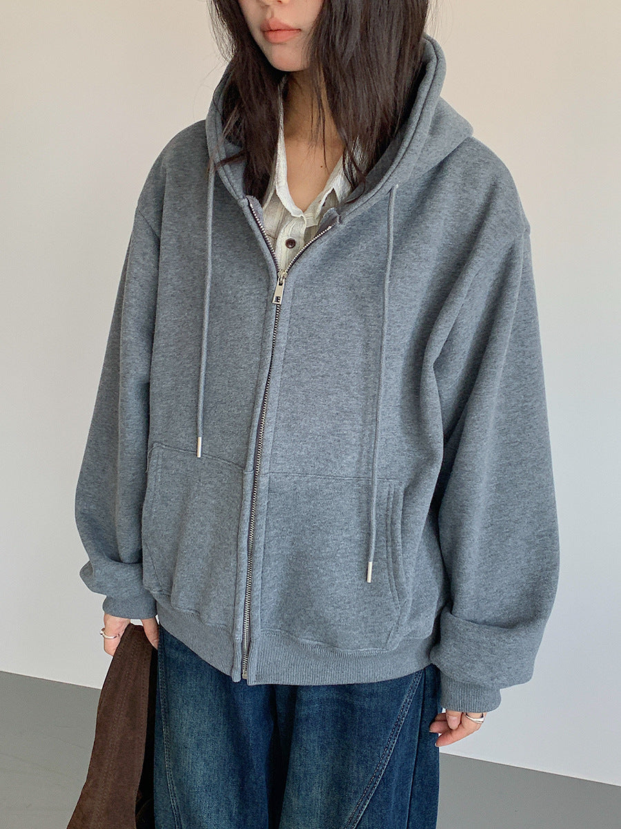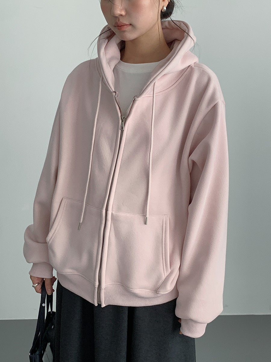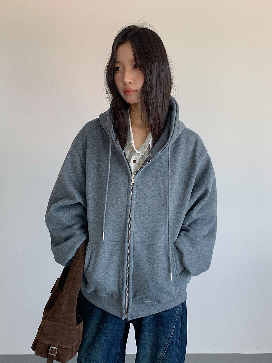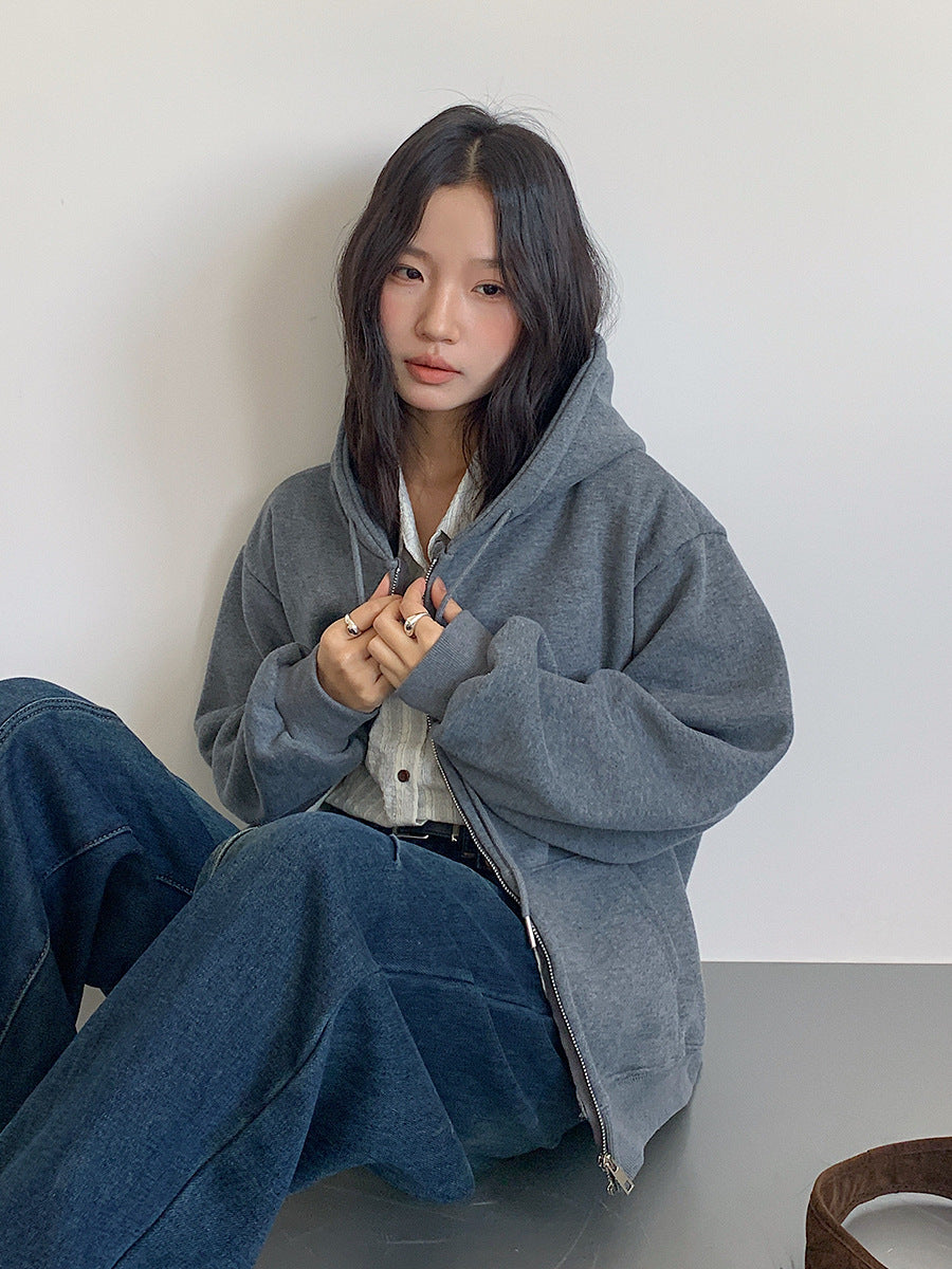 【LD11030】實拍冬季慵懶加絨加厚連帽衞衣外套251124