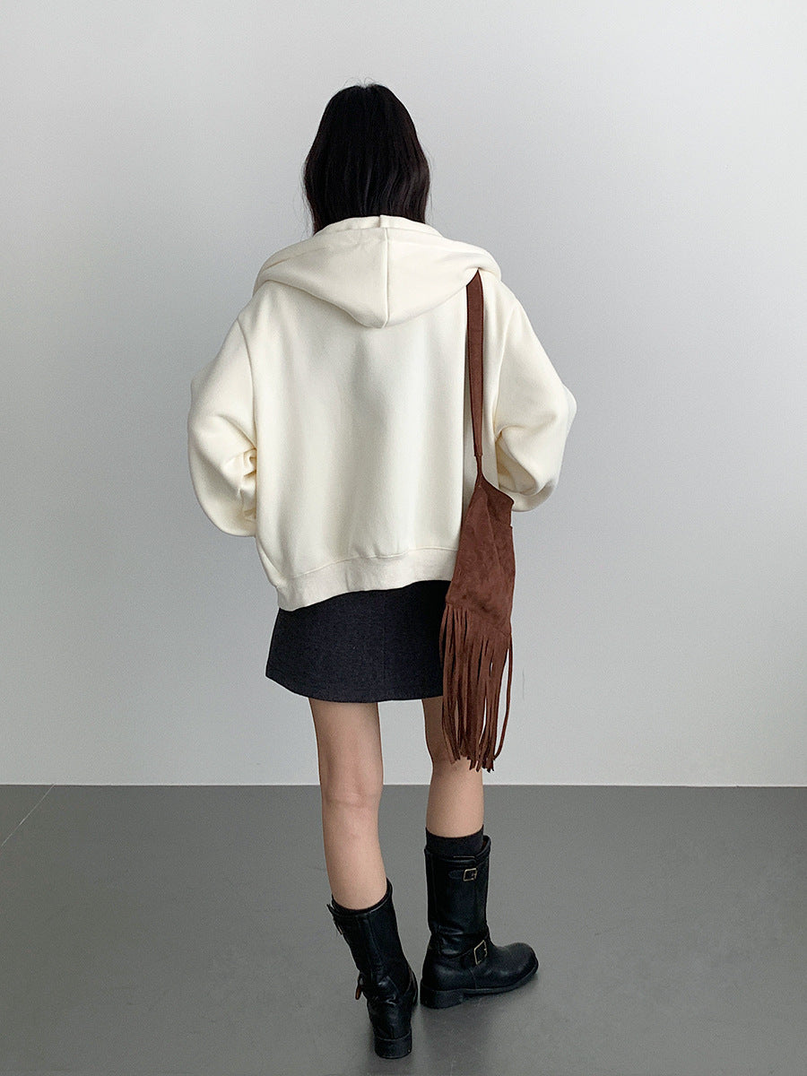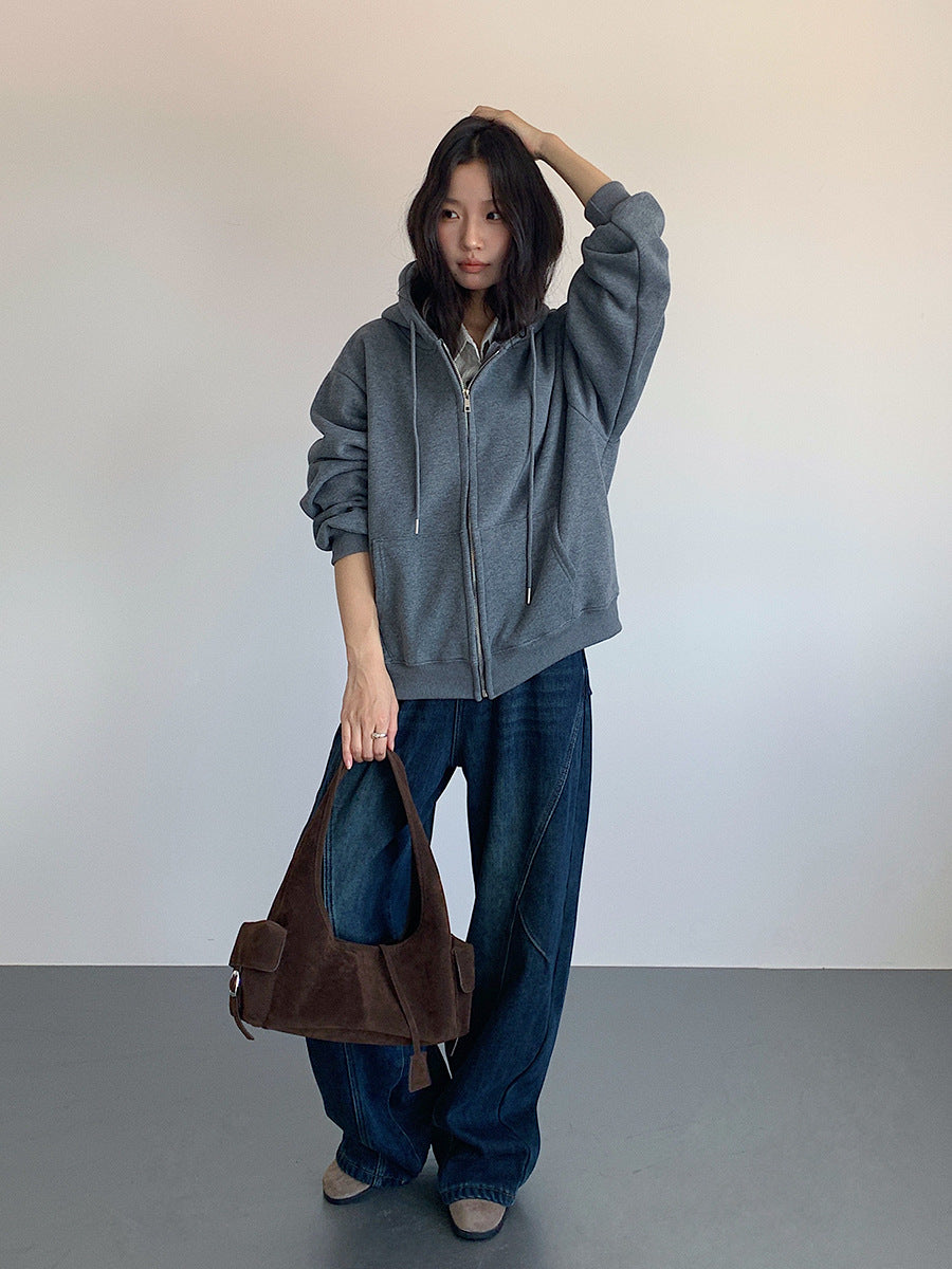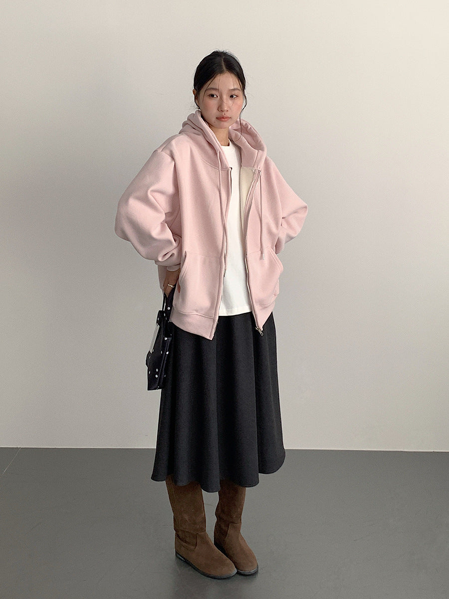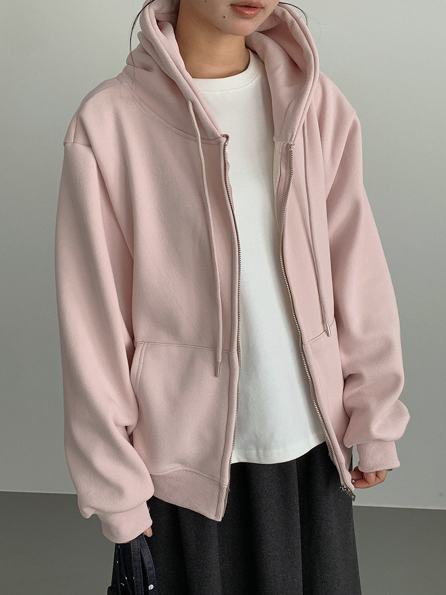 【LD11030】實拍冬季慵懶加絨加厚連帽衞衣外套251124