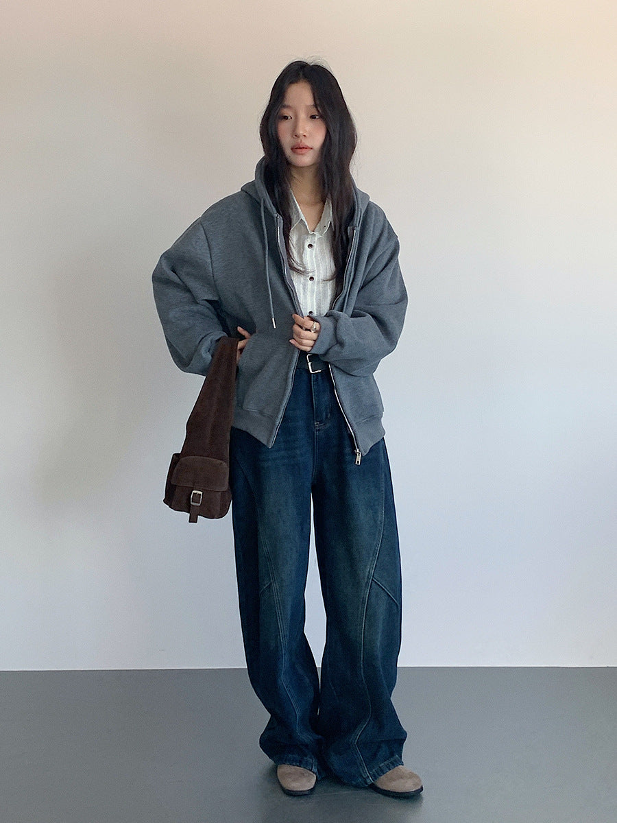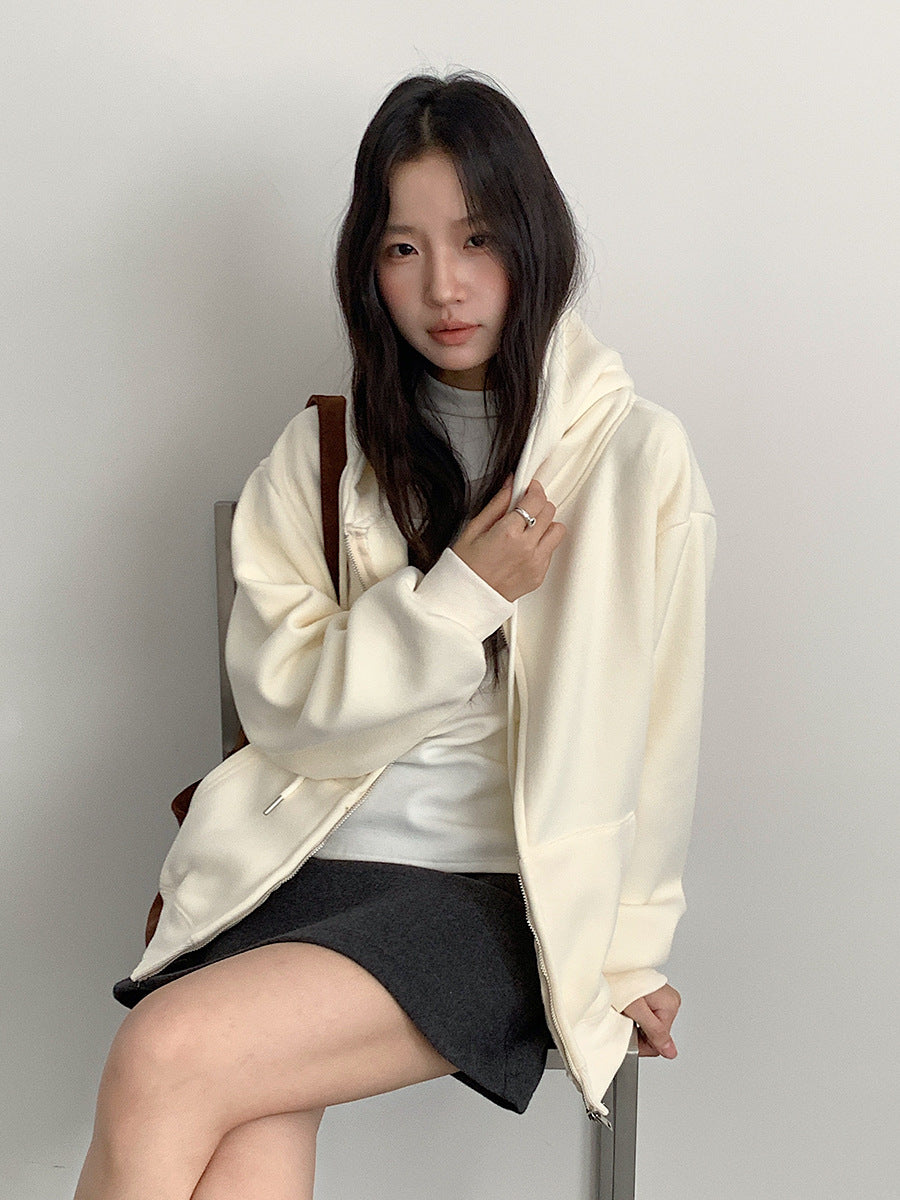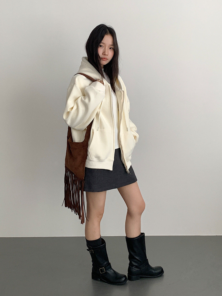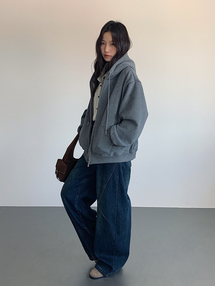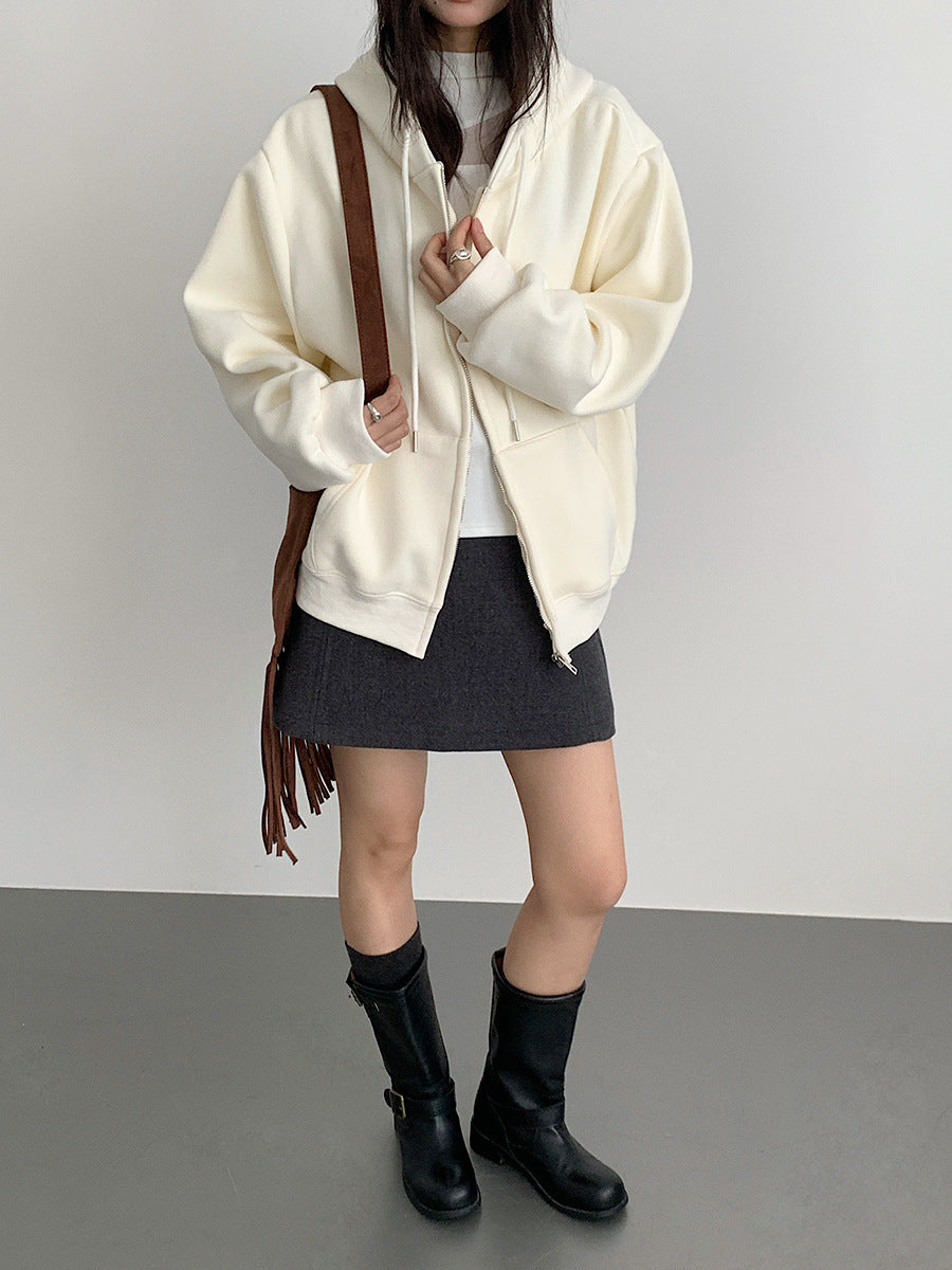 【LD11030】實拍冬季慵懶加絨加厚連帽衞衣外套251124