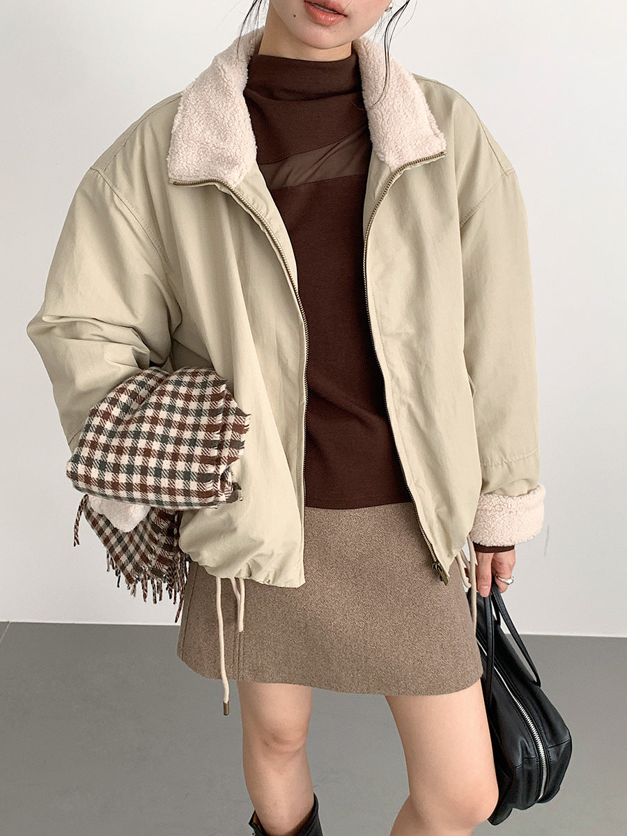 【LD11031】實拍冬天高級感加厚立領羊羔毛保暖夾克外套251124