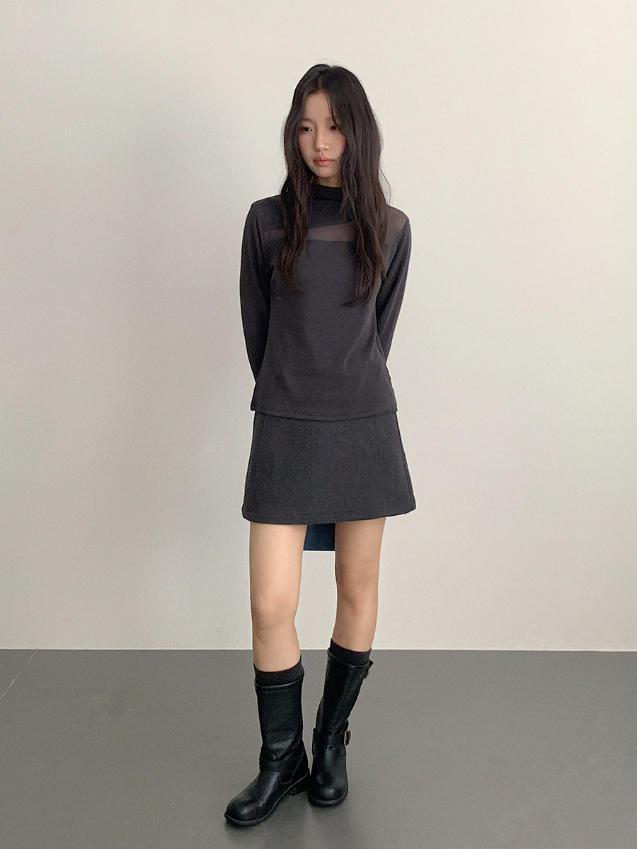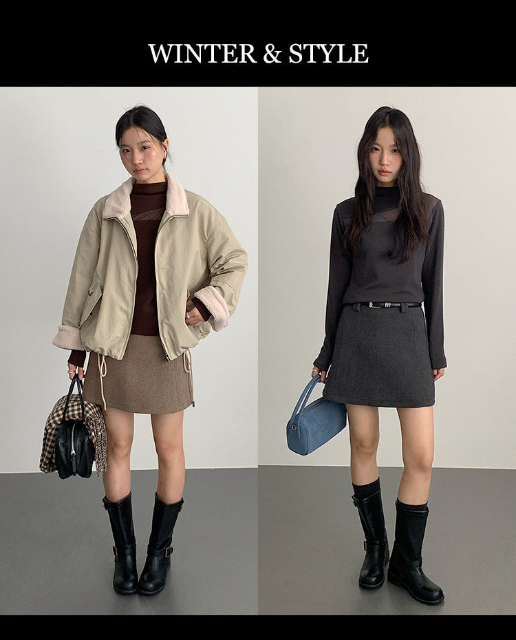 【LD11032】實拍S~XL羊毛絨超瘦高腰A字裙羊毛10%(內有安全褲+皮帶)251124