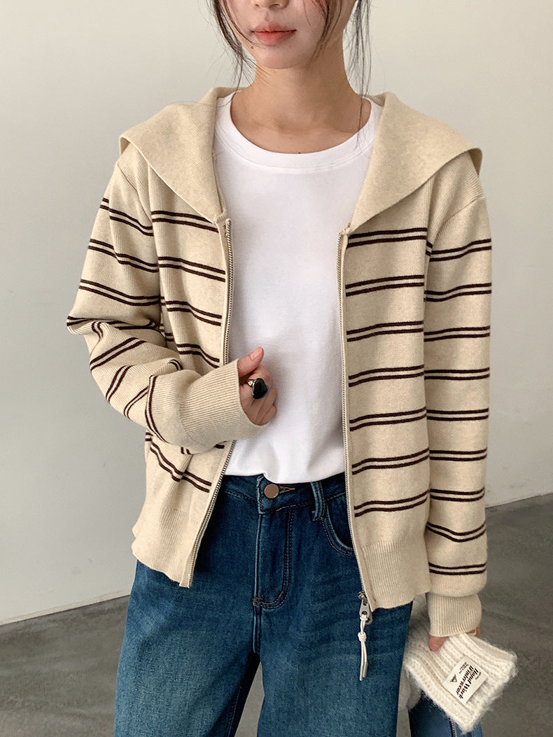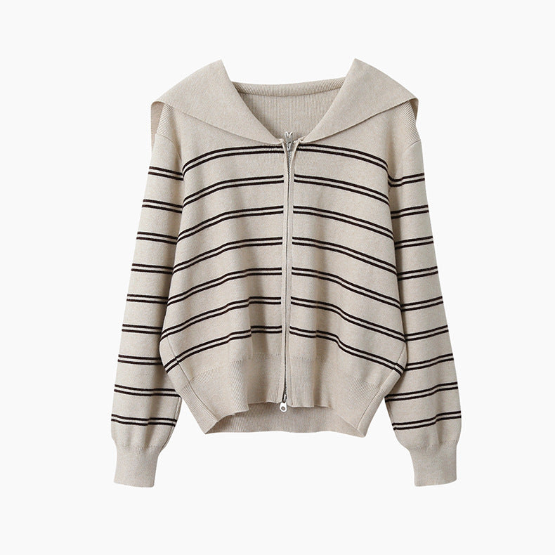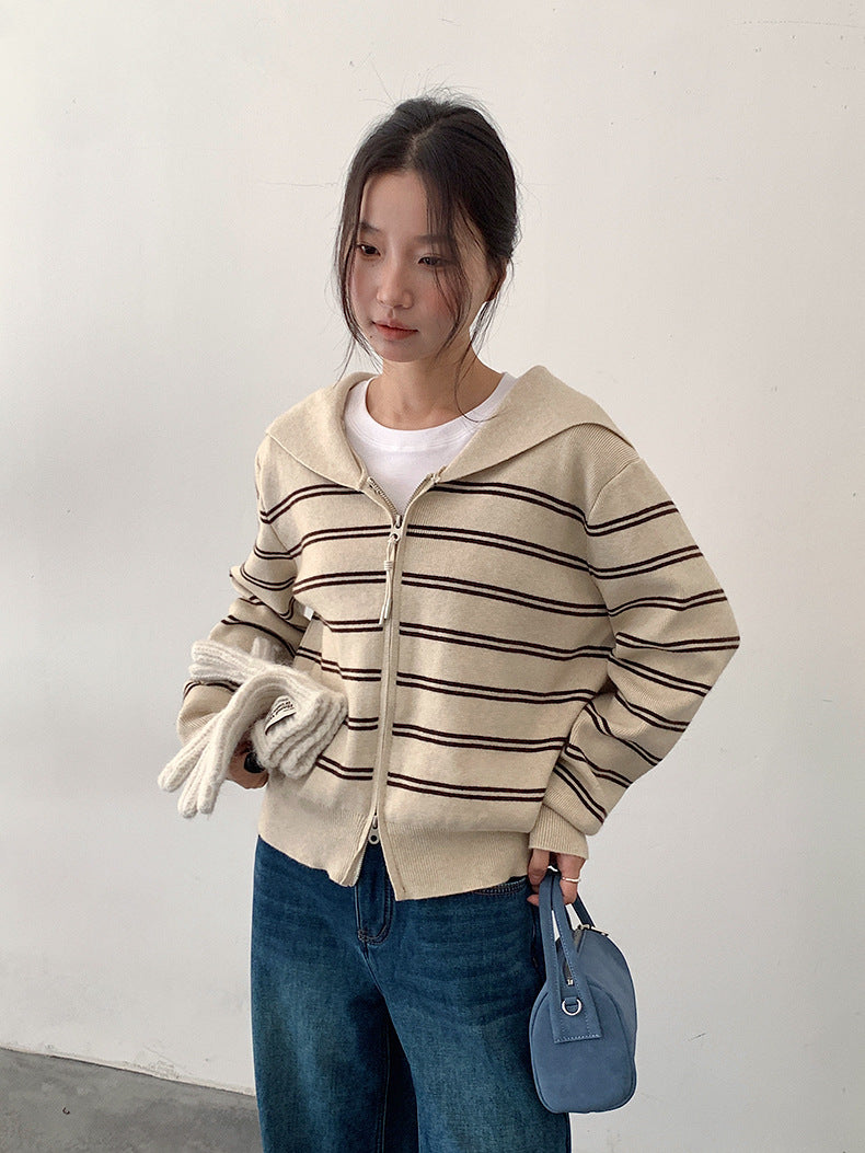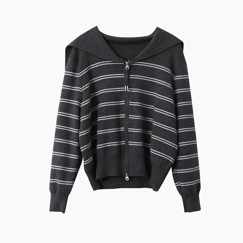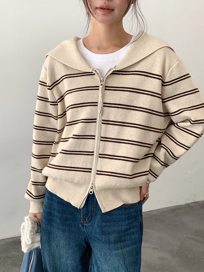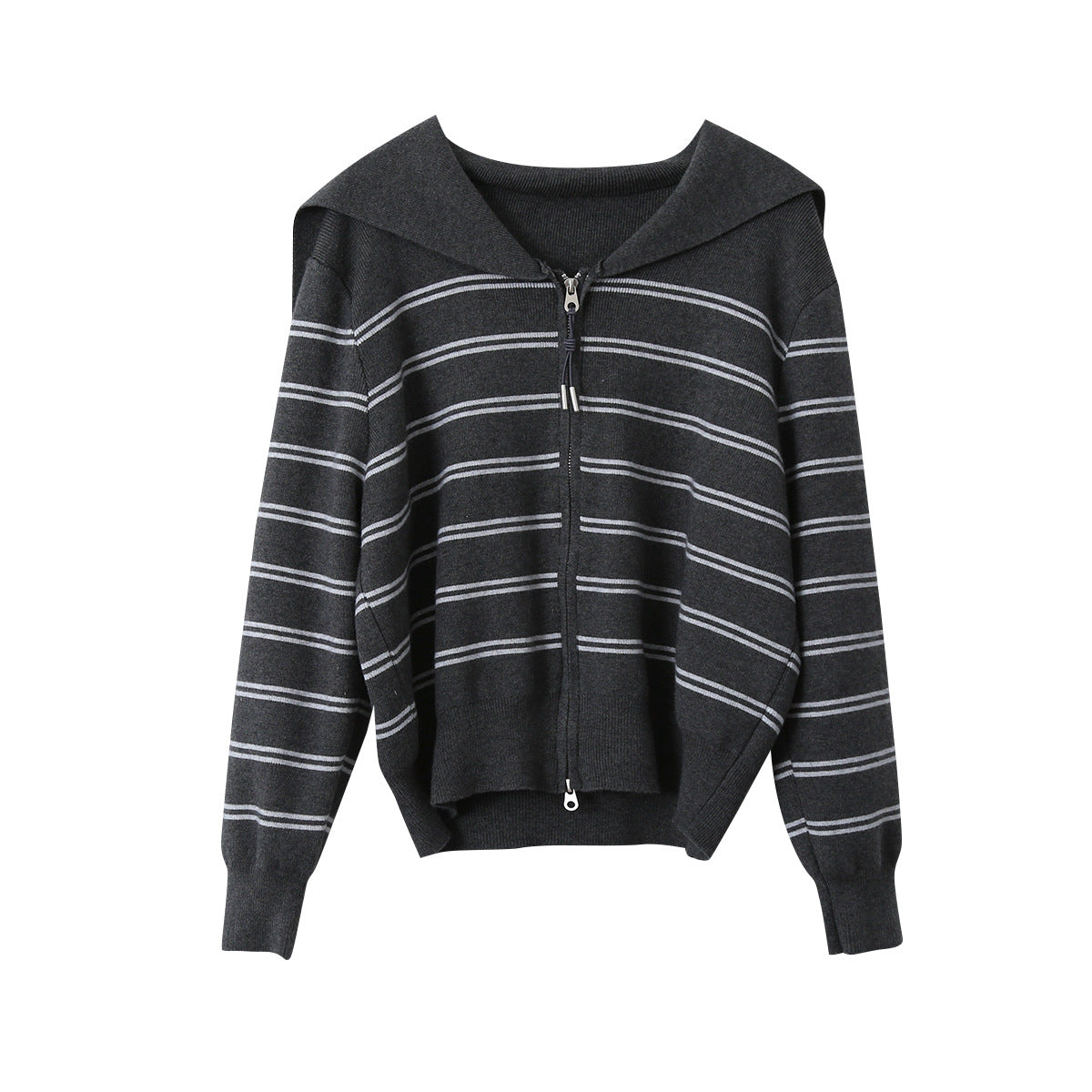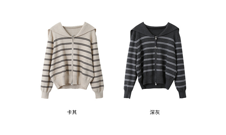 【LD11036】實拍雙頭拉鍊海軍領條紋針織開衫251202