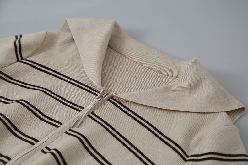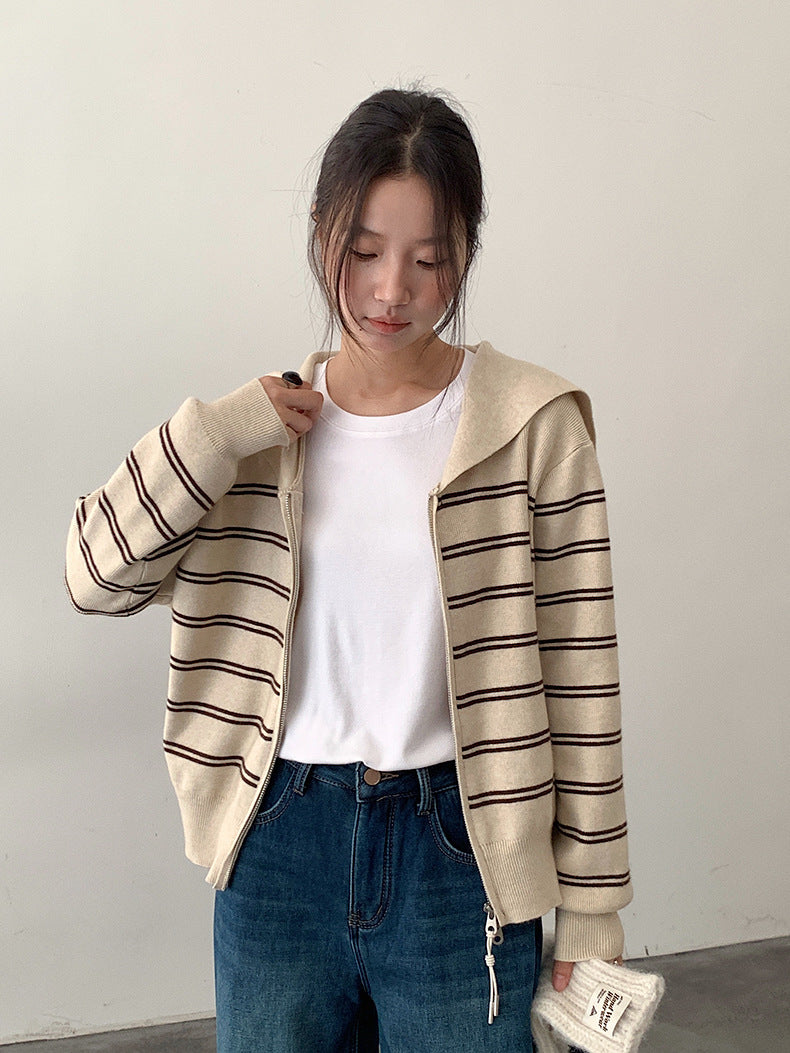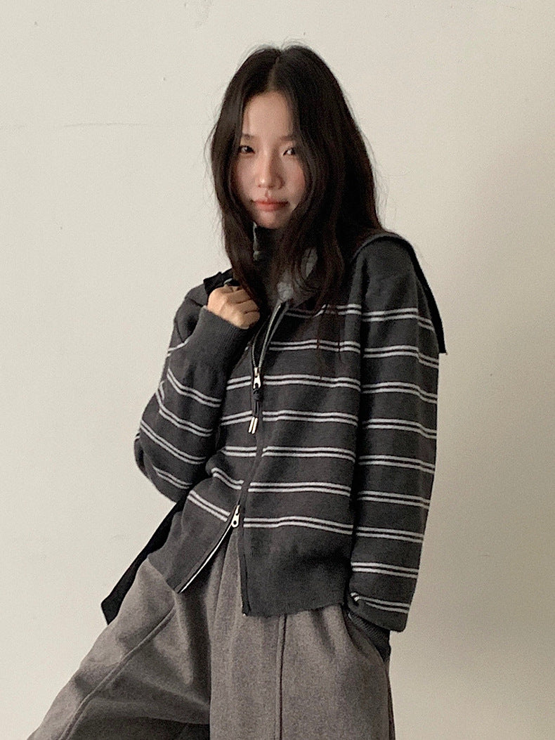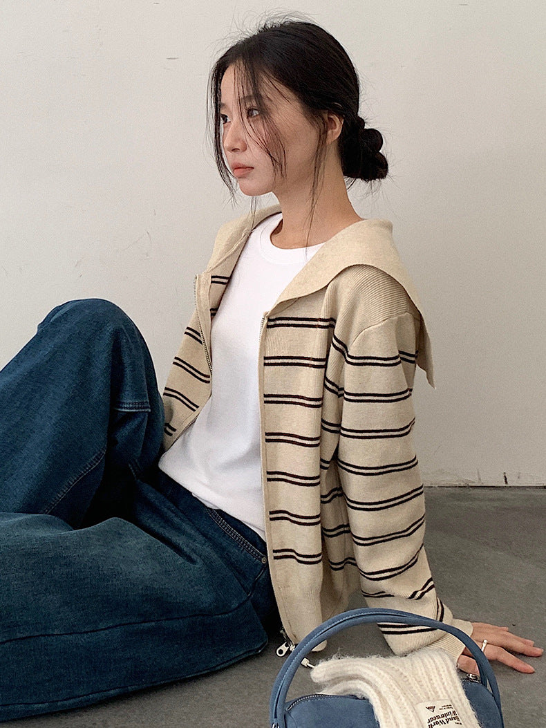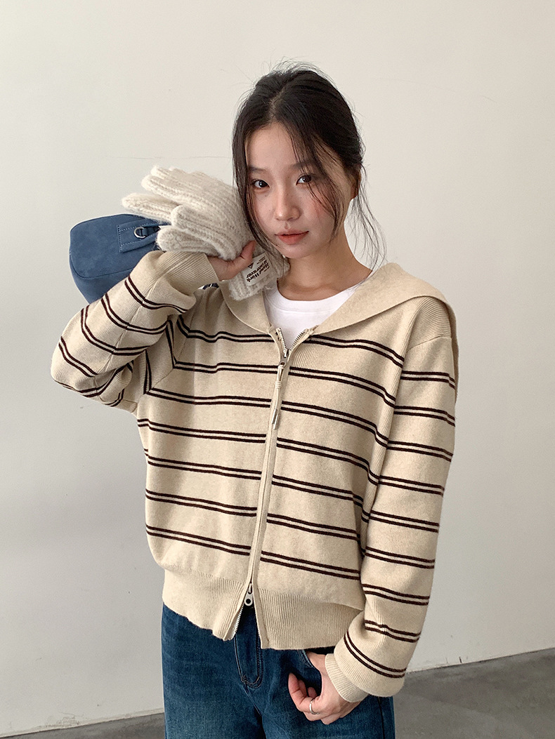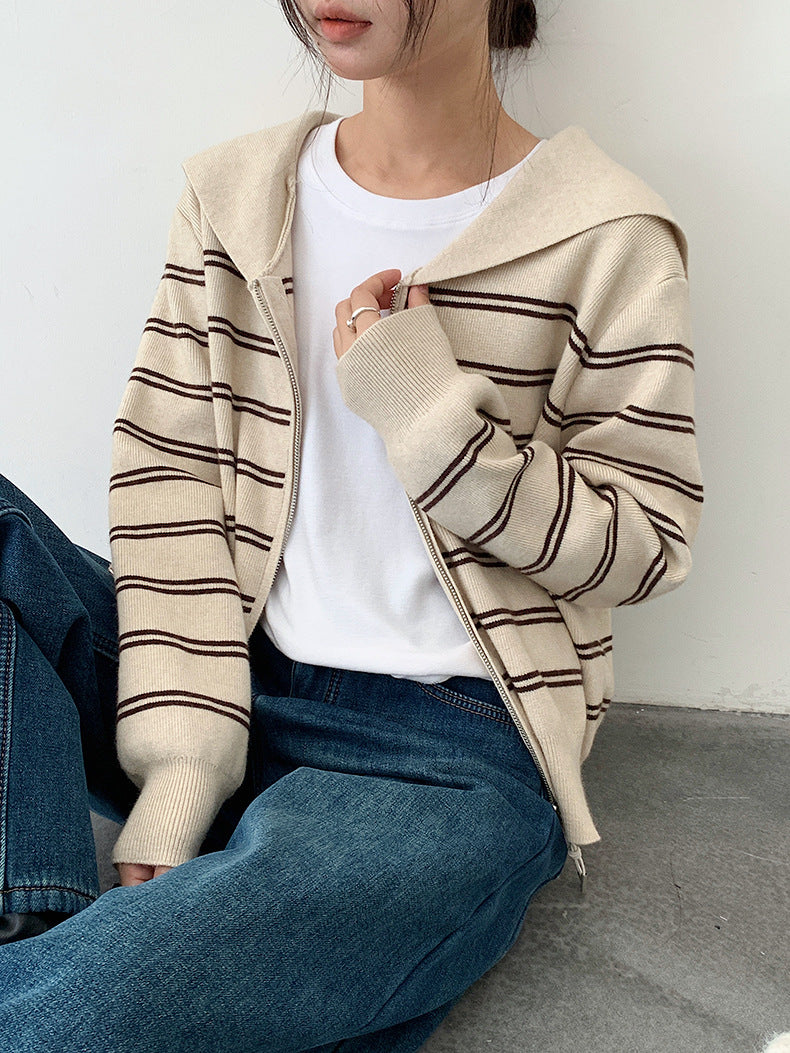 【LD11036】實拍雙頭拉鍊海軍領條紋針織開衫251202