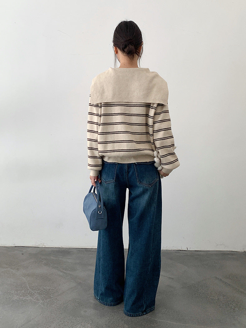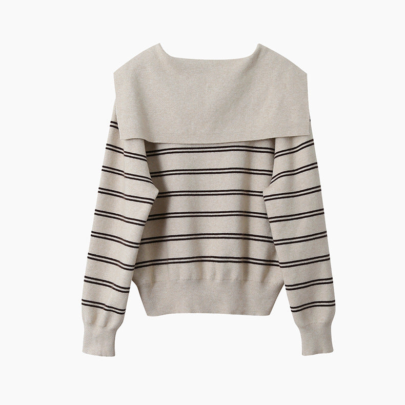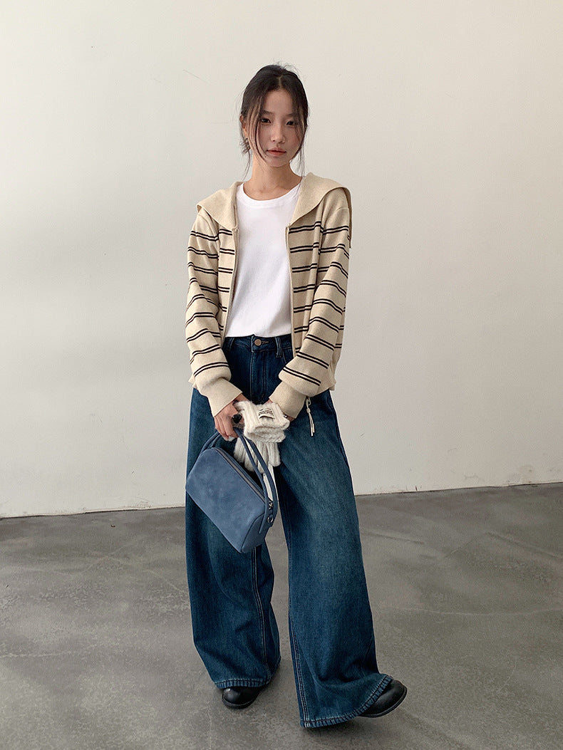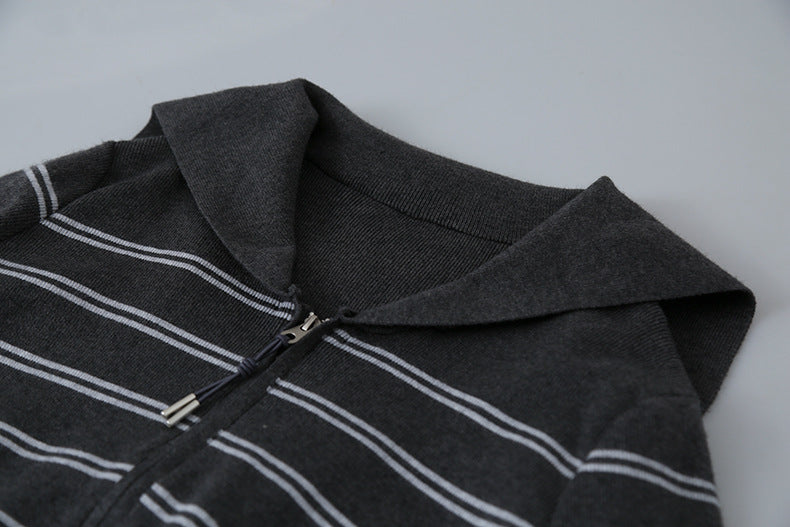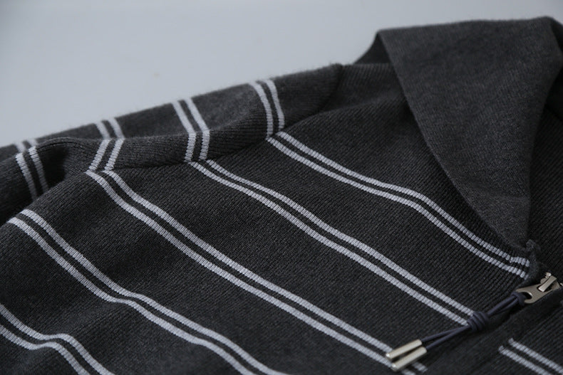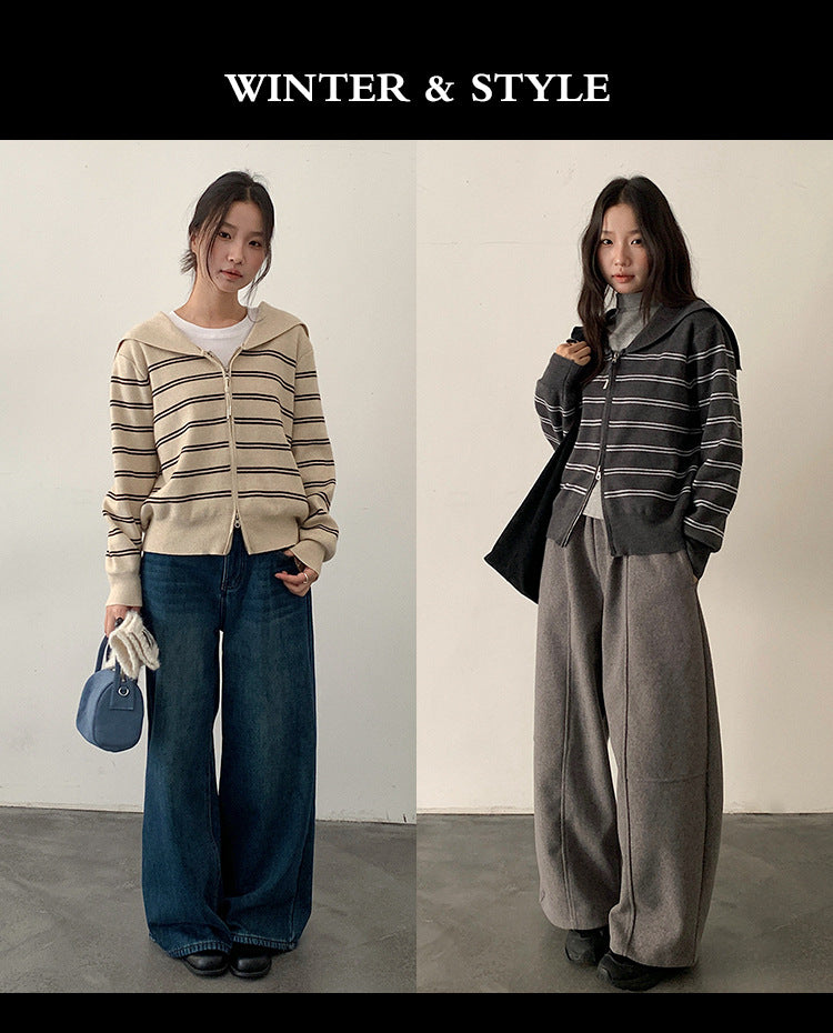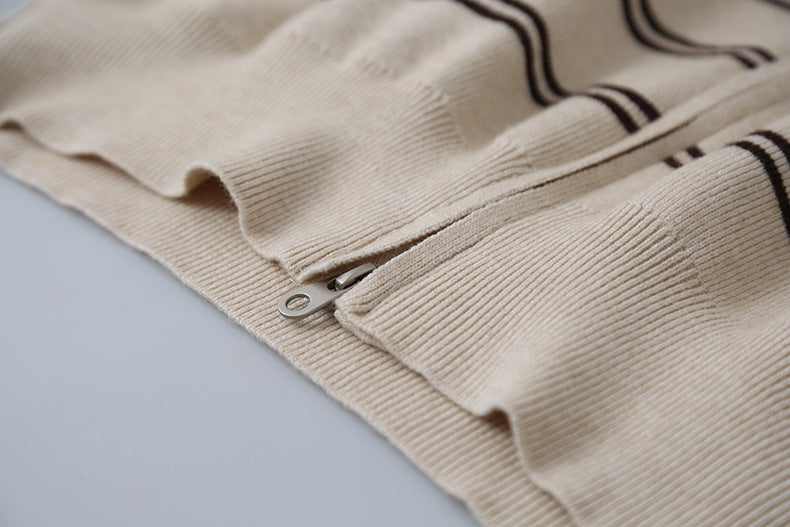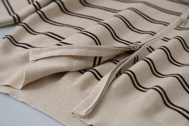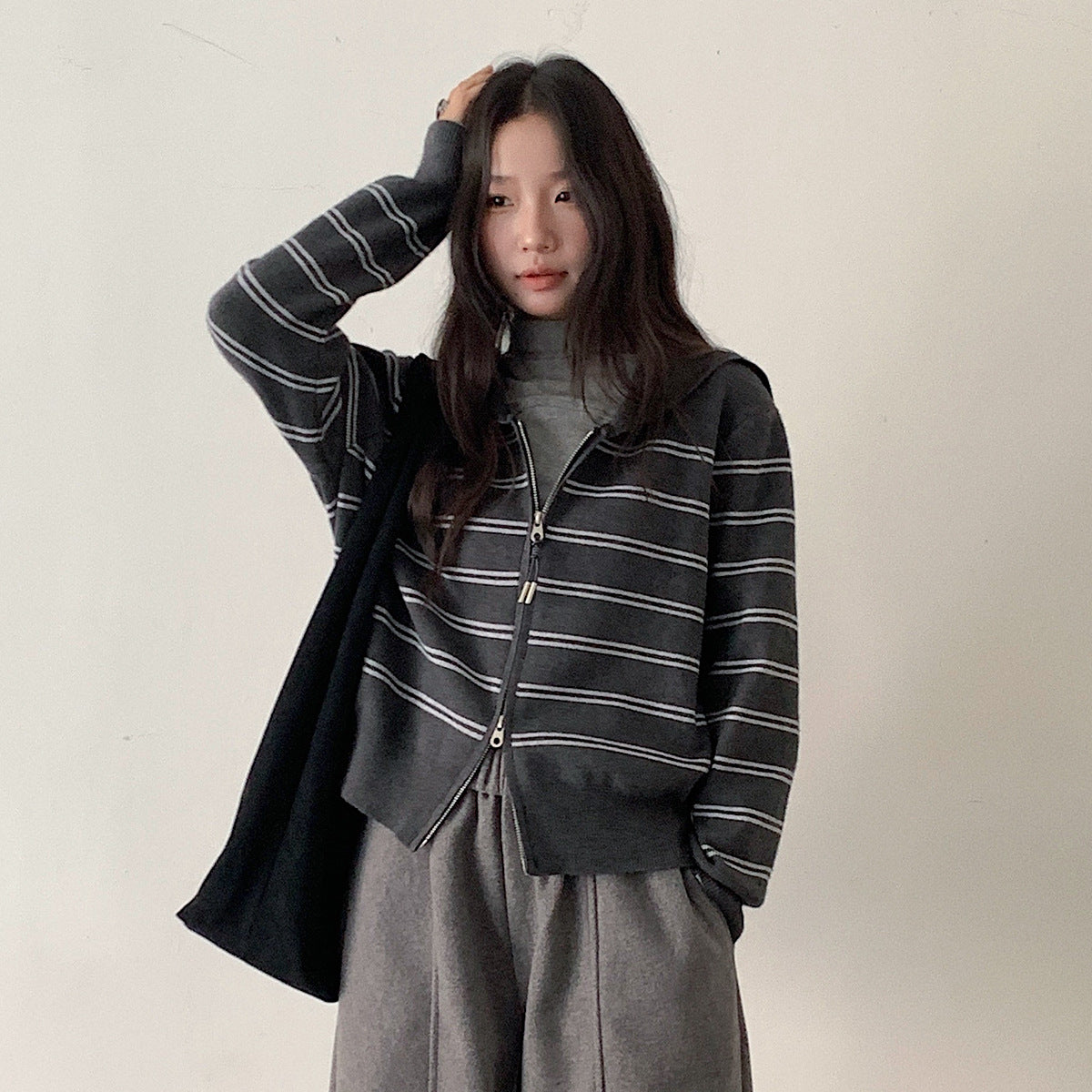 【LD11036】實拍雙頭拉鍊海軍領條紋針織開衫251202