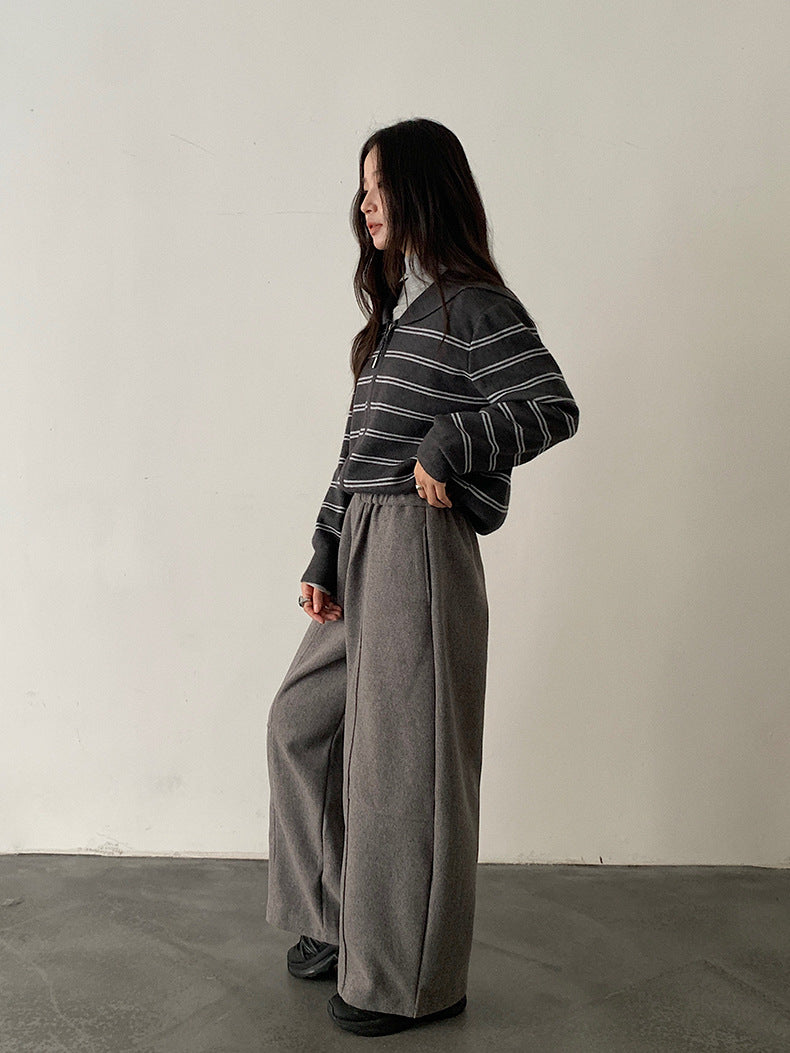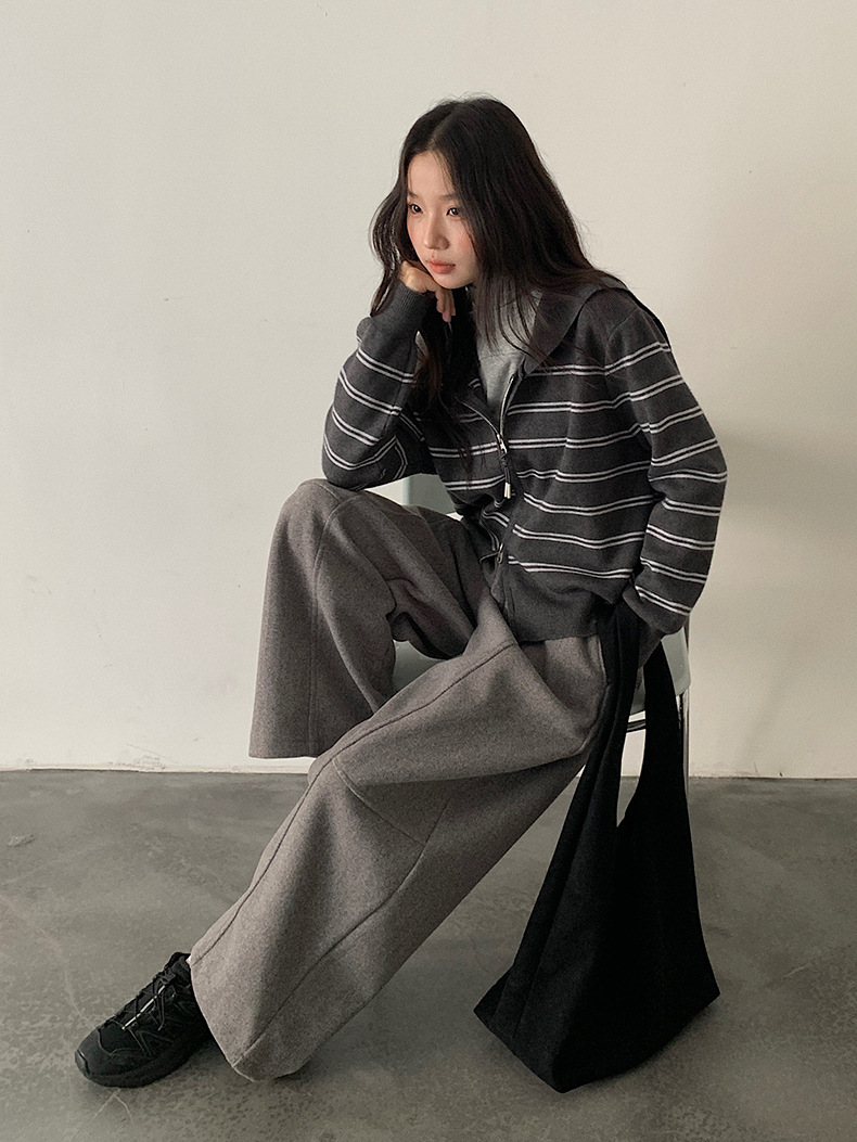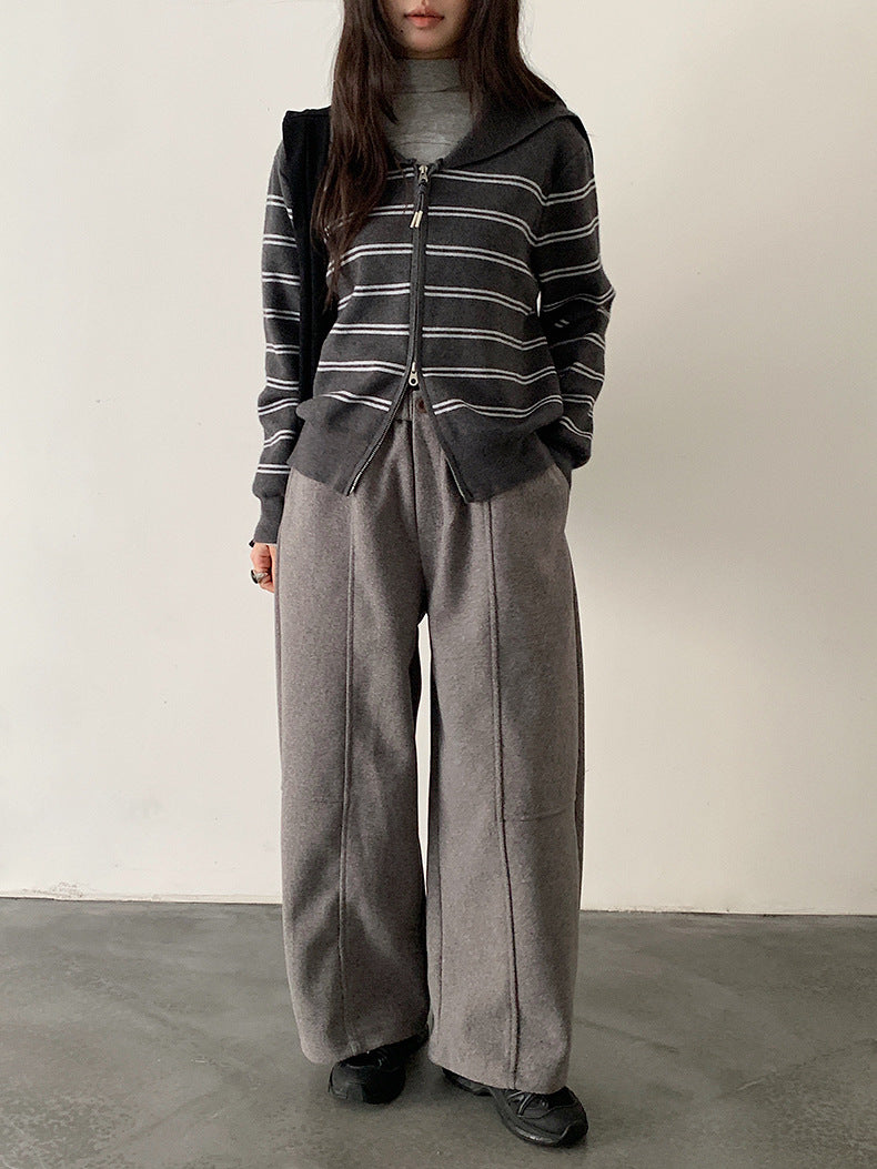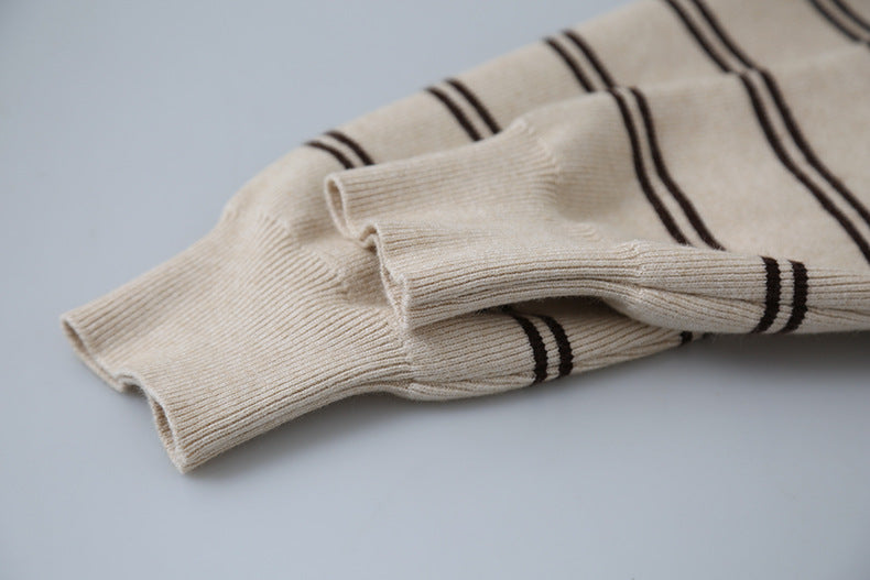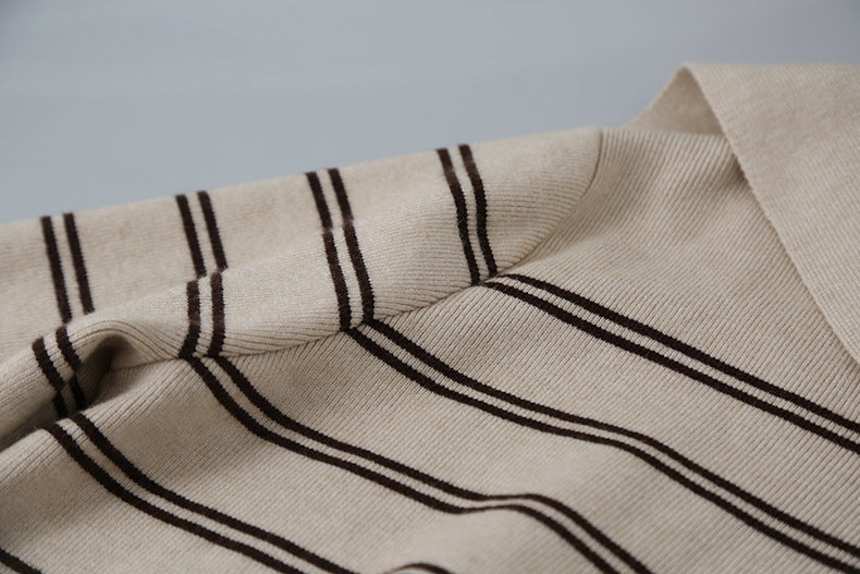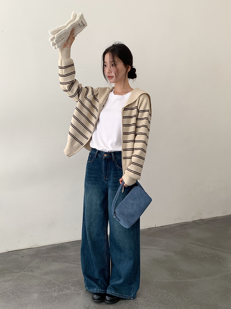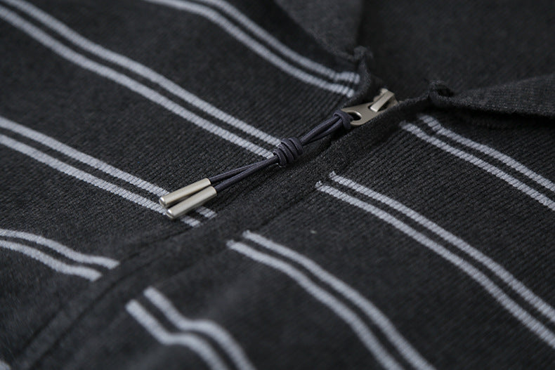 【LD11036】實拍雙頭拉鍊海軍領條紋針織開衫251202