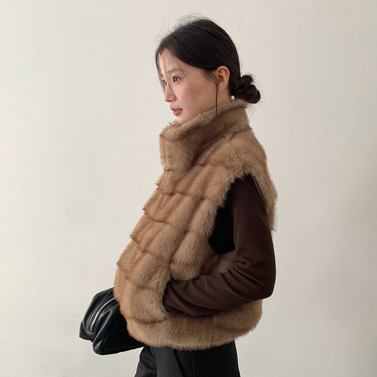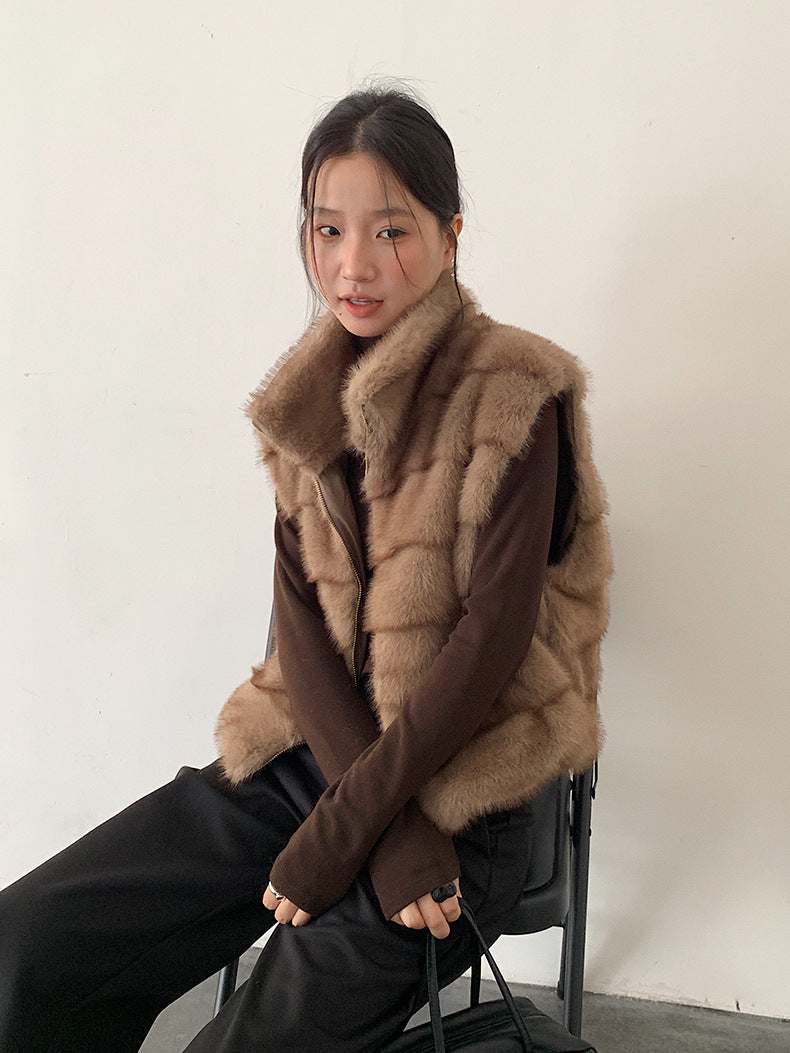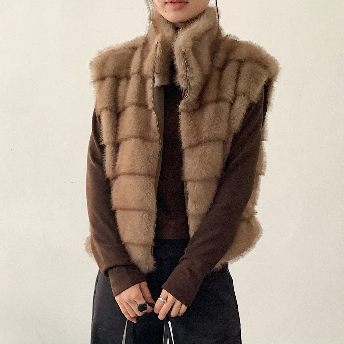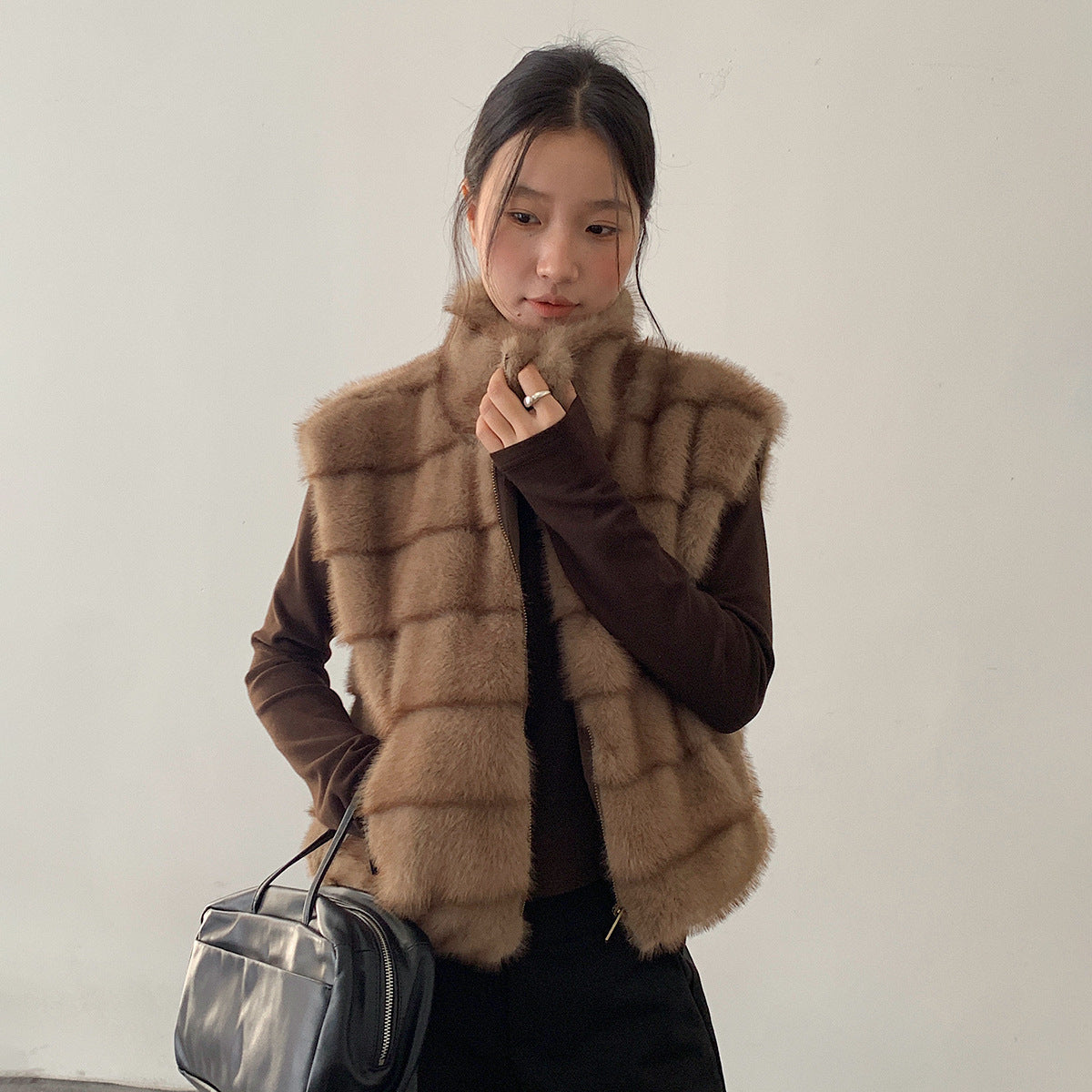 【LD11042】實拍皮毛一體立領拉鍊背心外套251202