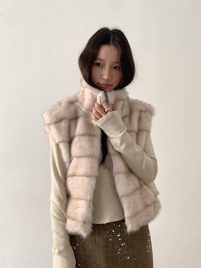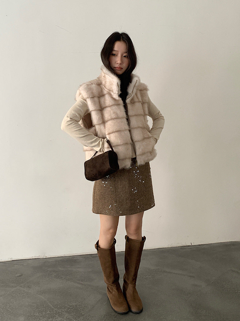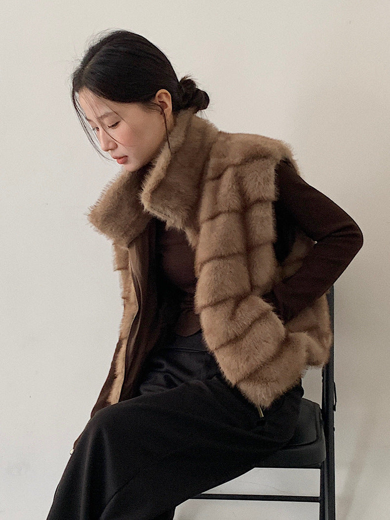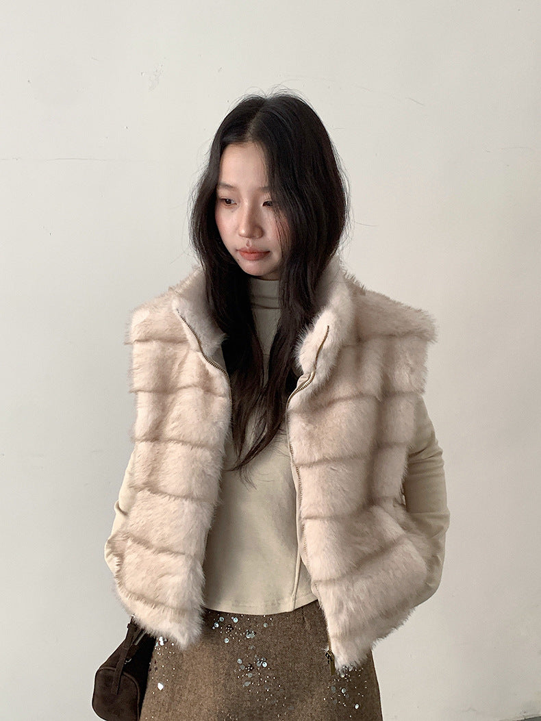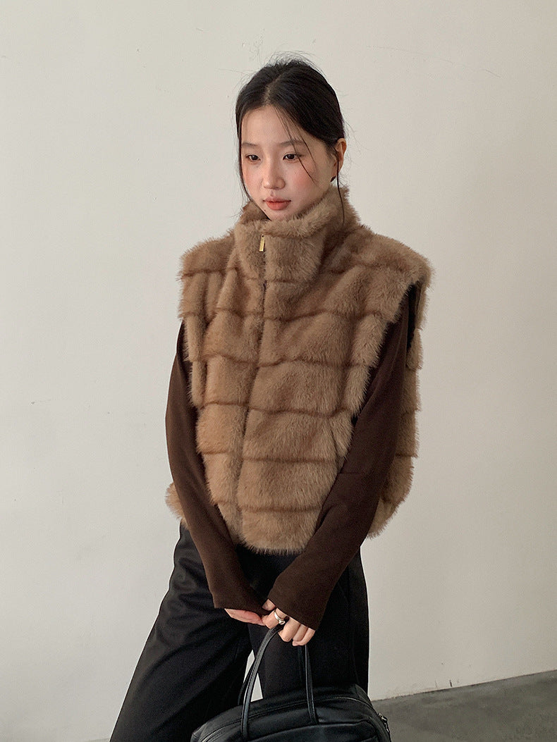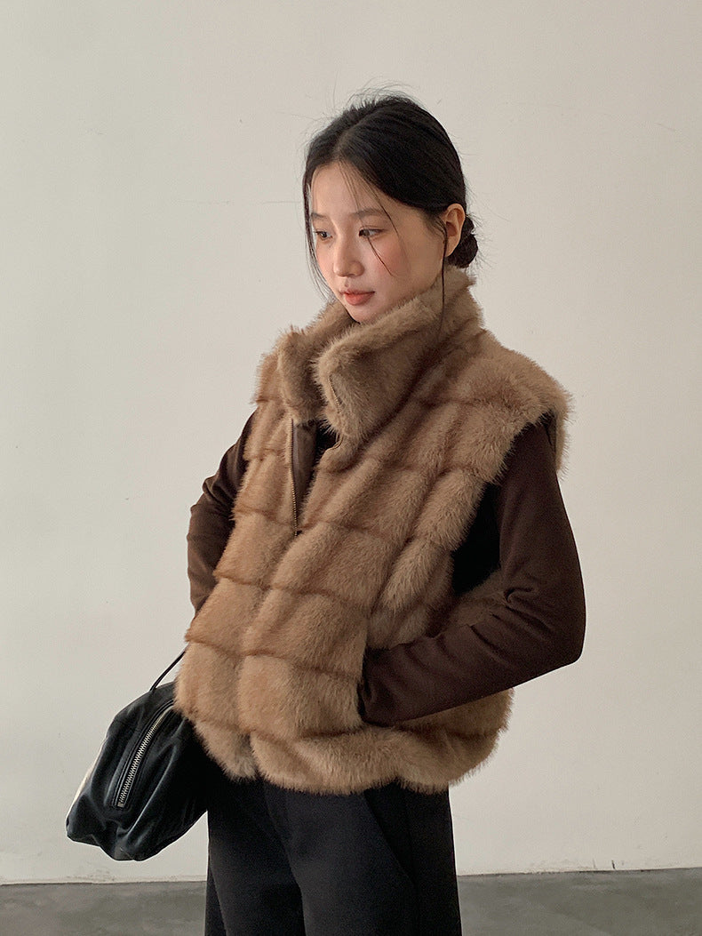 【LD11042】實拍皮毛一體立領拉鍊背心外套251202