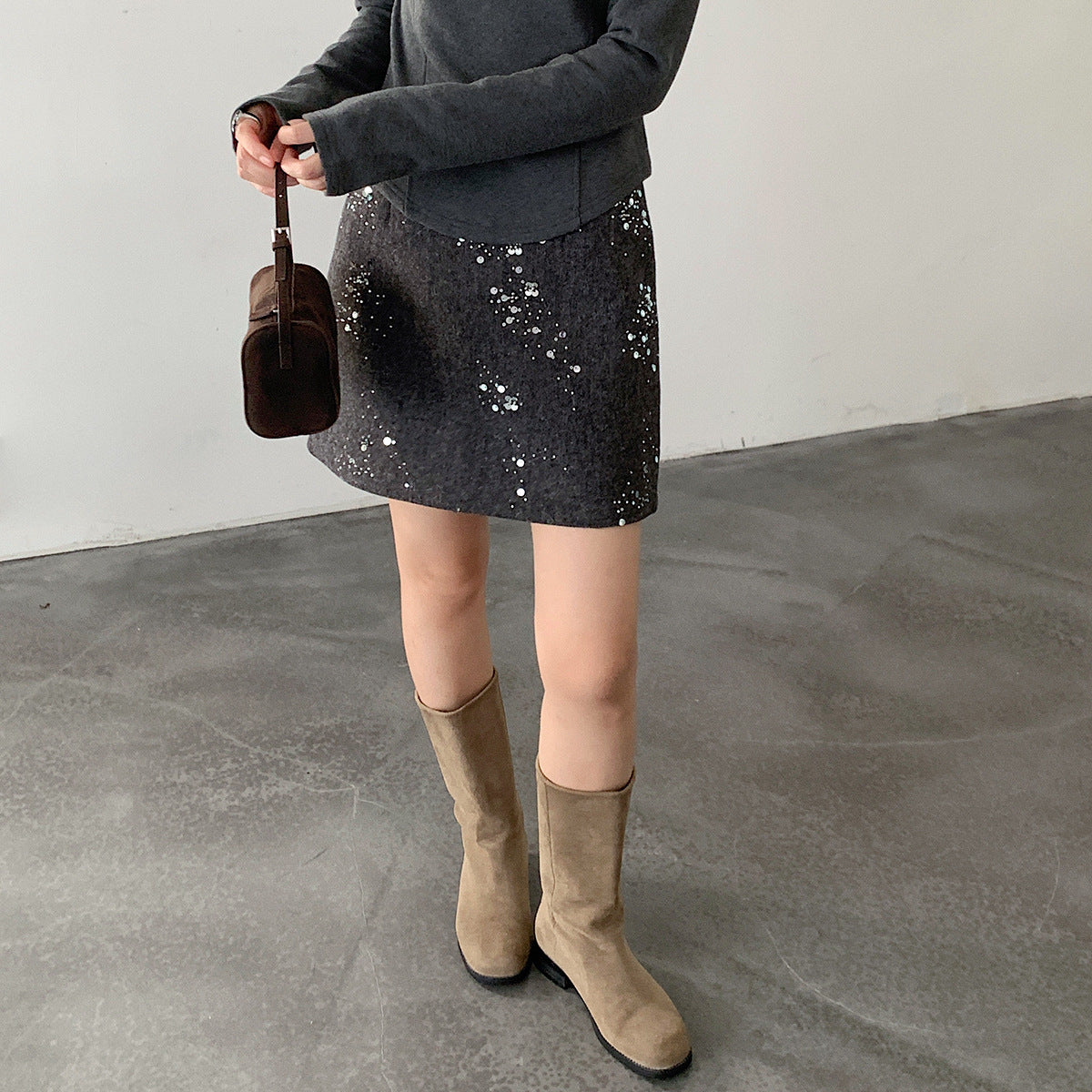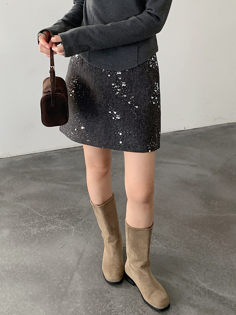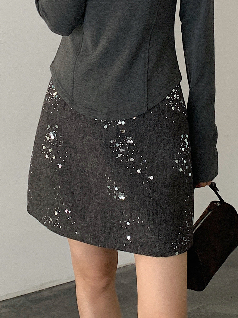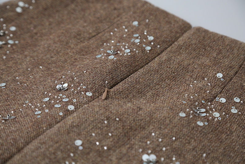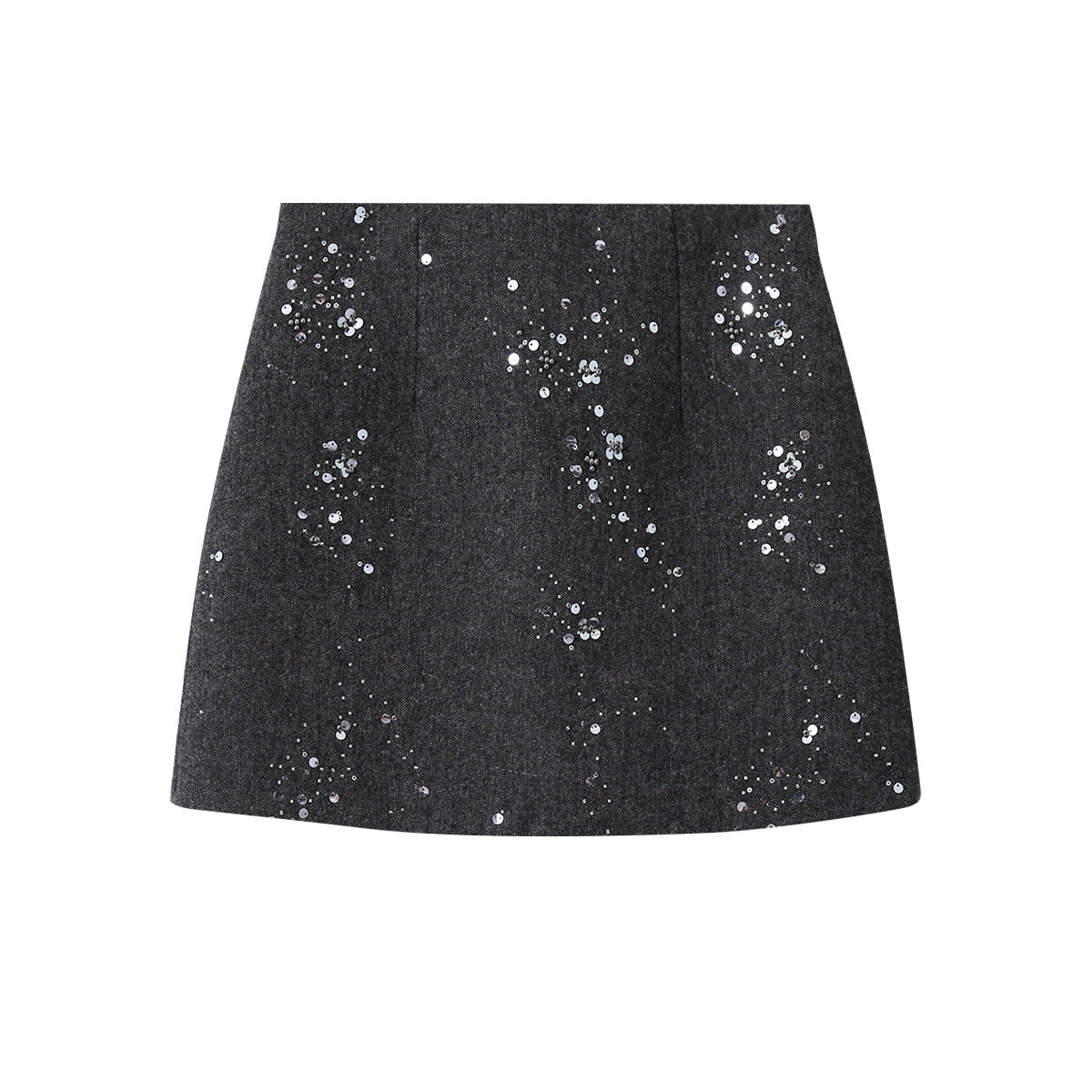 【LD11045】實拍S~XL法式重工時髦毛呢亮片短裙251202