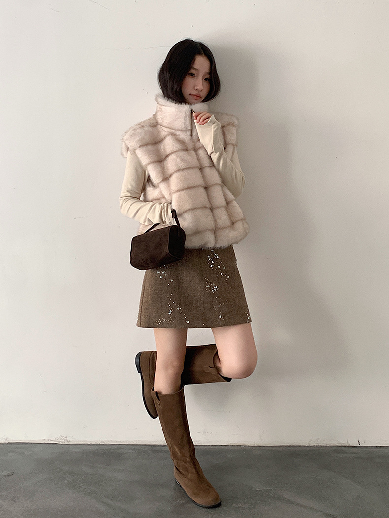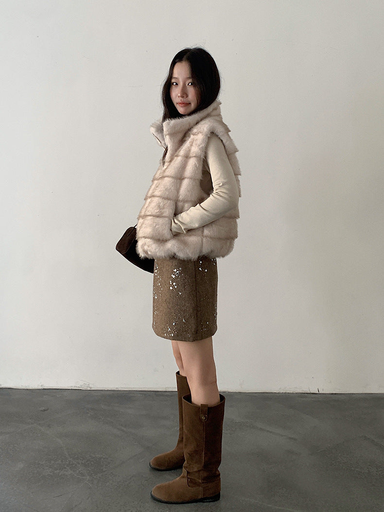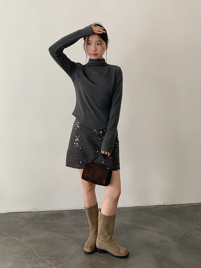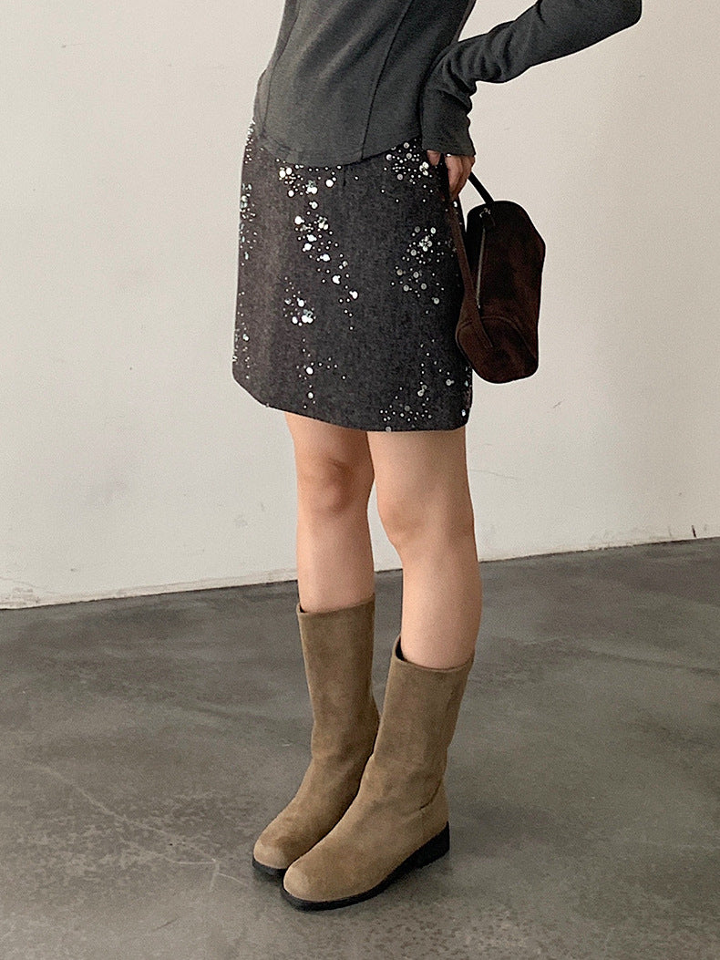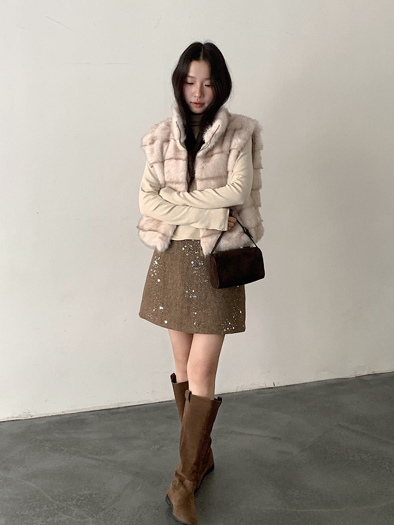 【LD11045】實拍S~XL法式重工時髦毛呢亮片短裙251202