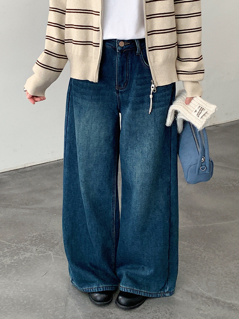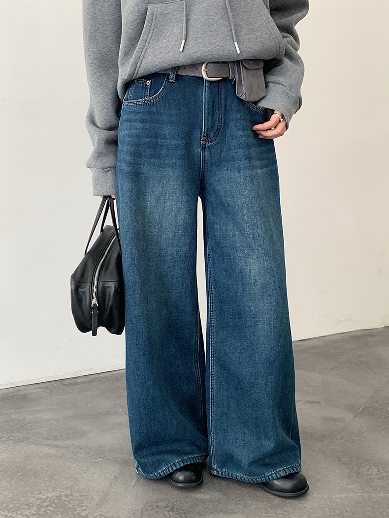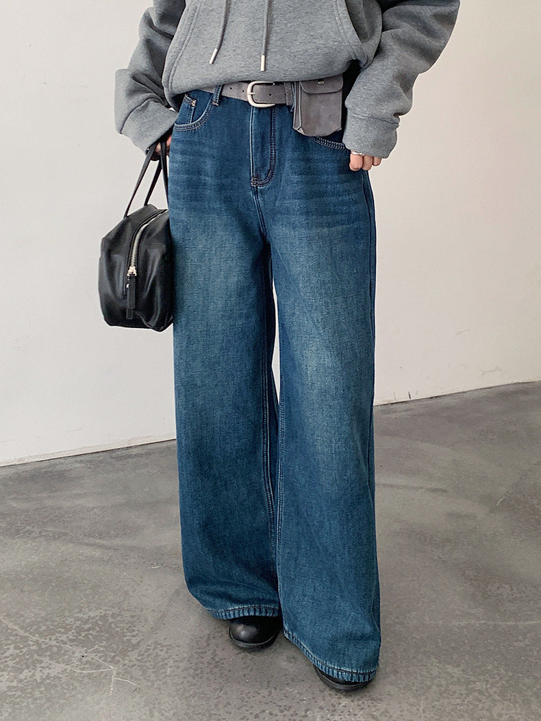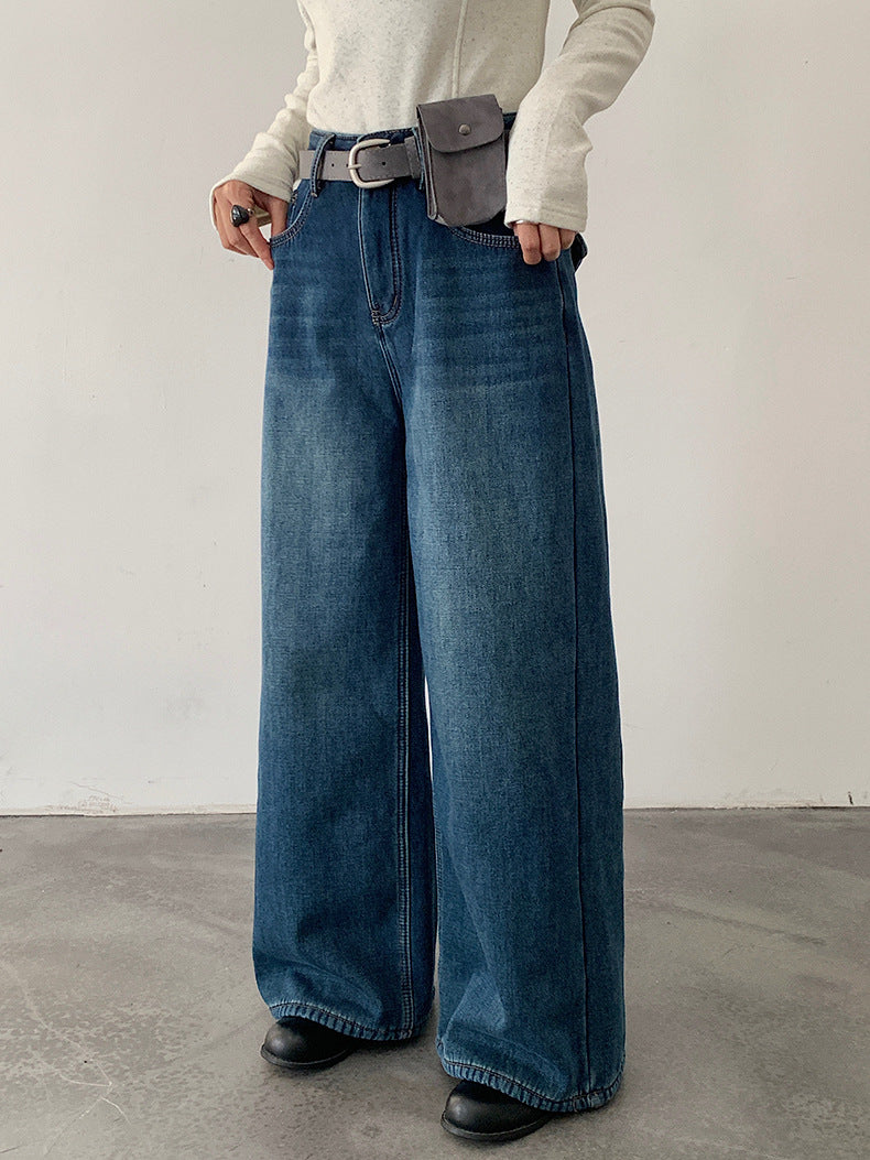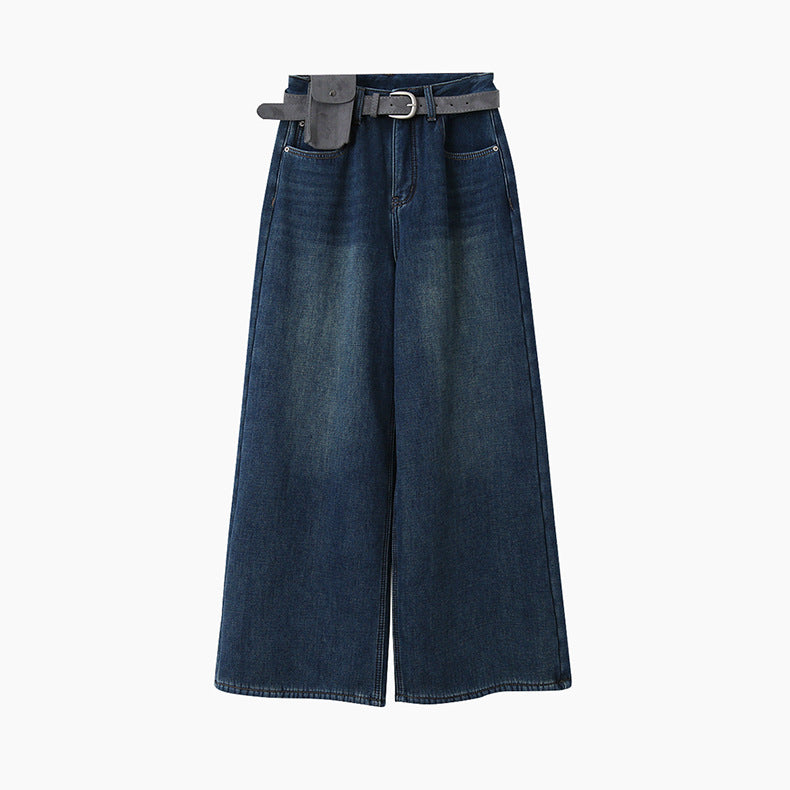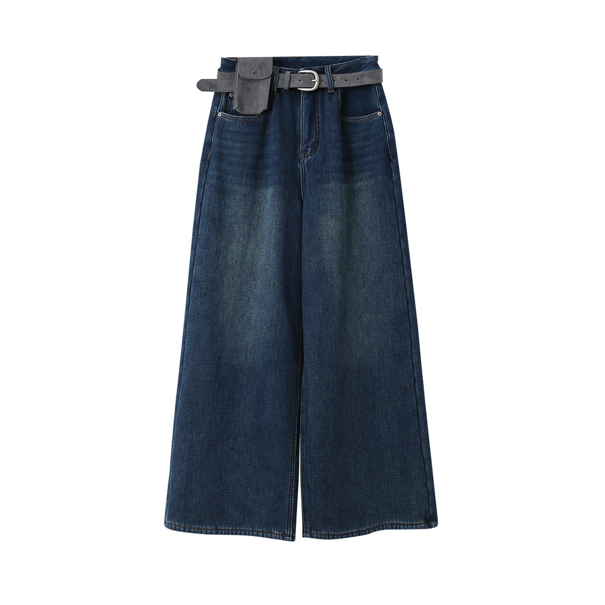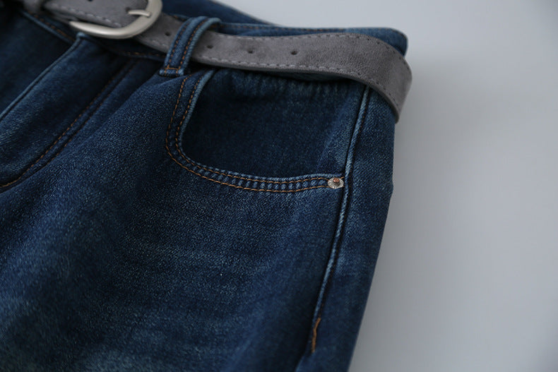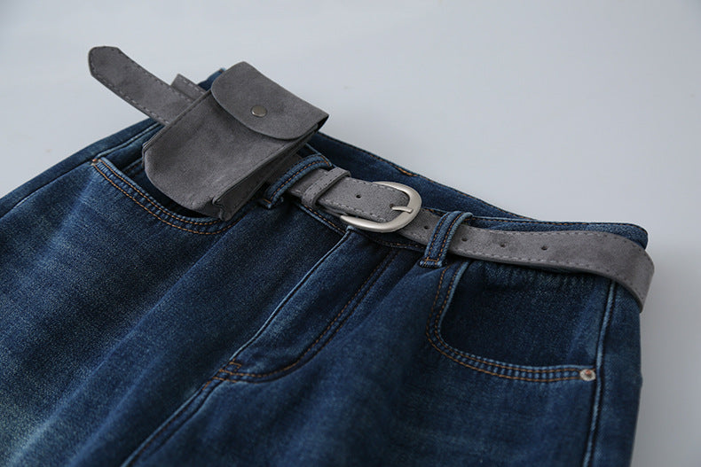 【LD11049】實拍S~XL美式加絨加厚高腰牛仔褲+皮帶腰包251202