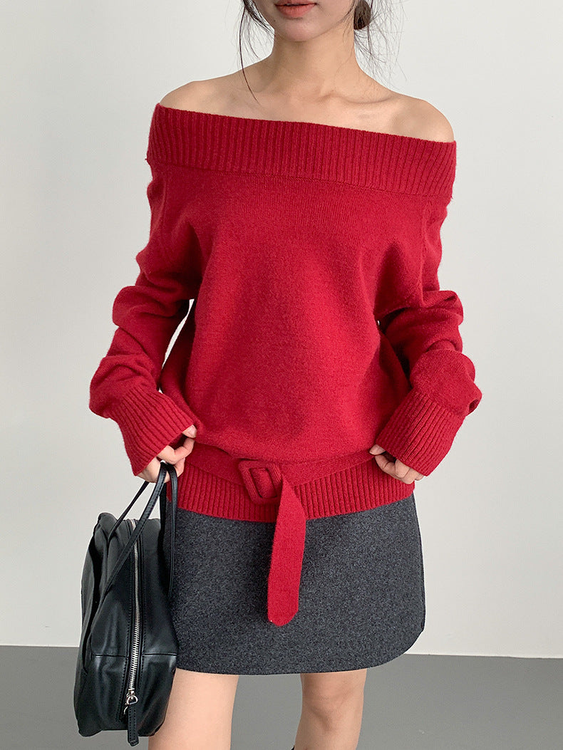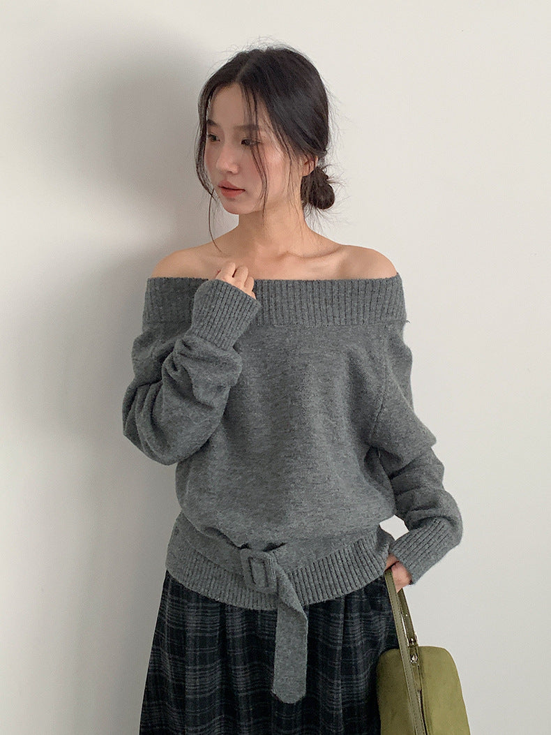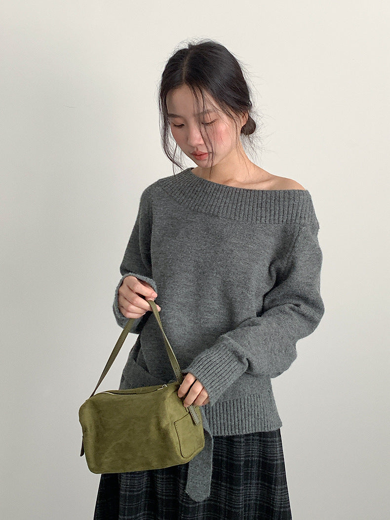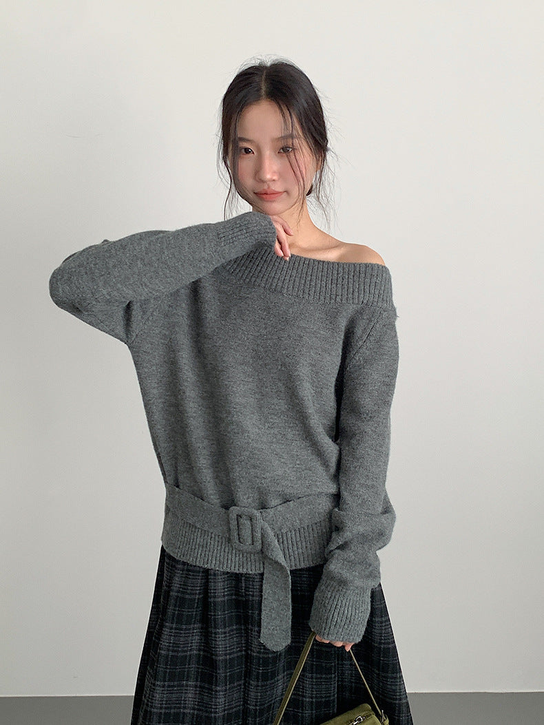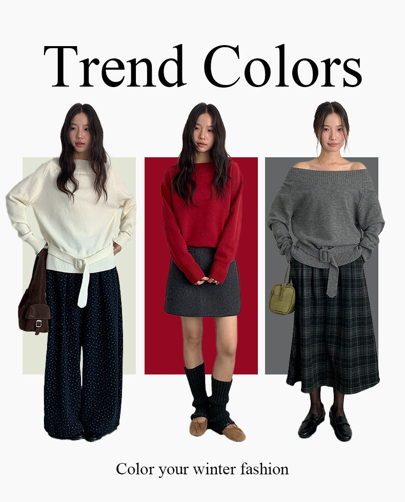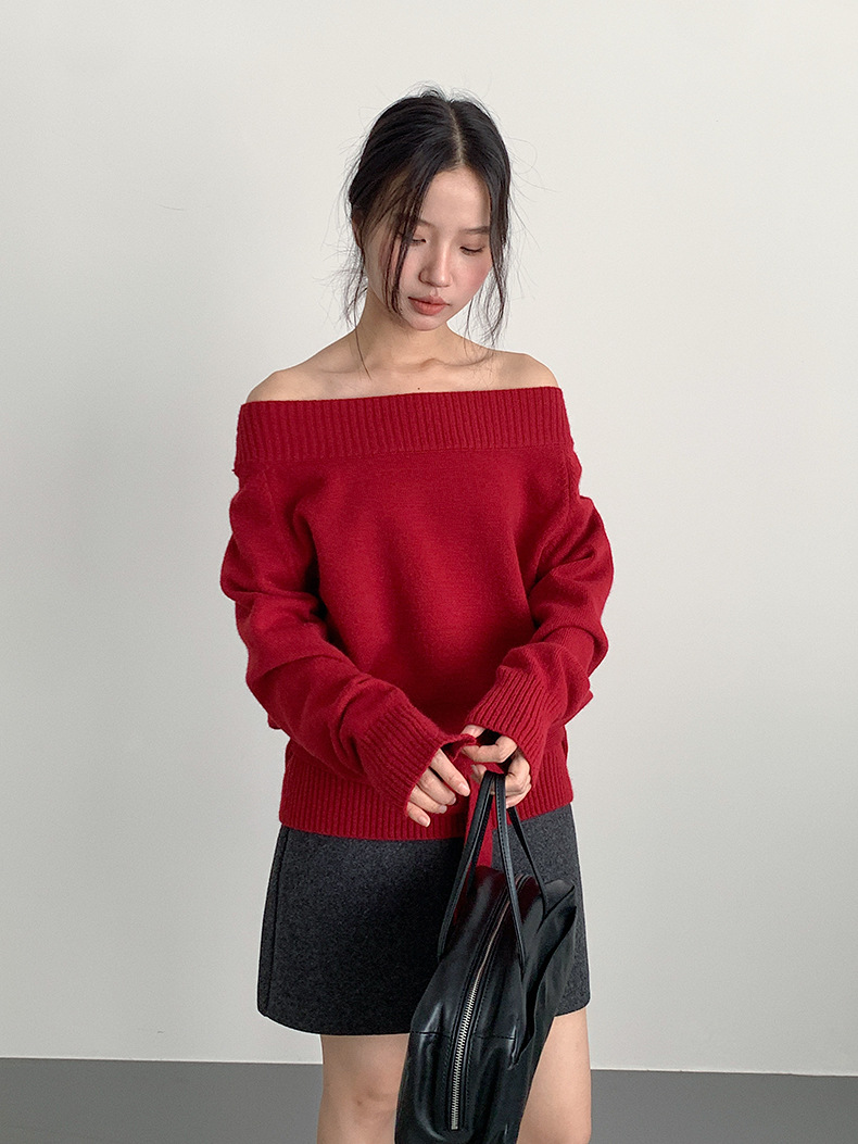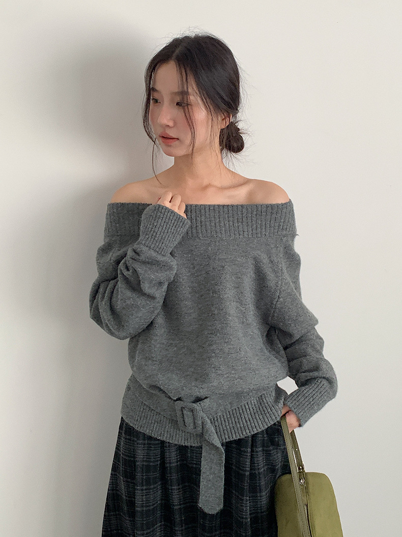【LD11062】實拍慵懶高級感北極融針織毛衣(可拉一字肩)251209