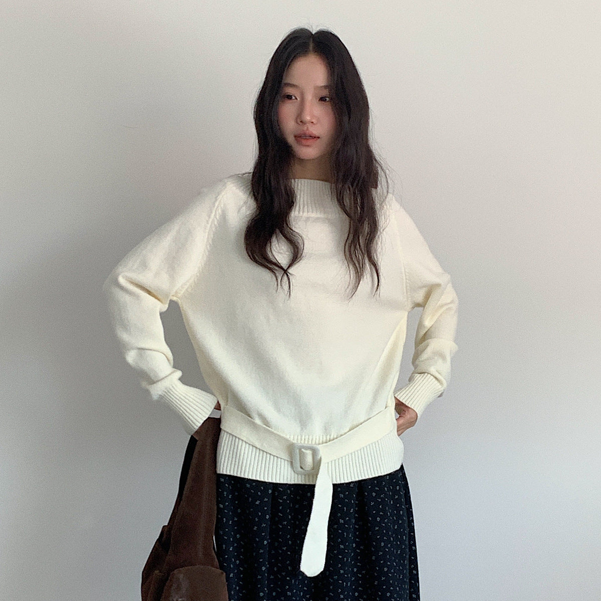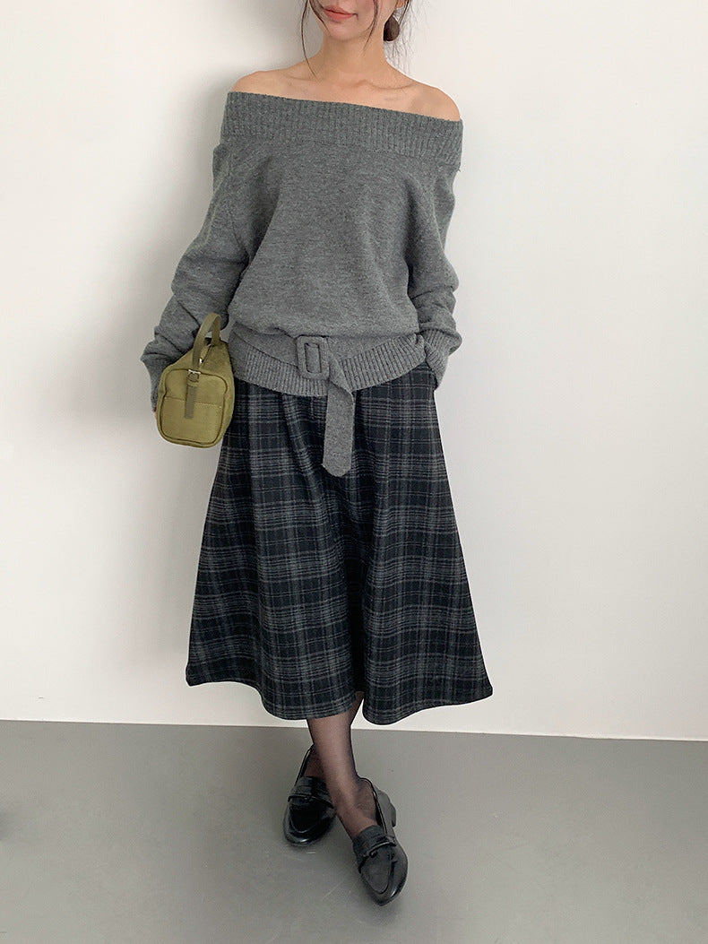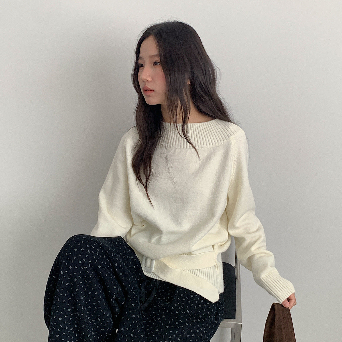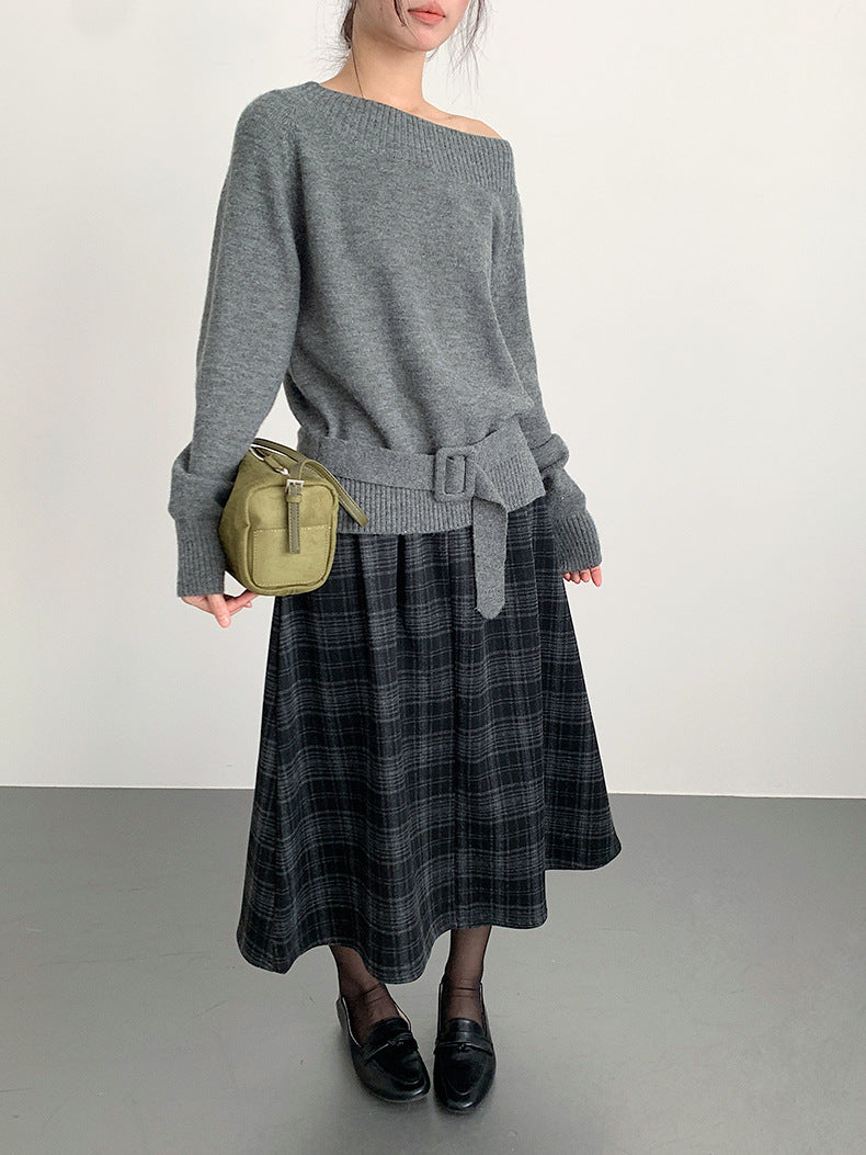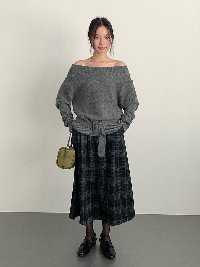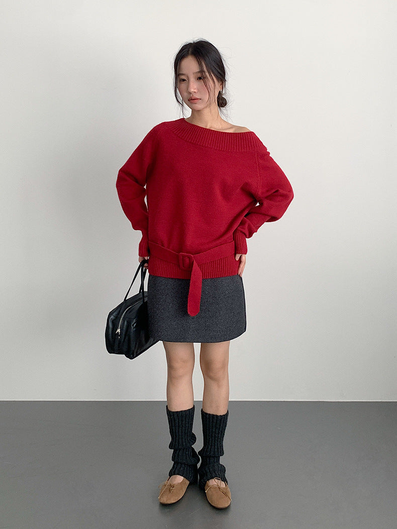 【LD11062】實拍慵懶高級感北極融針織毛衣(可拉一字肩)251209