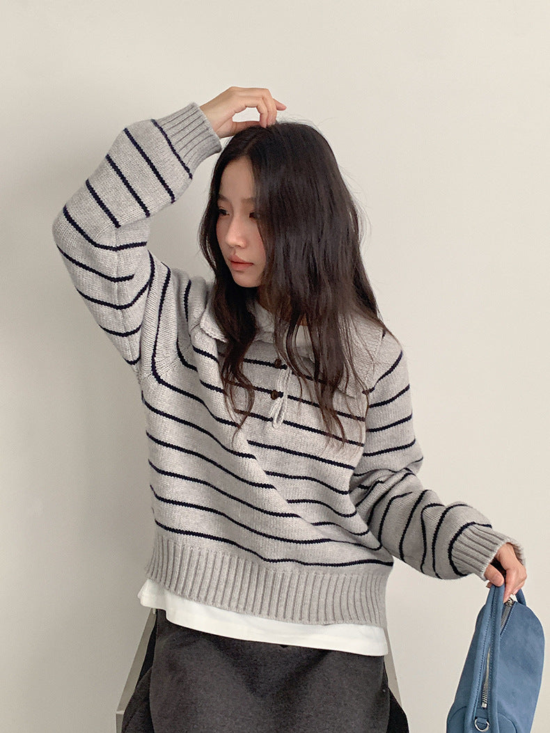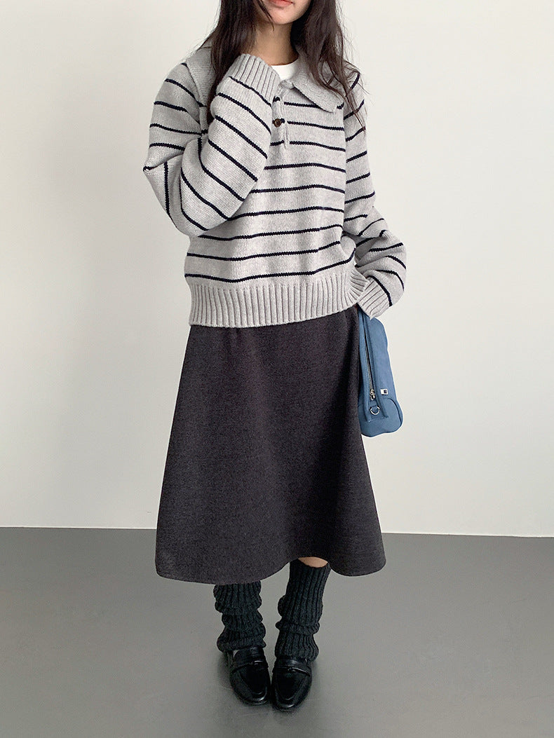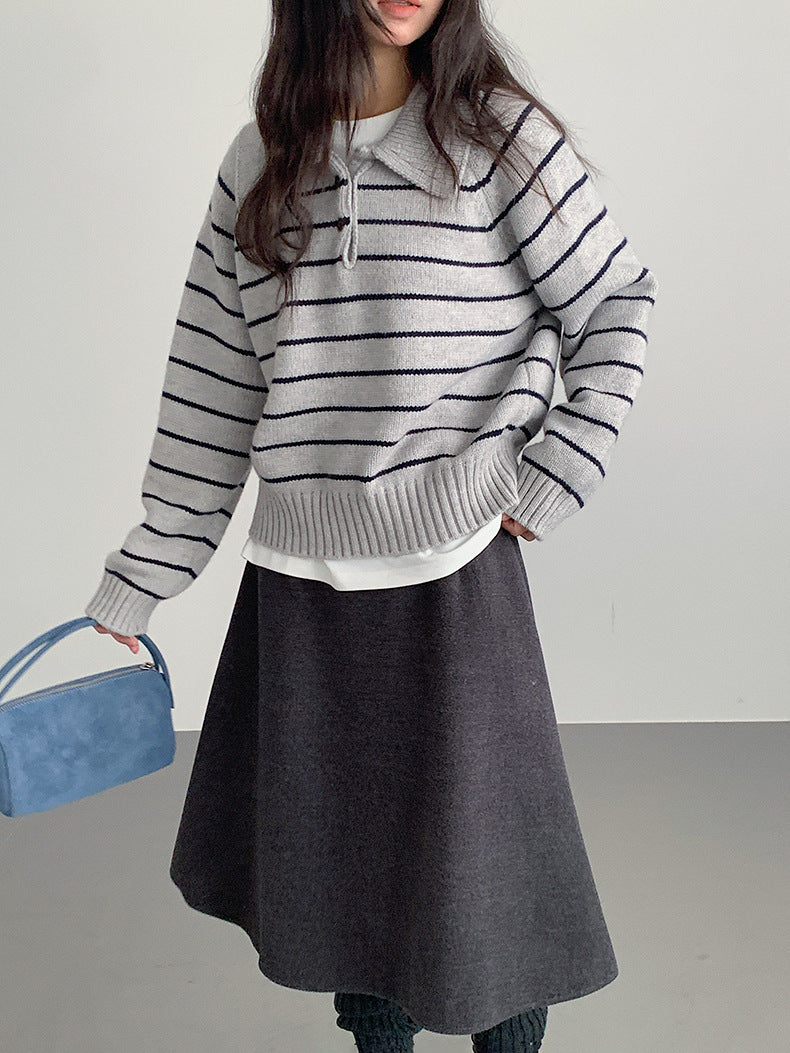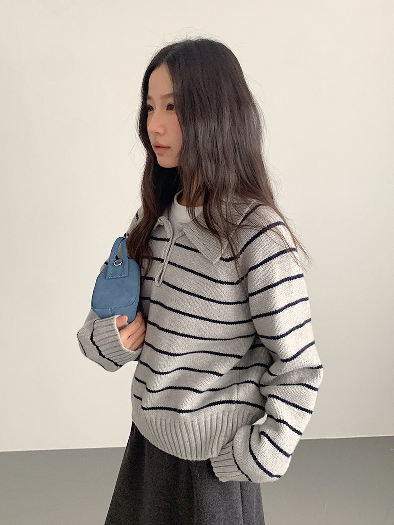 【LD11063】實拍復古條紋加厚棉羊絨針織毛衣251209