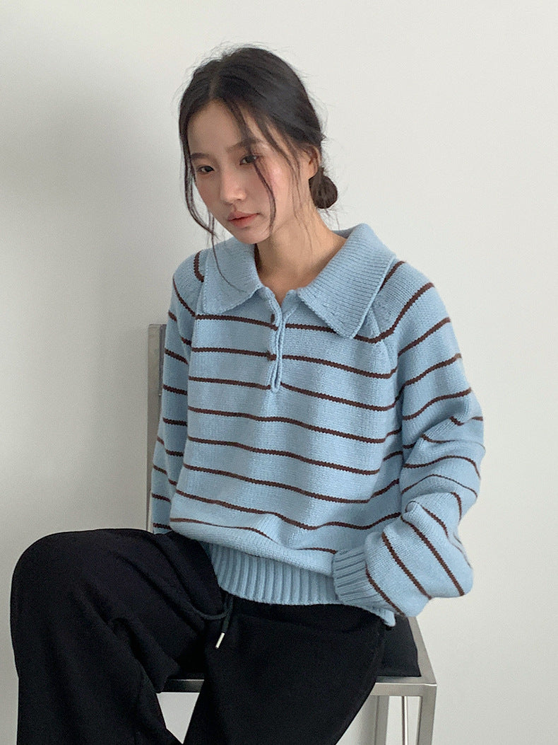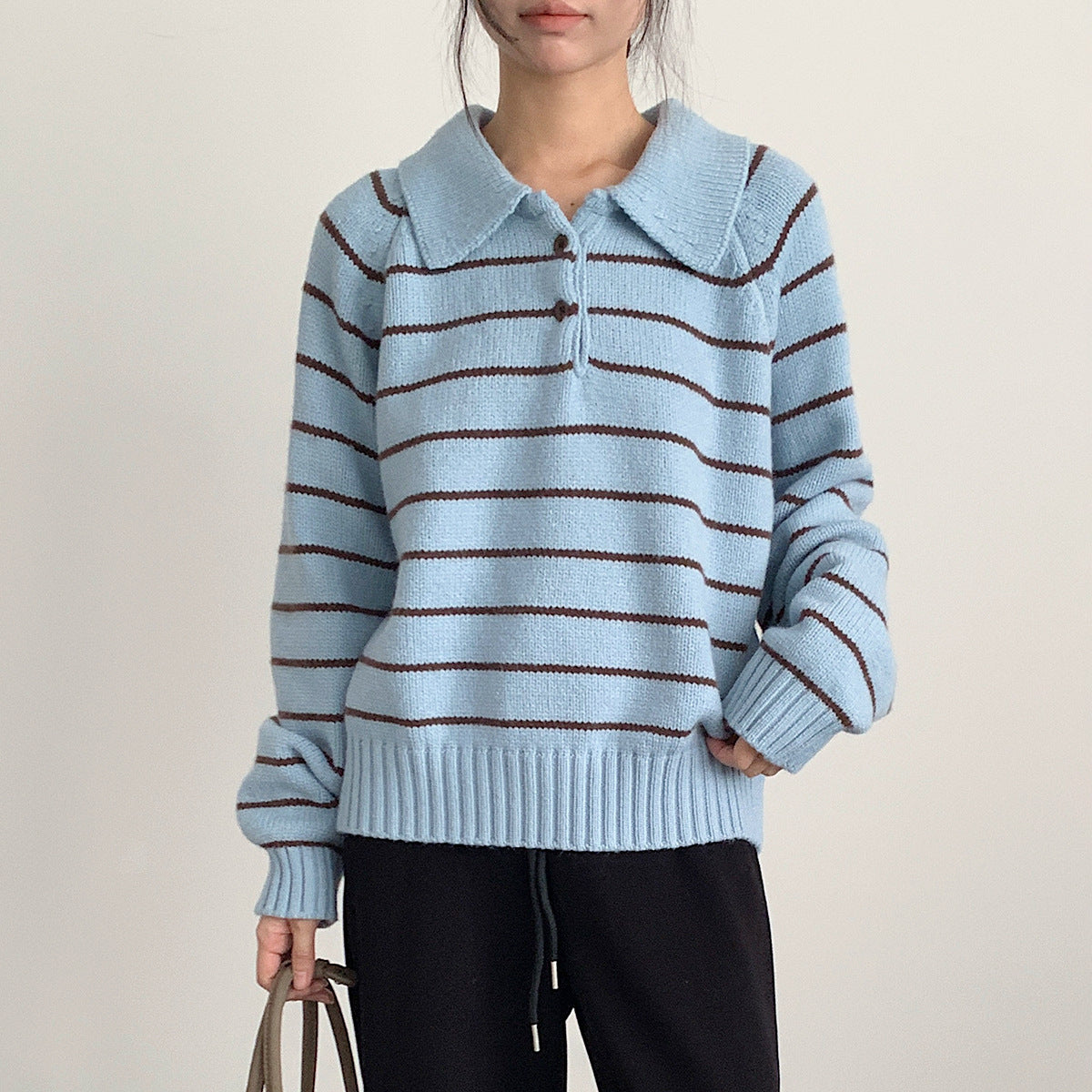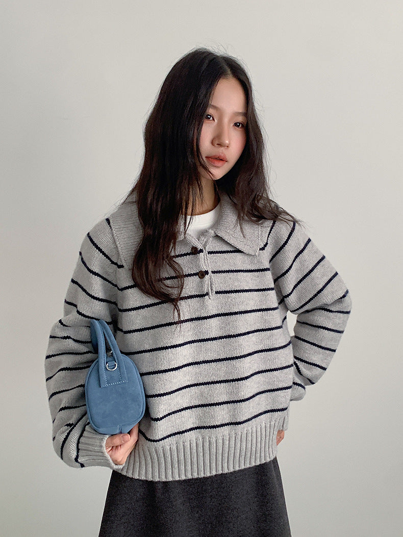 【LD11063】實拍復古條紋加厚棉羊絨針織毛衣251209
