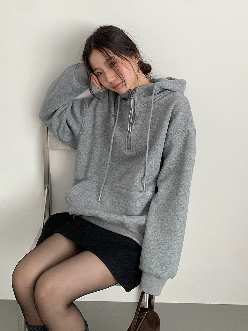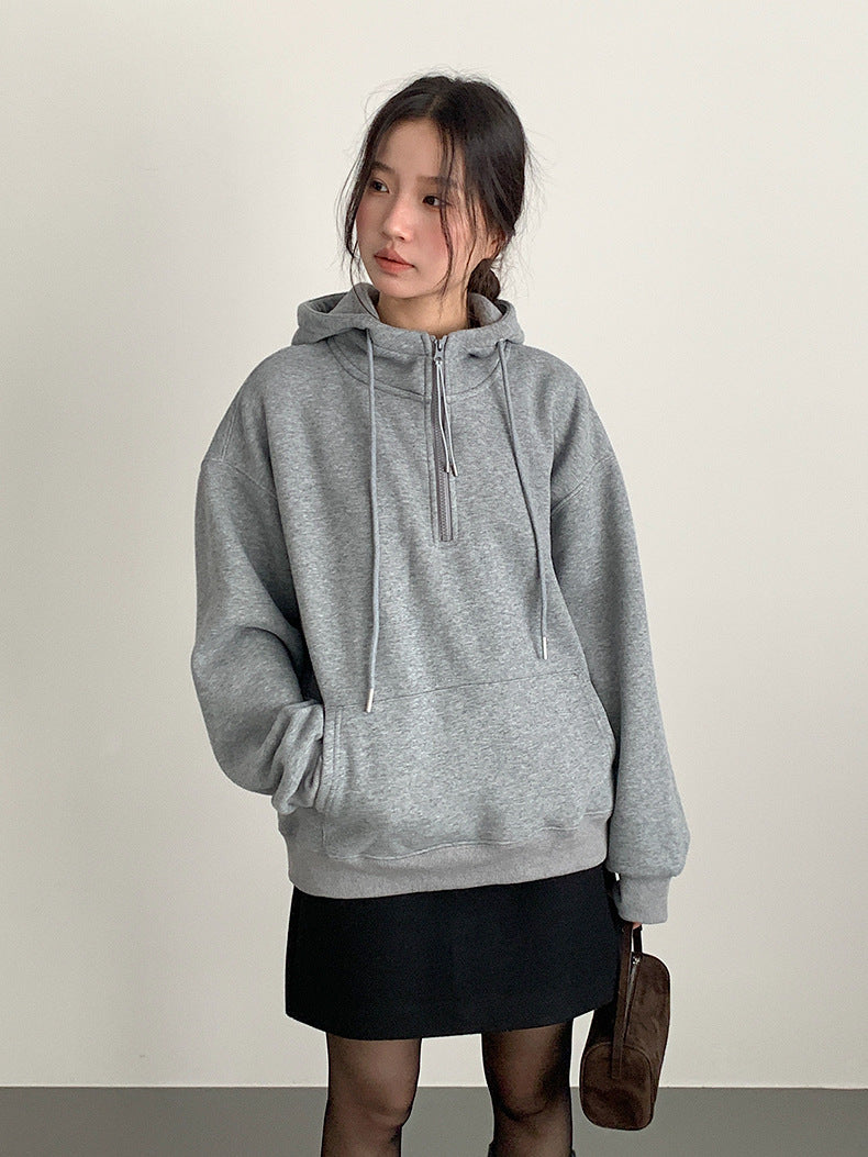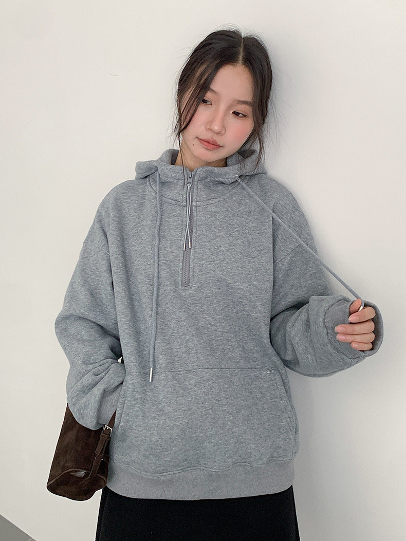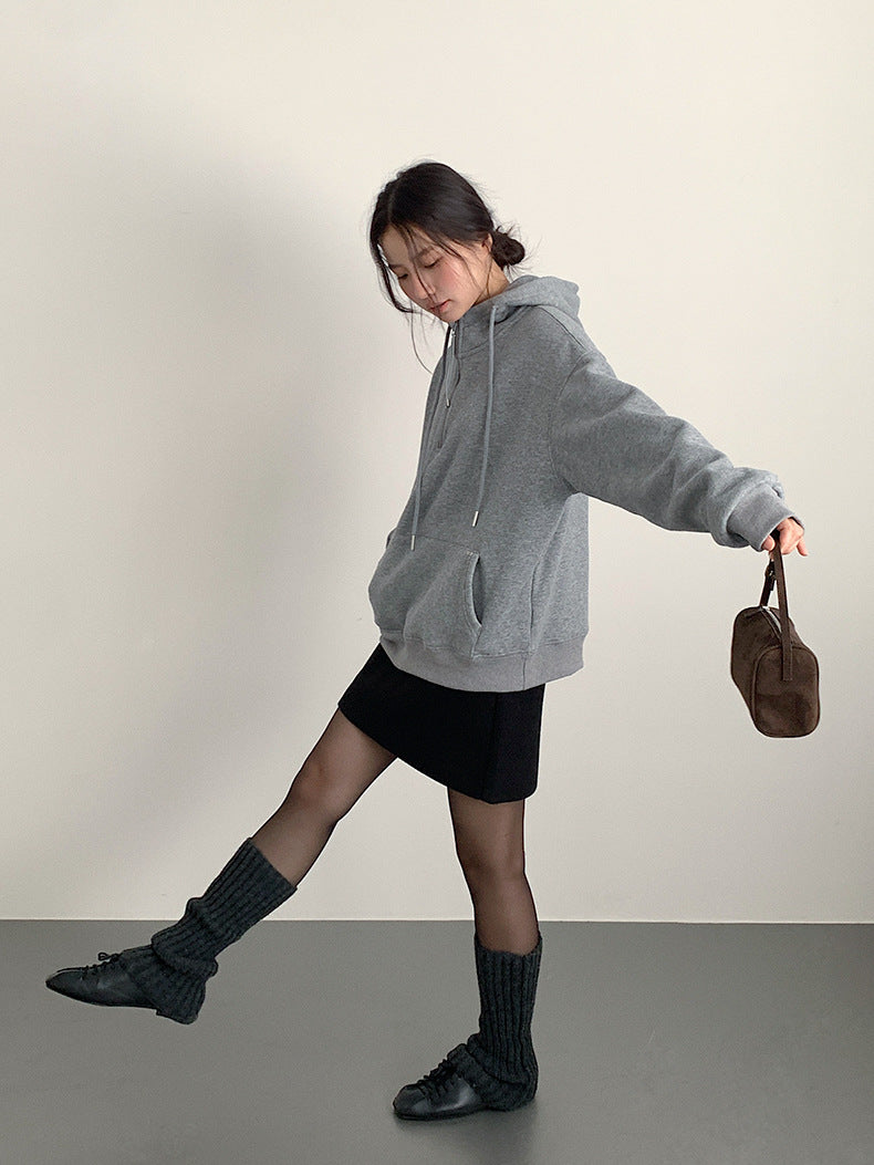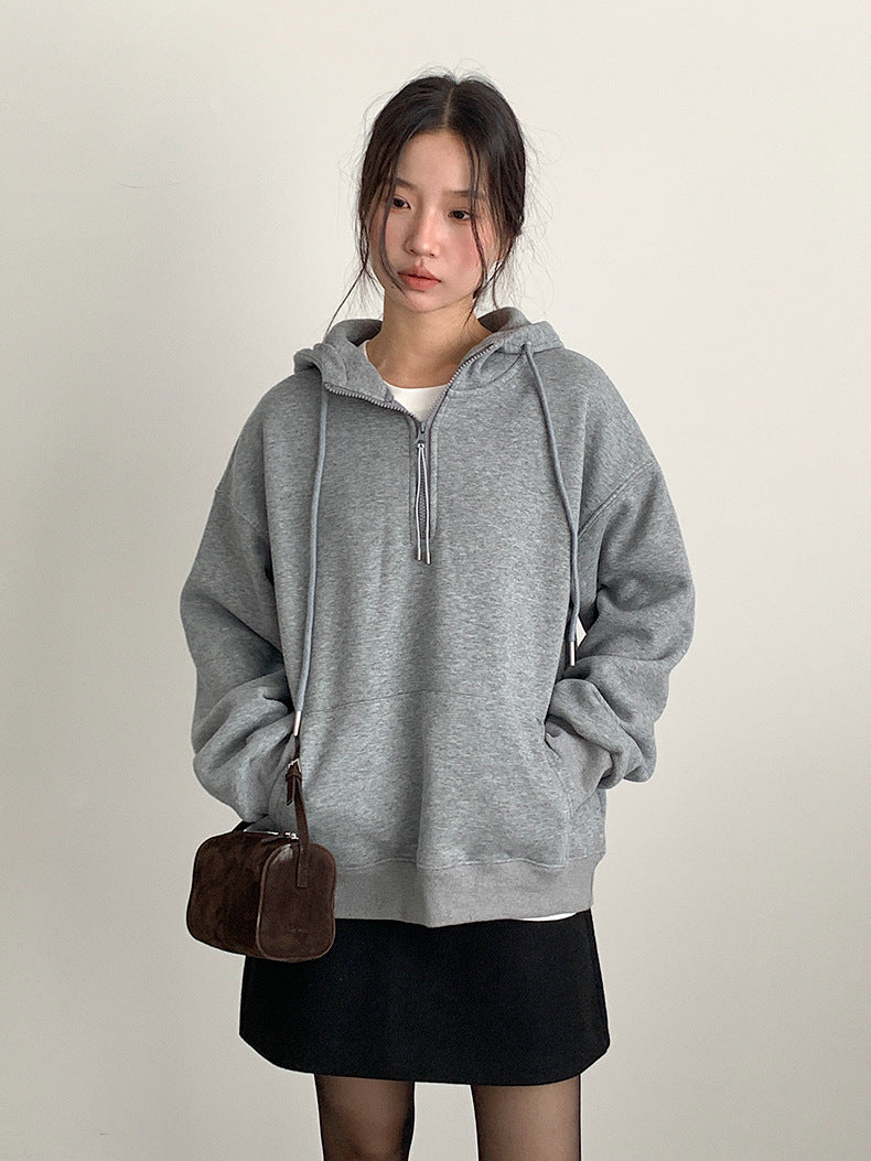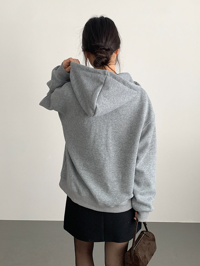 【LD11064】實拍慵懶灰色加絨加厚連帽寬鬆衞衣251209