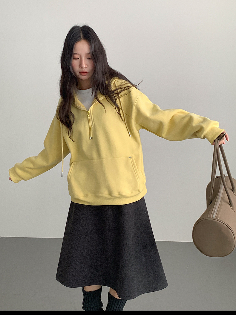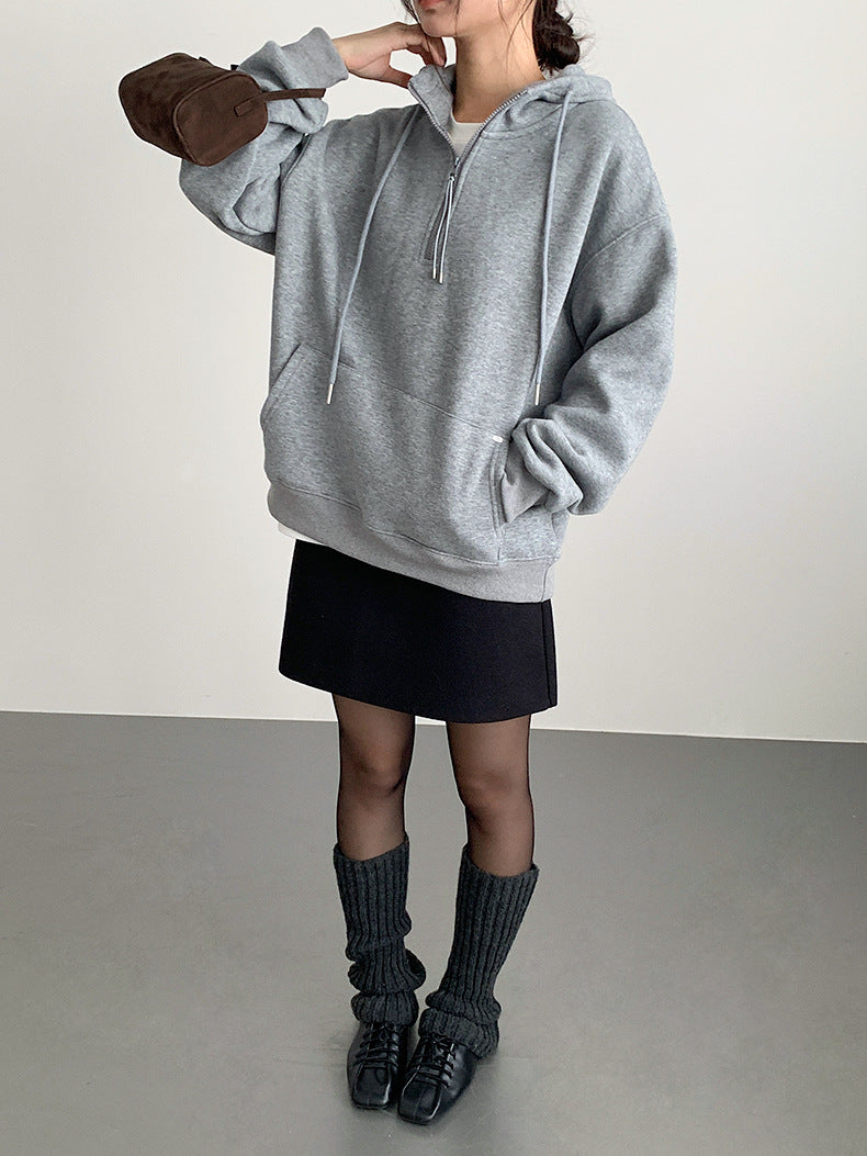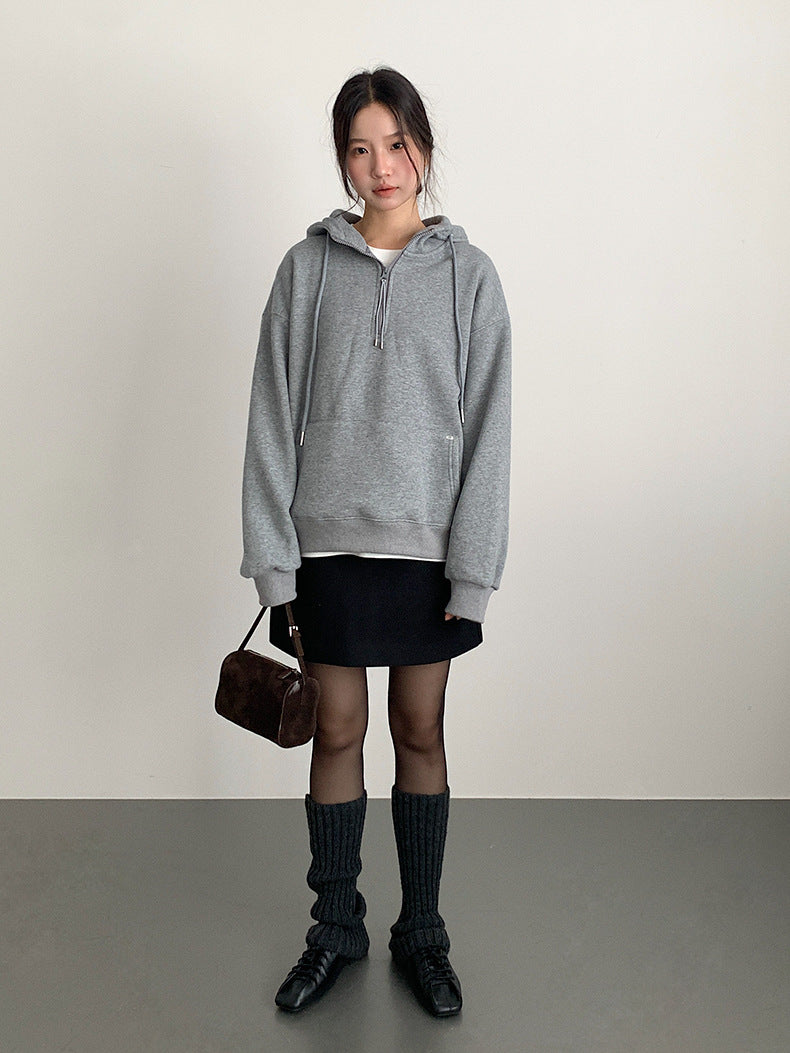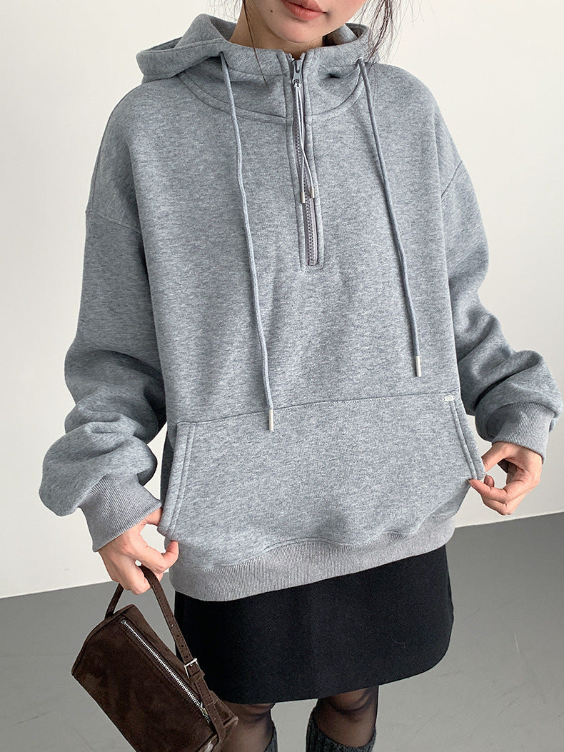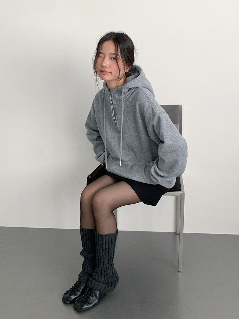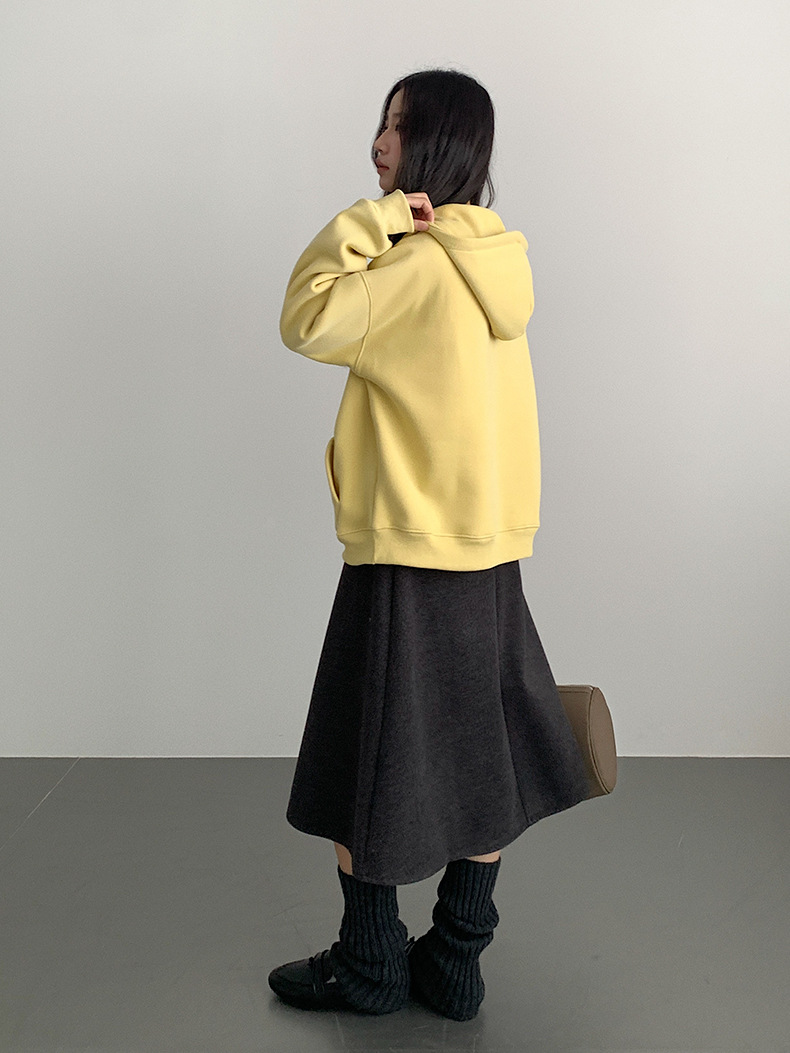 【LD11064】實拍慵懶灰色加絨加厚連帽寬鬆衞衣251209