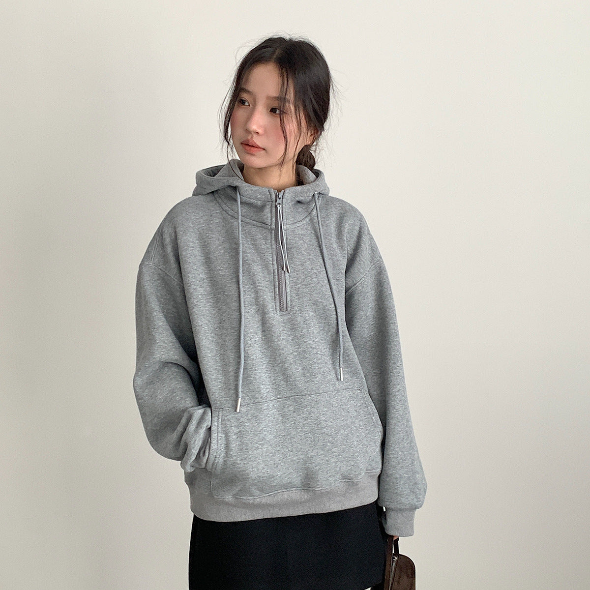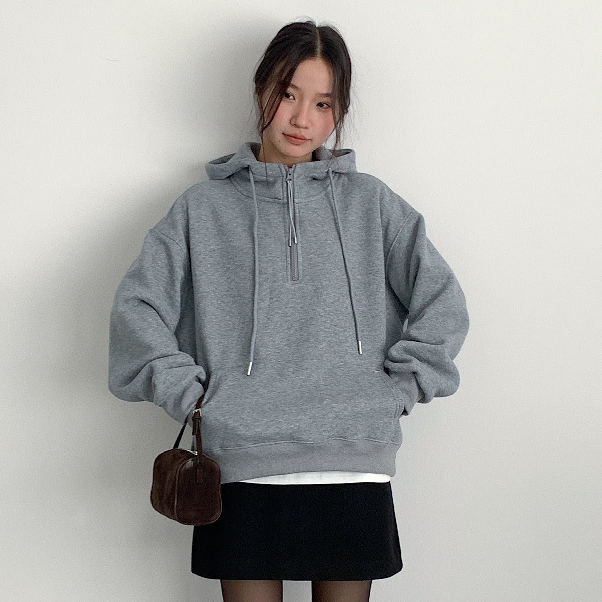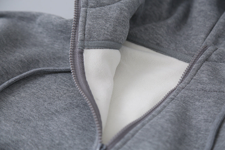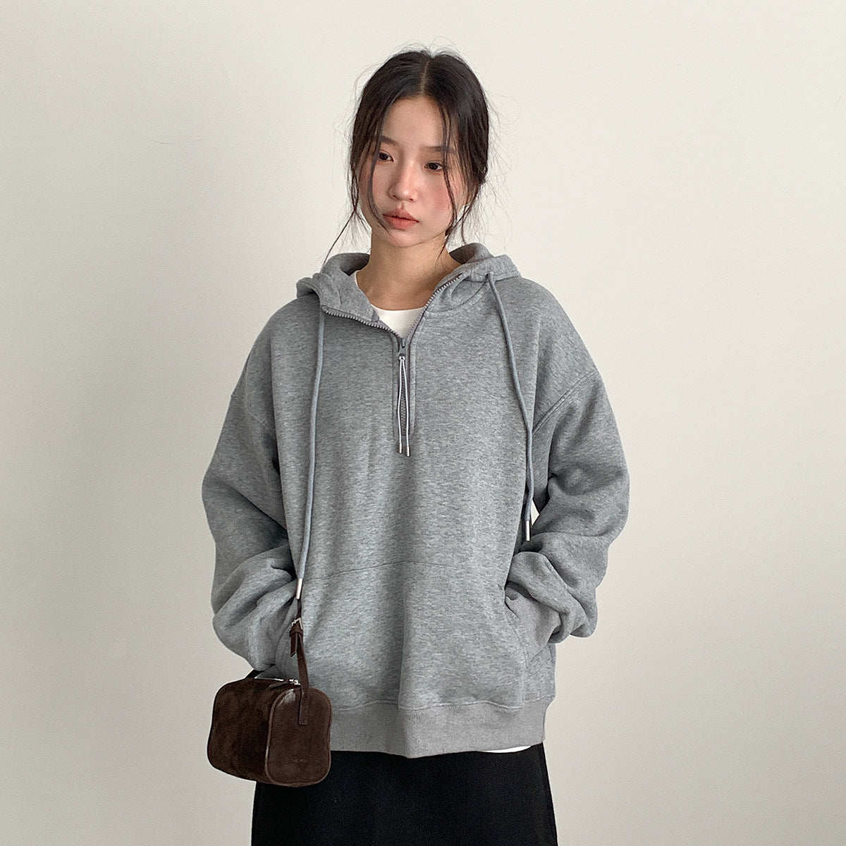 【LD11064】實拍慵懶灰色加絨加厚連帽寬鬆衞衣251209