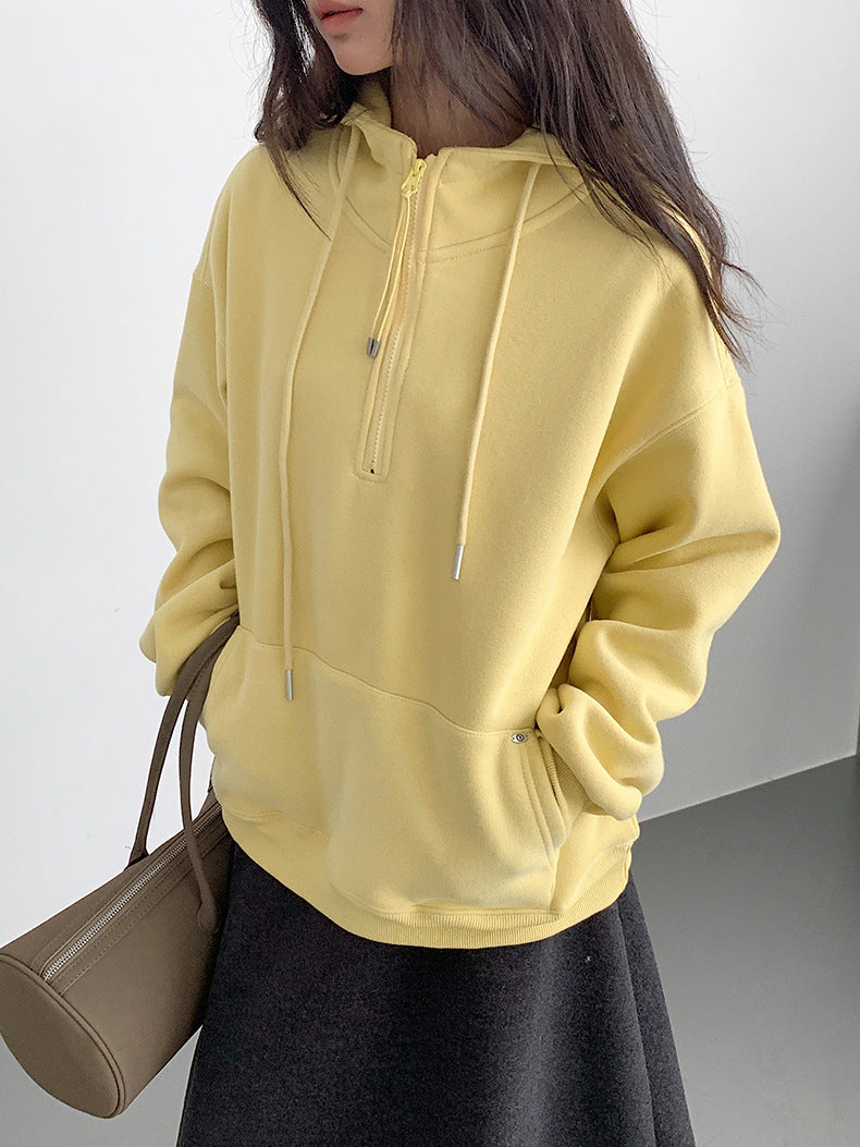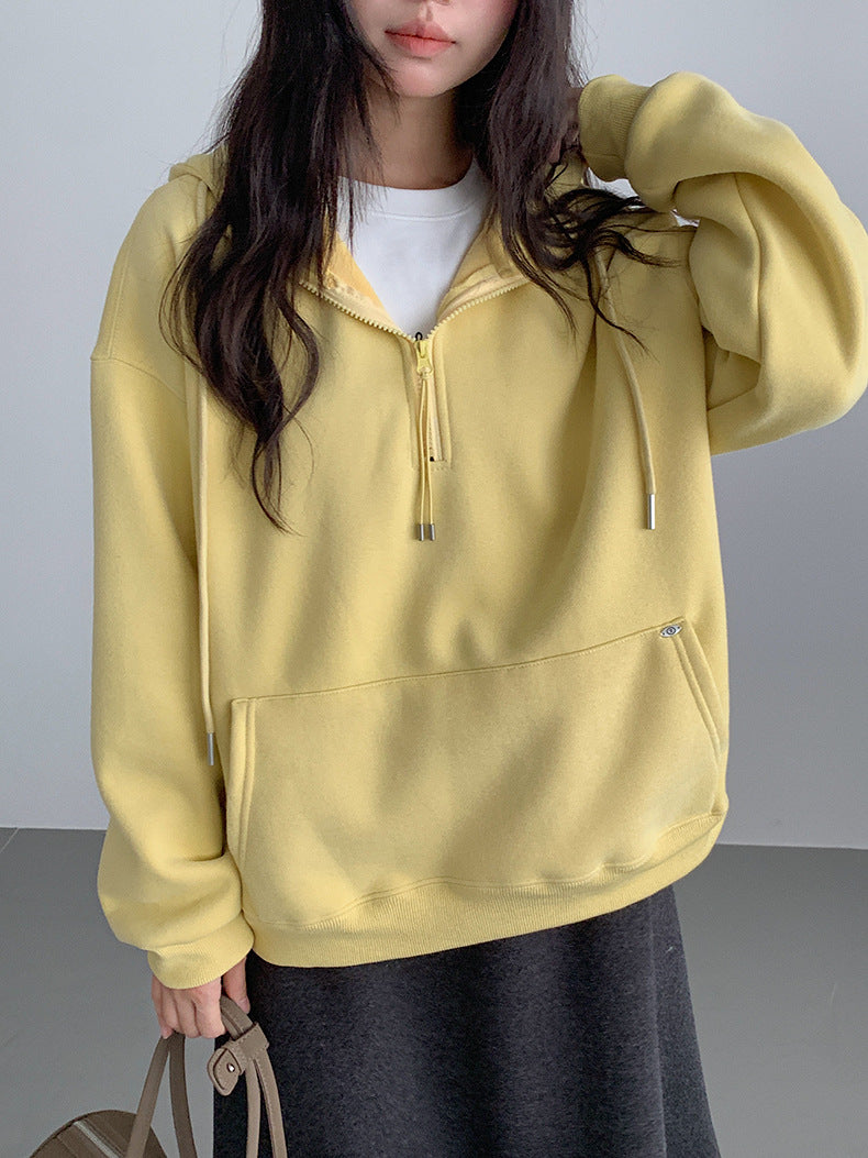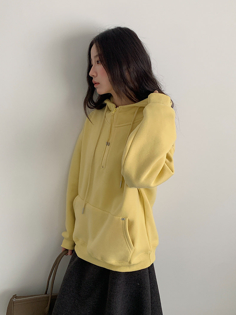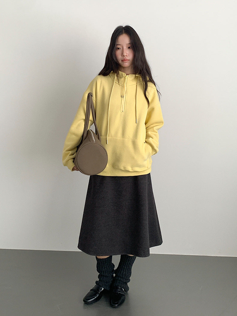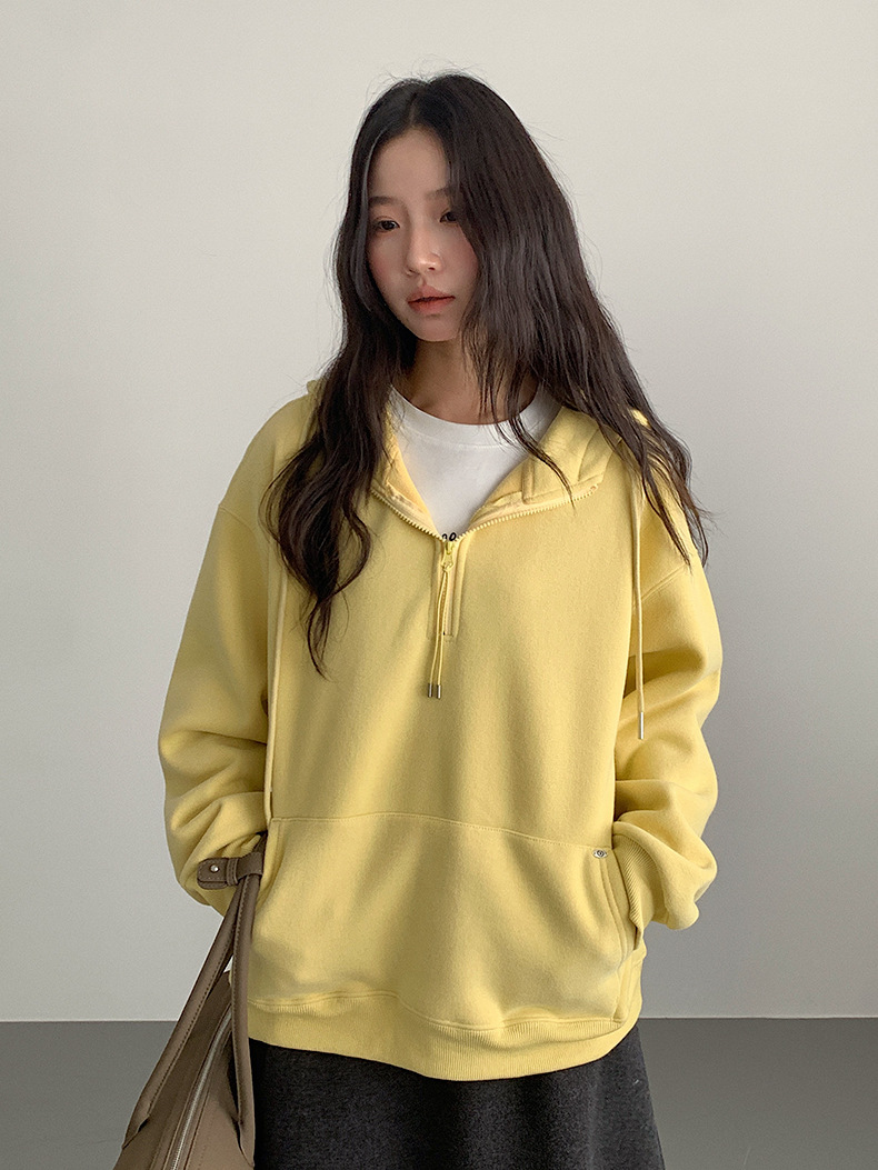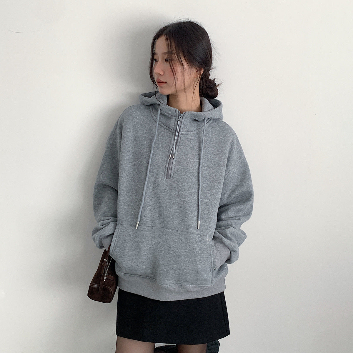 【LD11064】實拍慵懶灰色加絨加厚連帽寬鬆衞衣251209