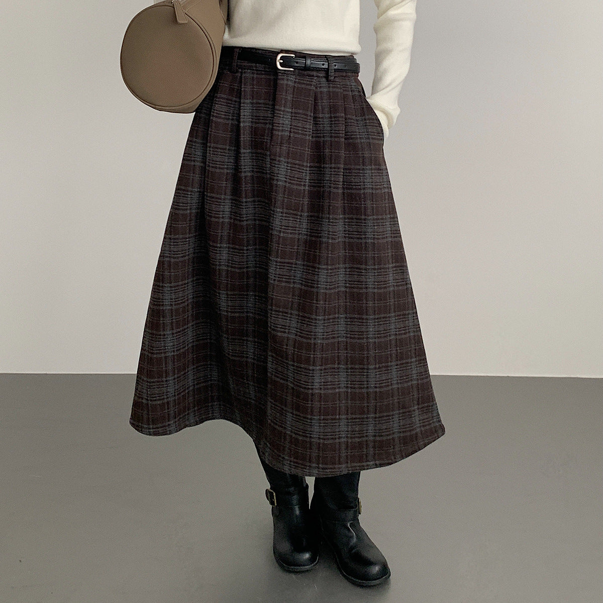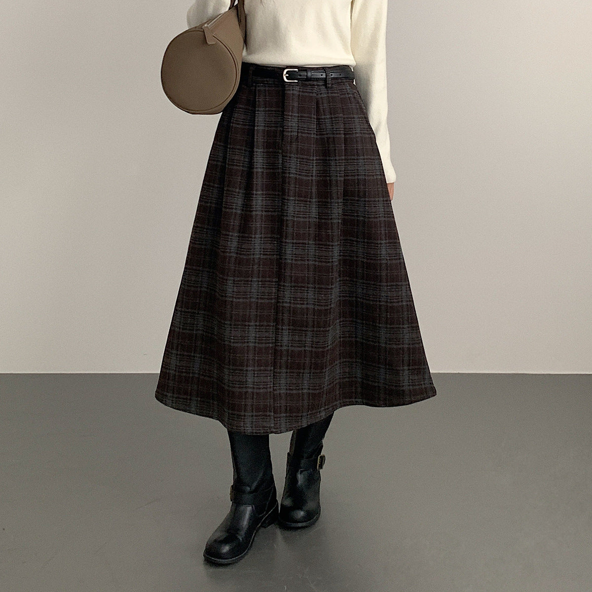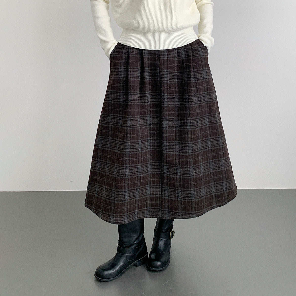 【LD11071】實拍氣質復古格紋毛呢a字裙251209