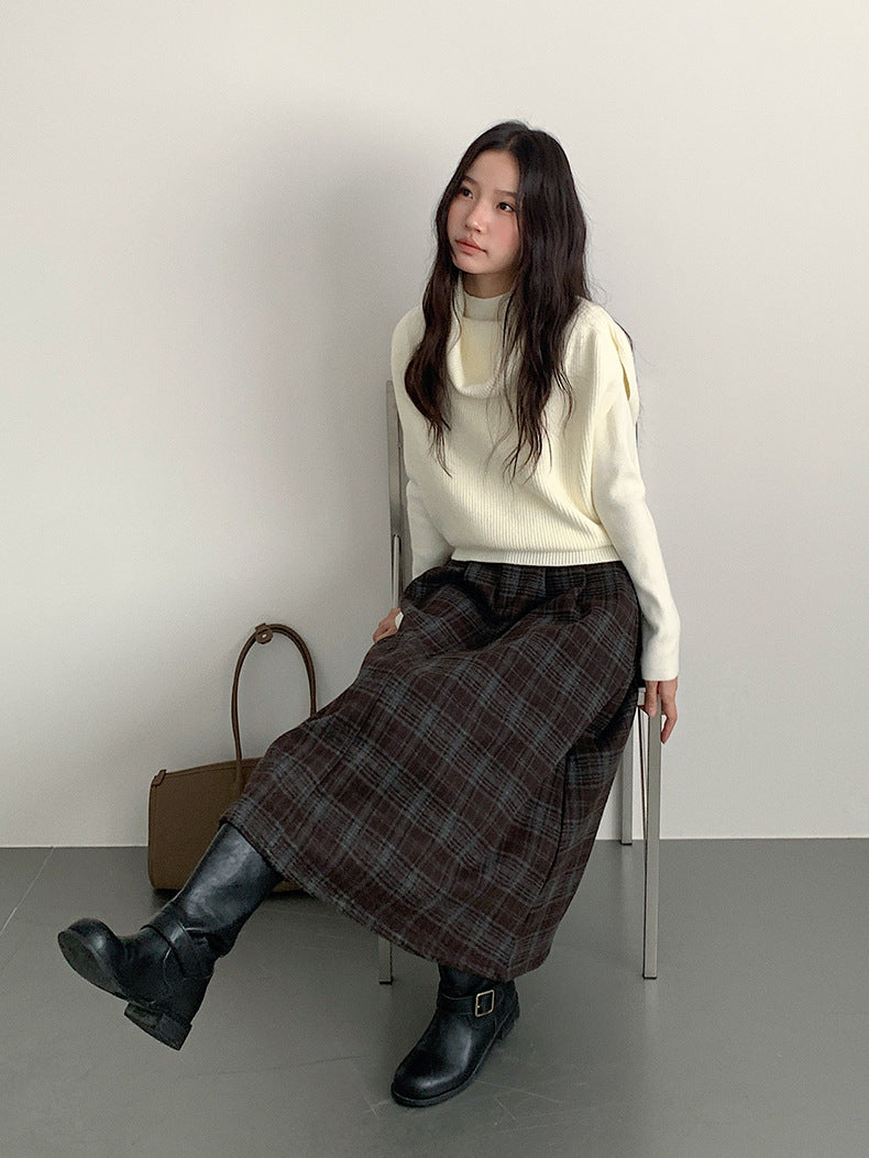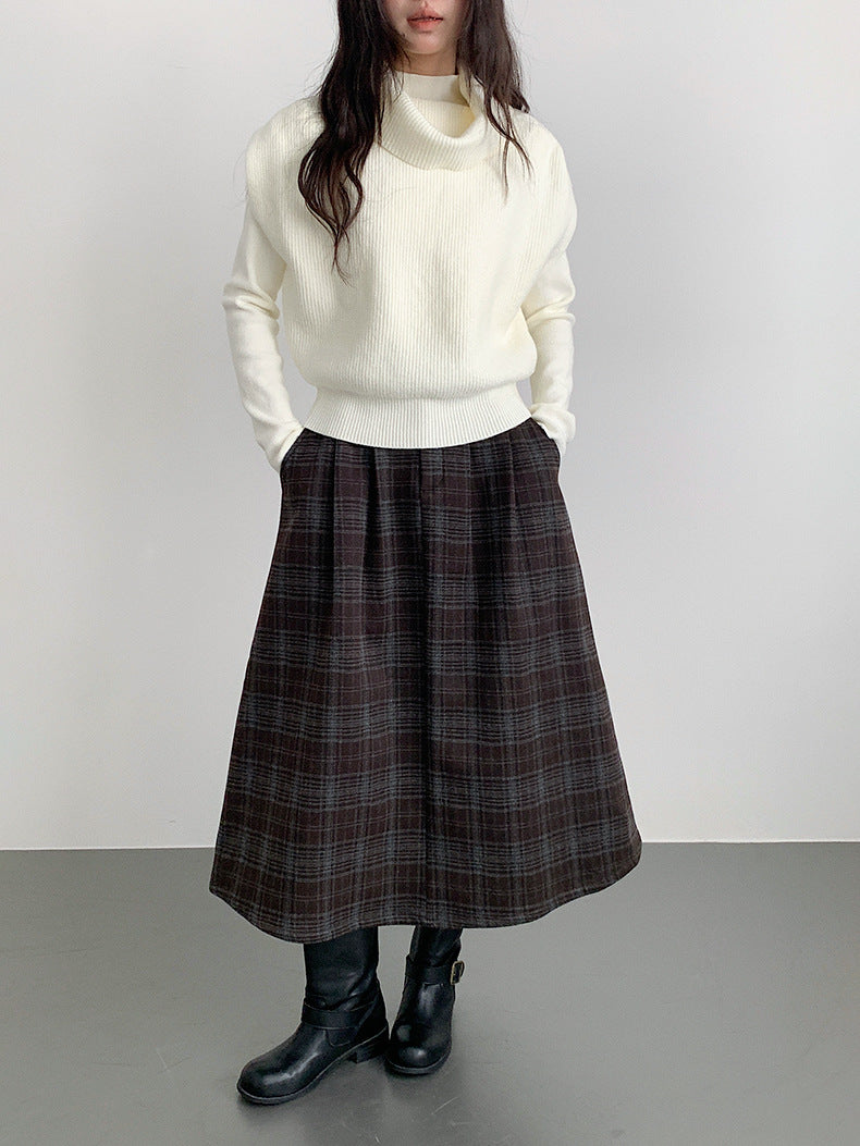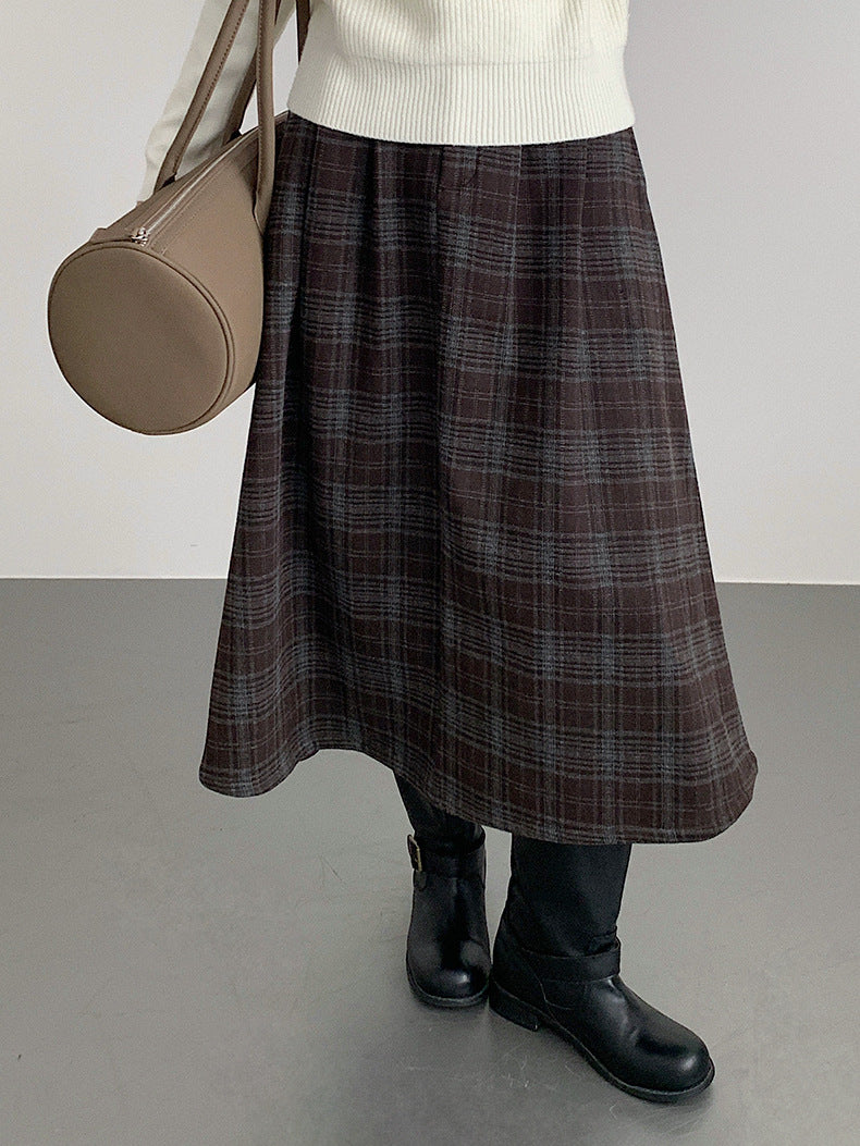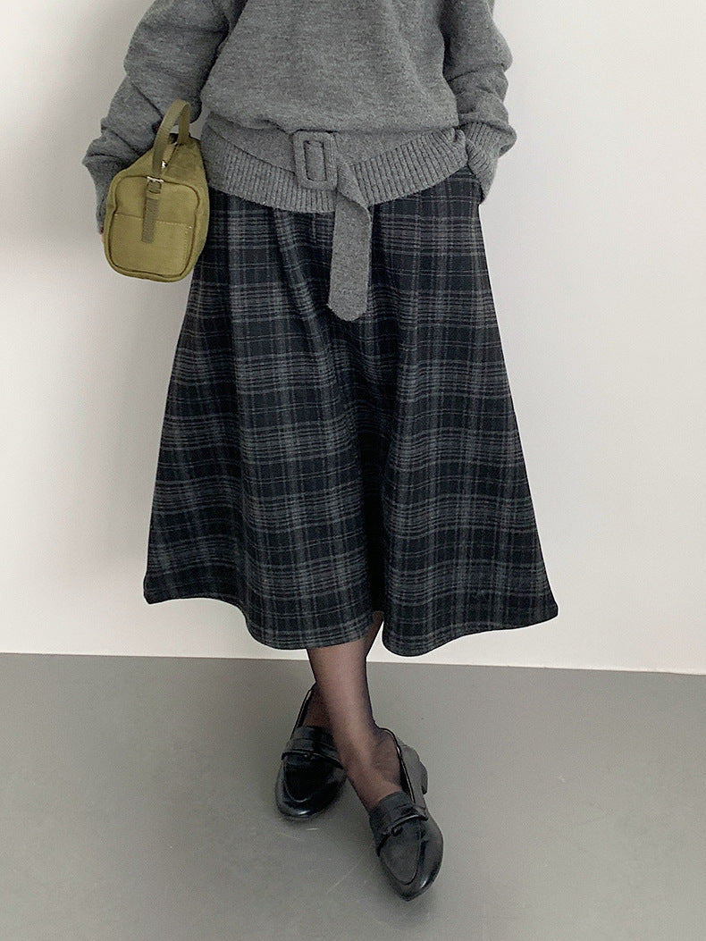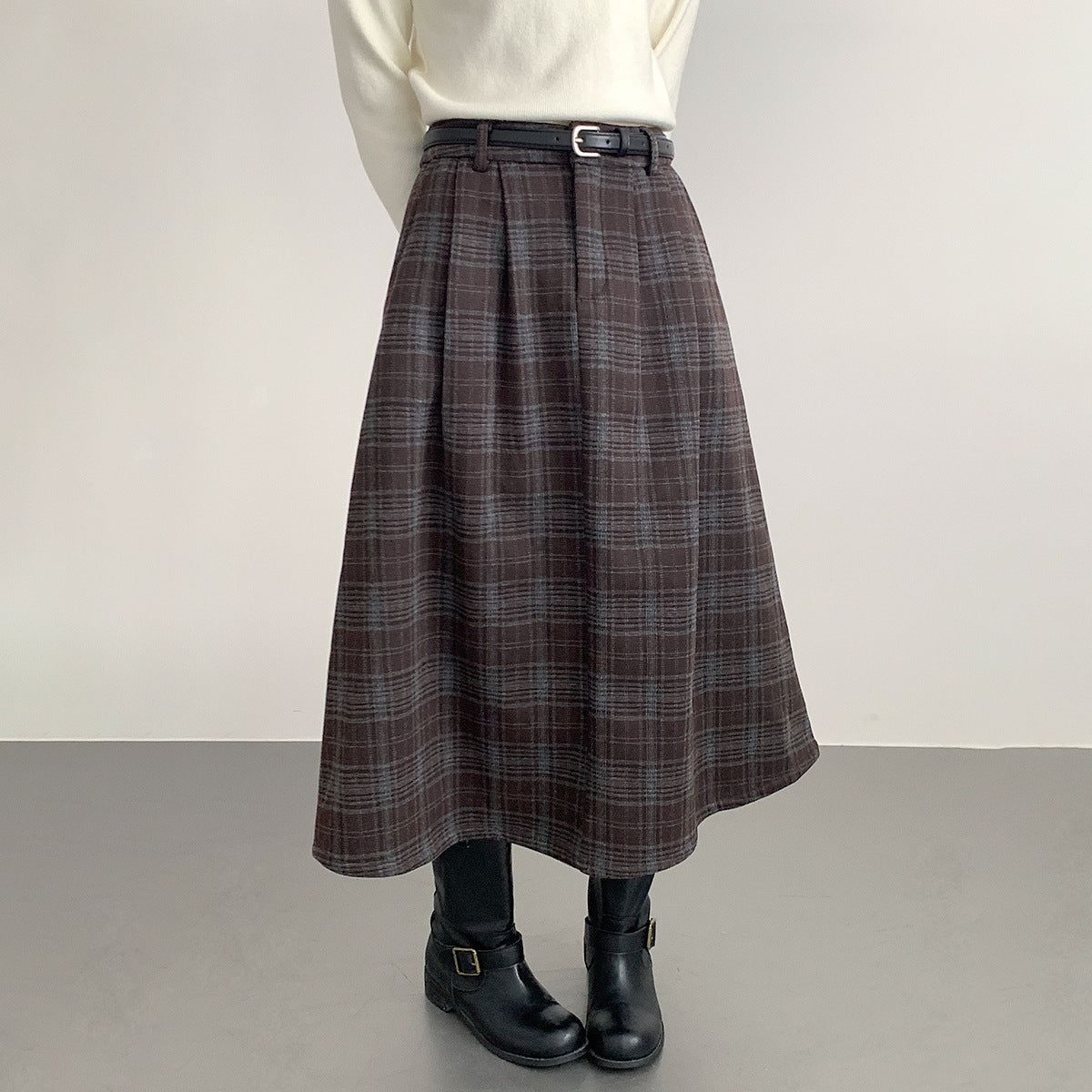 【LD11071】實拍氣質復古格紋毛呢a字裙251209