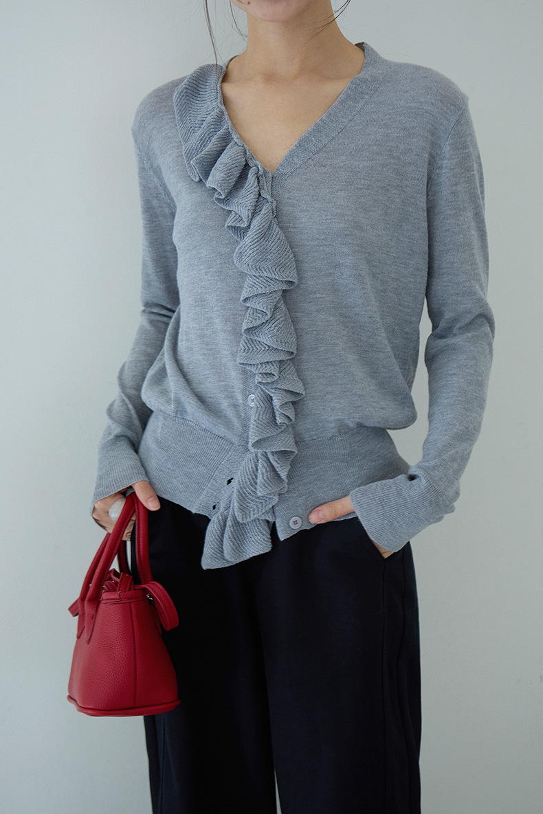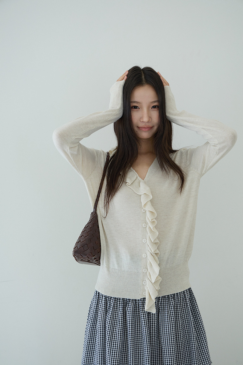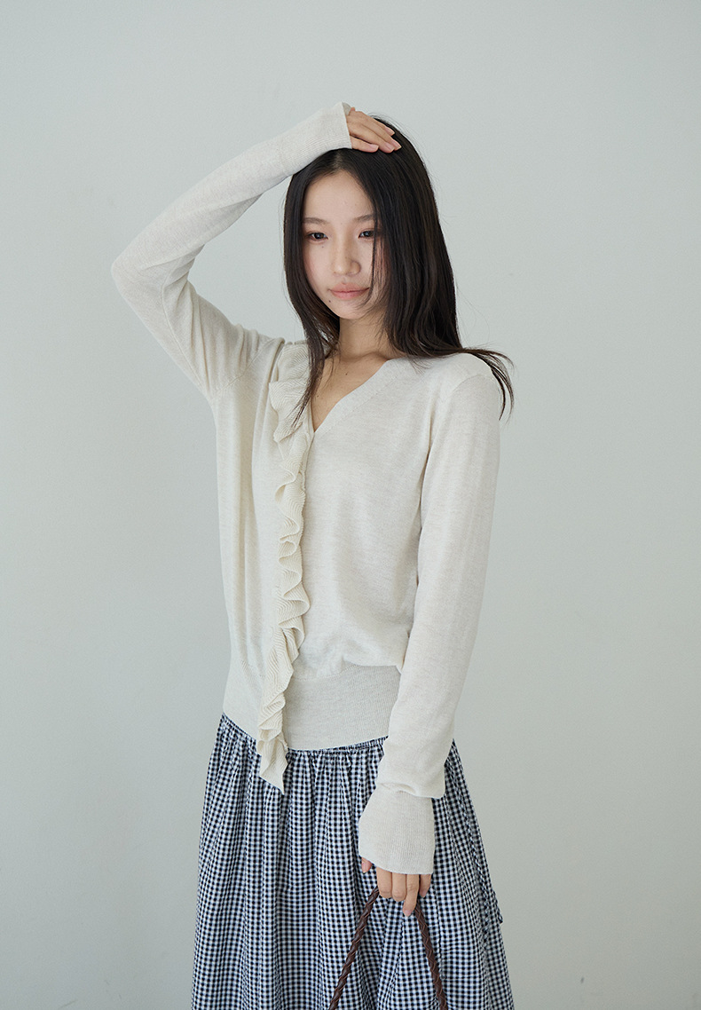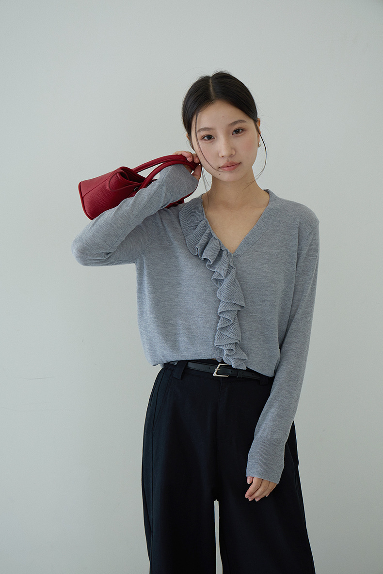 【LD11154】實拍韓系甜美減齡✨設計感荷葉薄款長袖針織衫260317