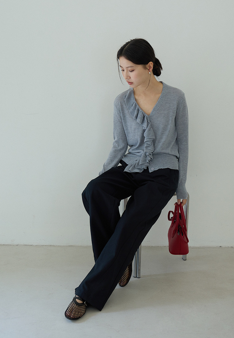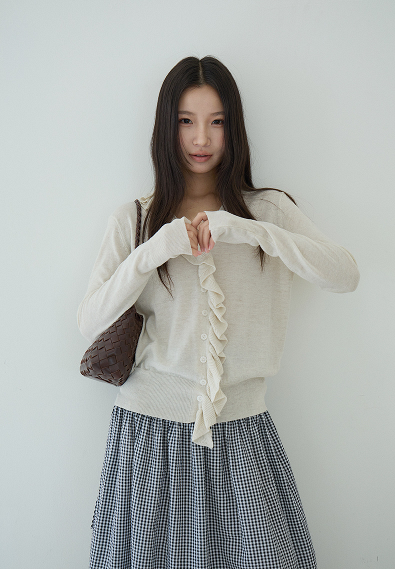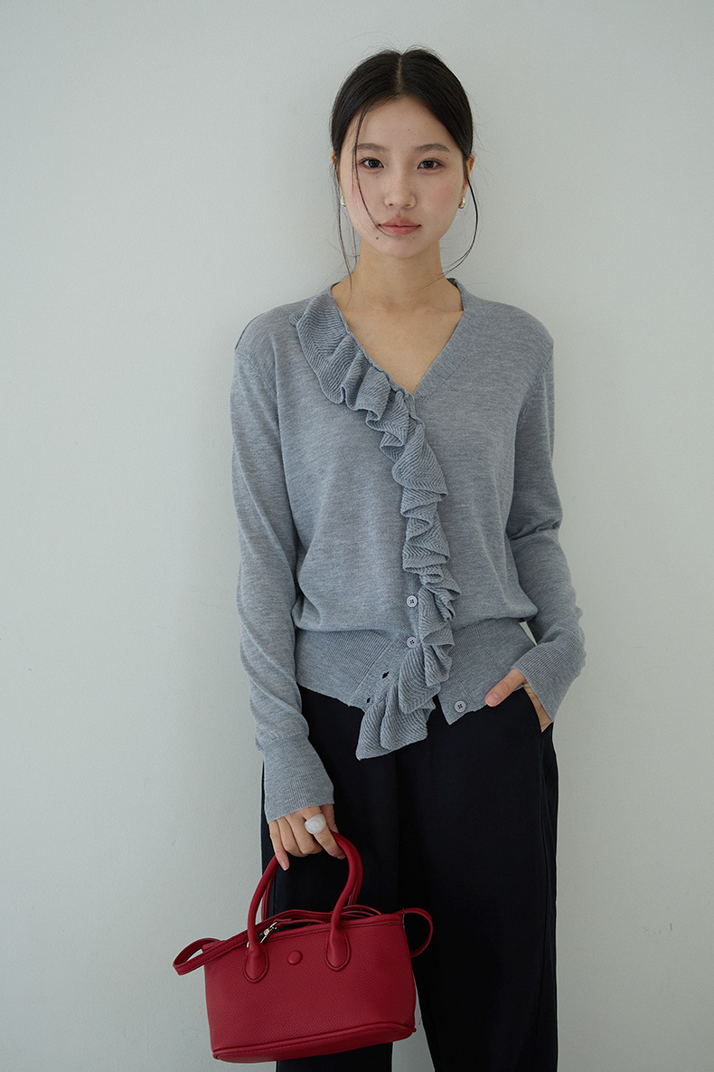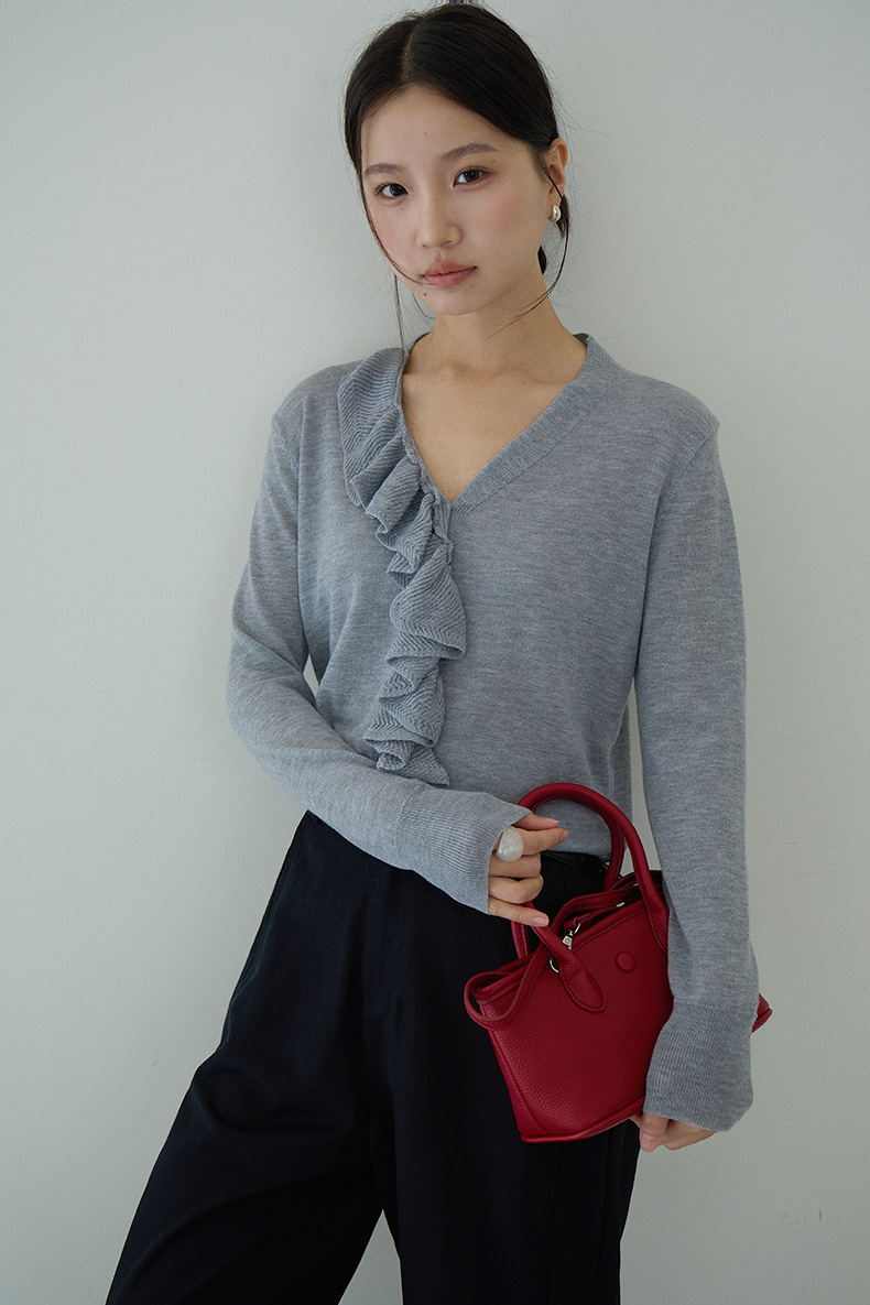【LD11154】實拍韓系甜美減齡✨設計感荷葉薄款長袖針織衫260317