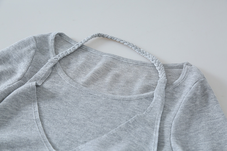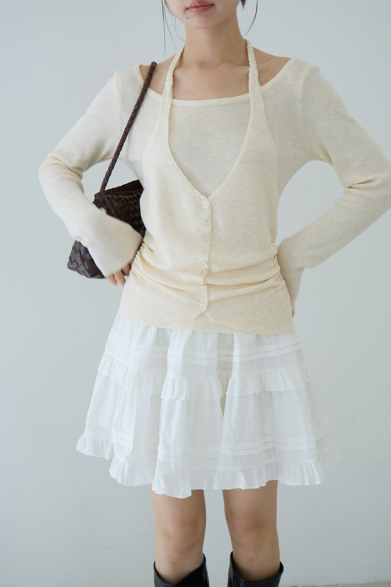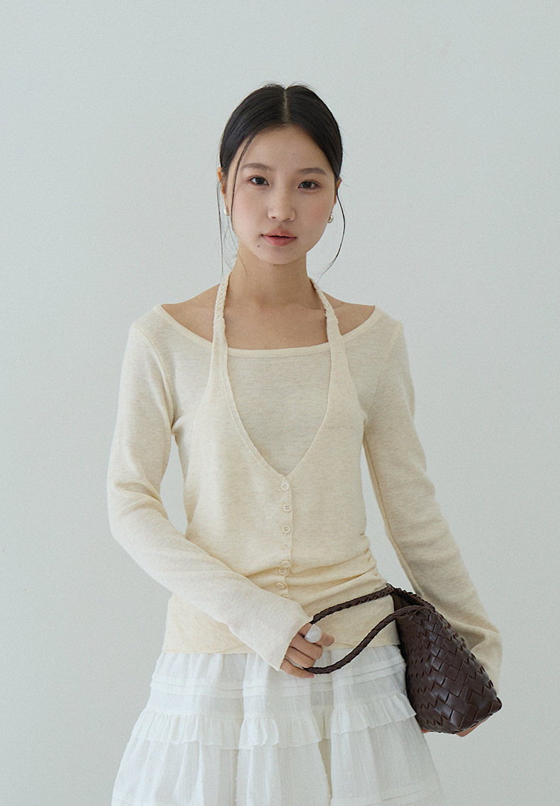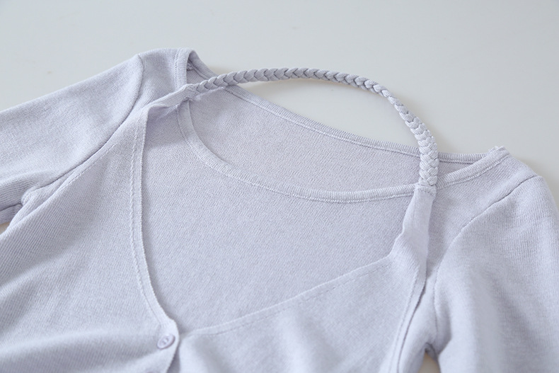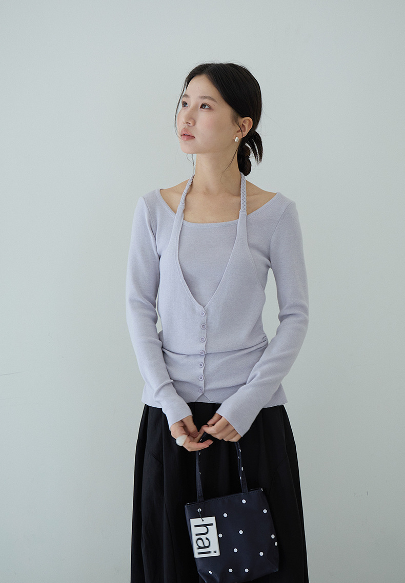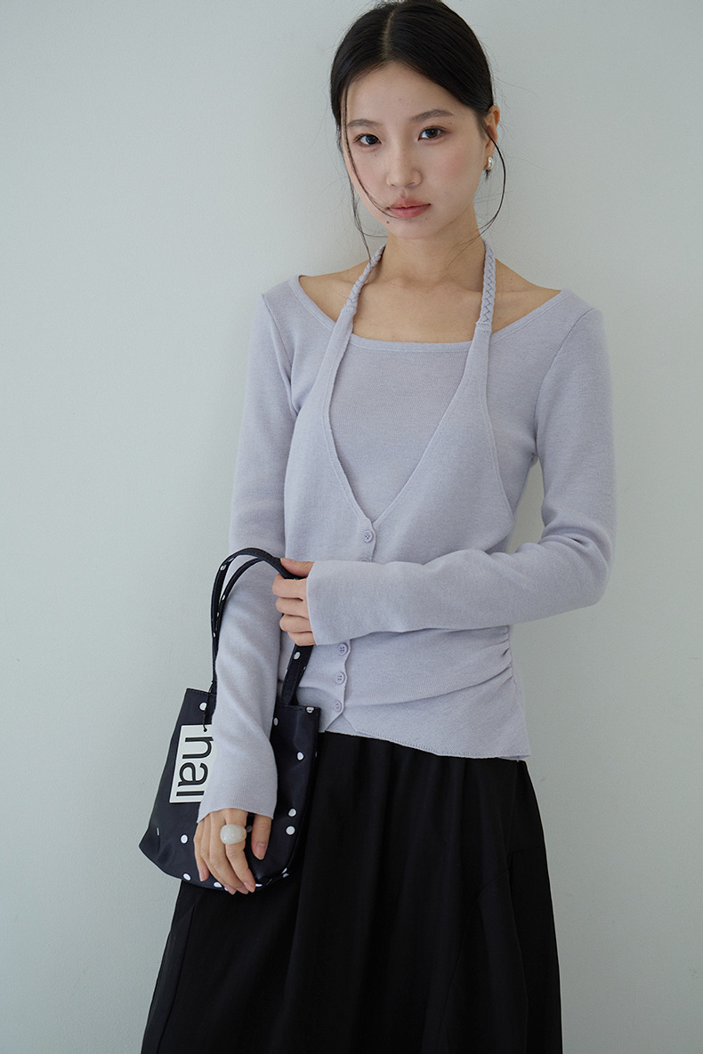 【LD11170】實拍韓系純慾微性感✨淡紫掛脖假兩件收腰顯瘦長袖針織衫260317